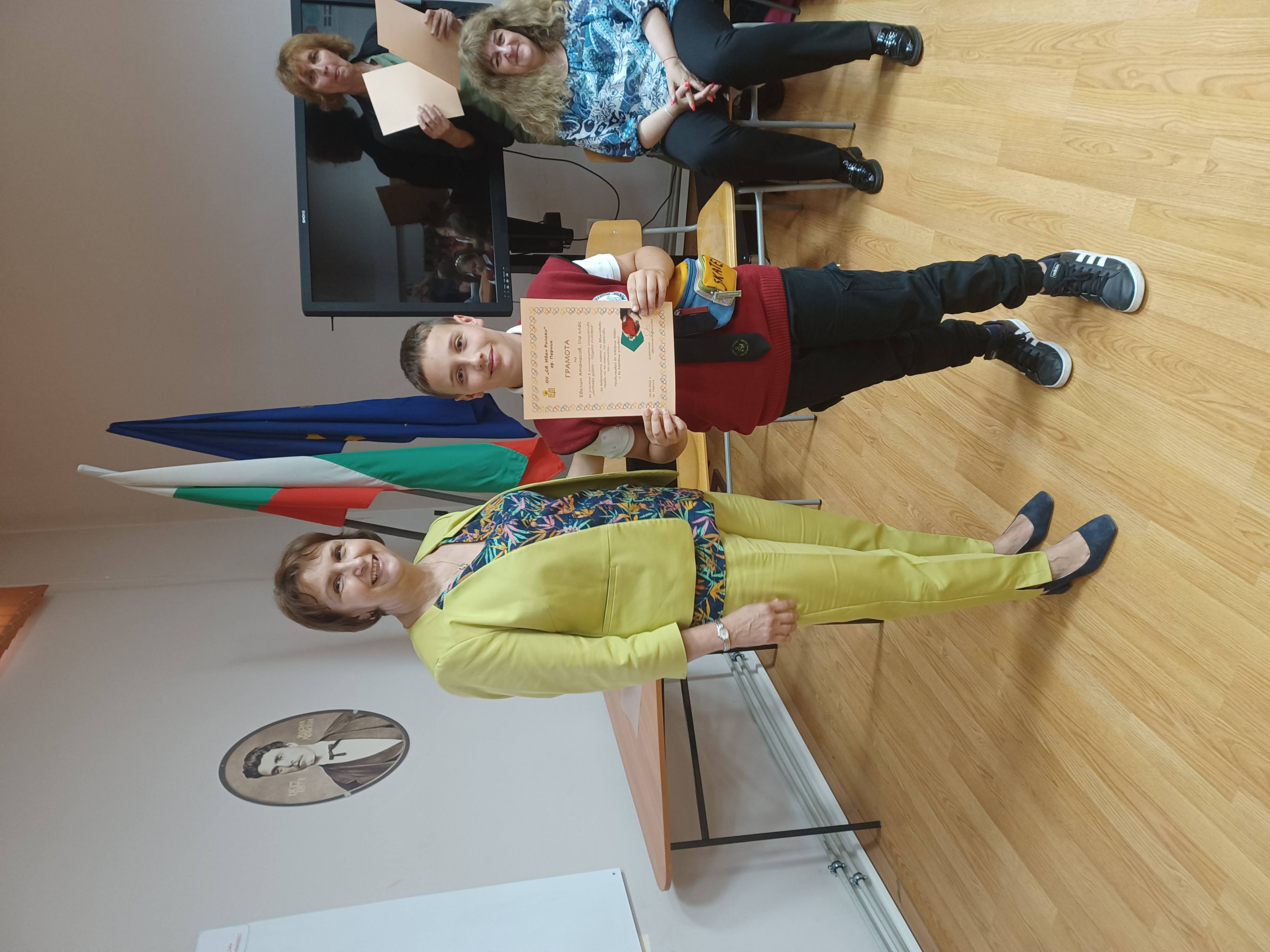 Директорът на училището – г-жа Цветана Пиралкова връчи грамоти на всички участници и обяви наградата за всички тях – еднодневна екскурзия с посещение на зоокът „Алис“-с. Лесковец.