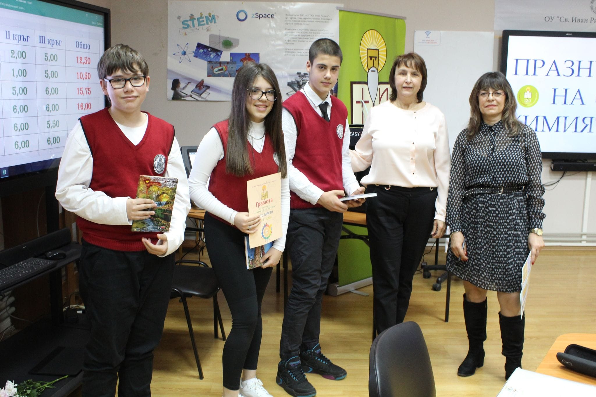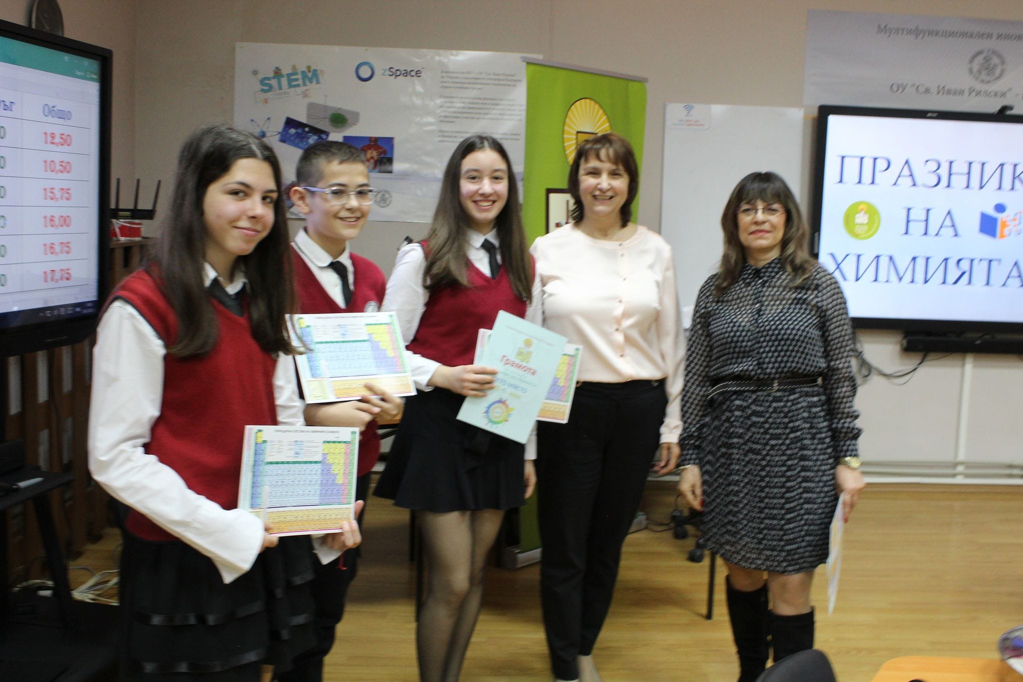 Благодарим ви, прекрасни млади химици, за показаните знания и умения, за приятните емоции, с които ни заредихте! Продължавайте все така да бъдете гордост за вашите родители и учители! Попивайте знания и покорявайте върхове!