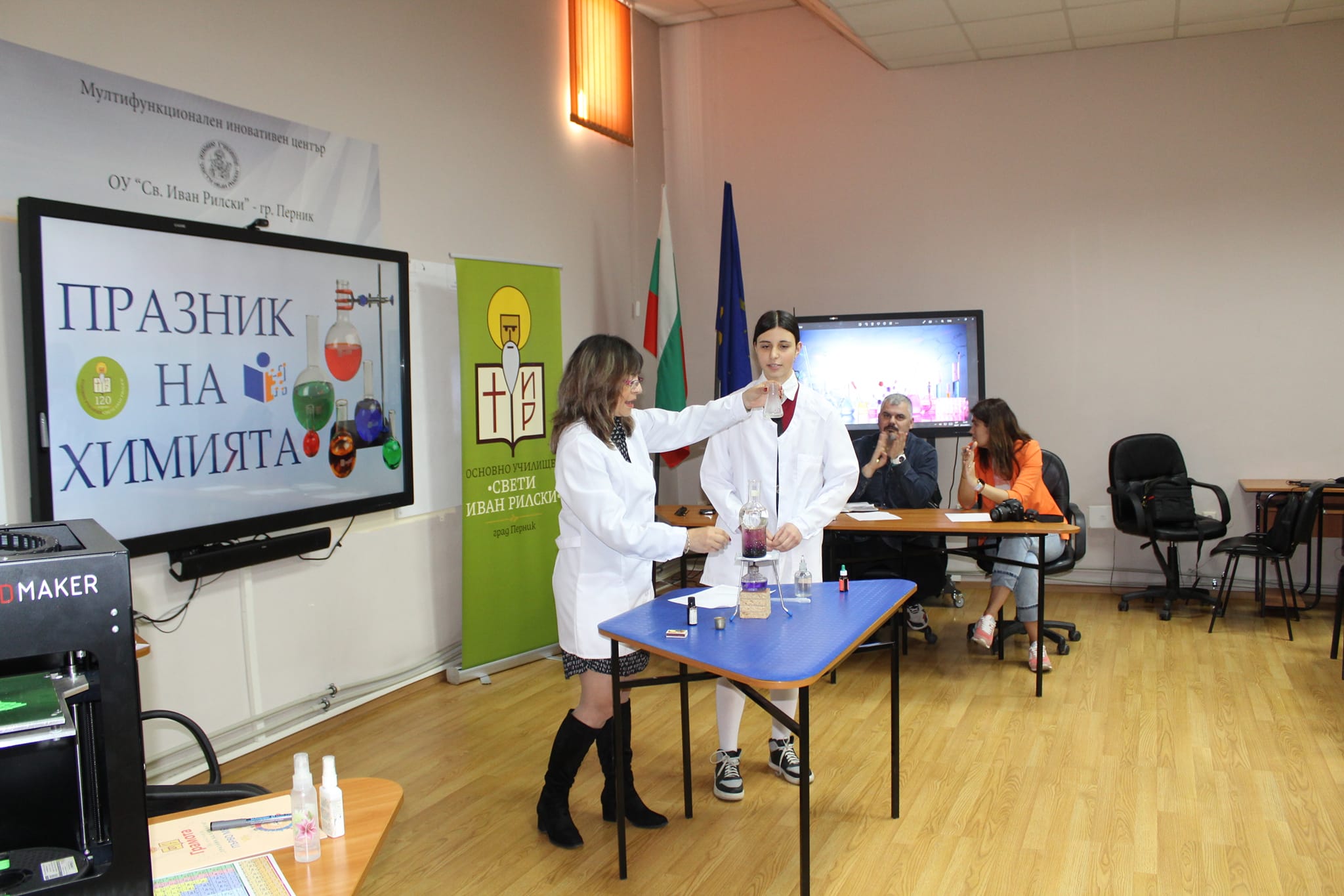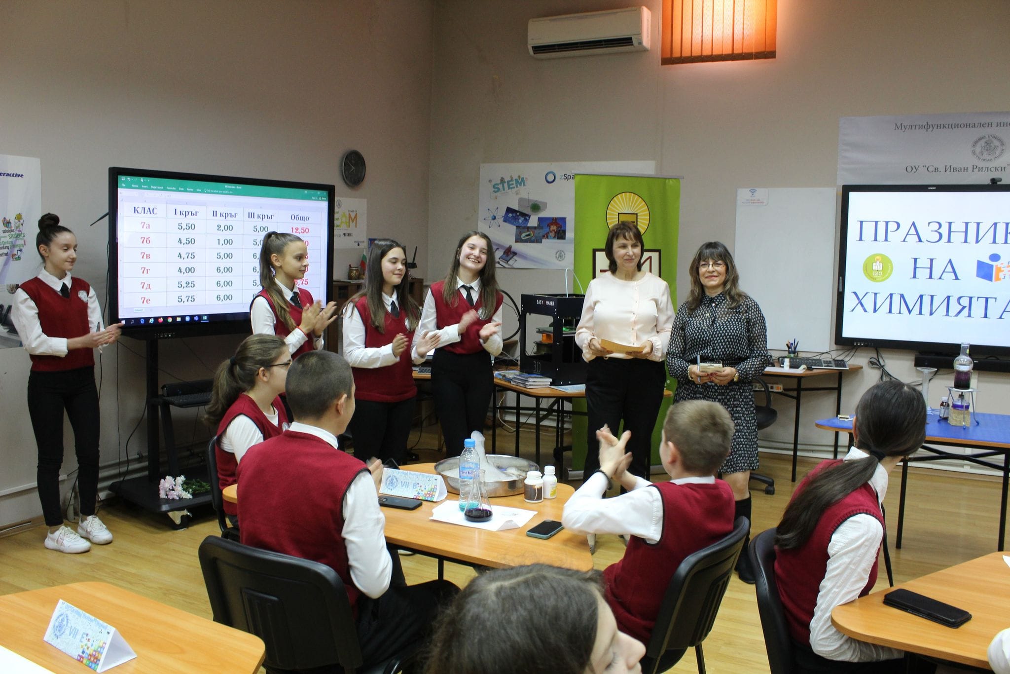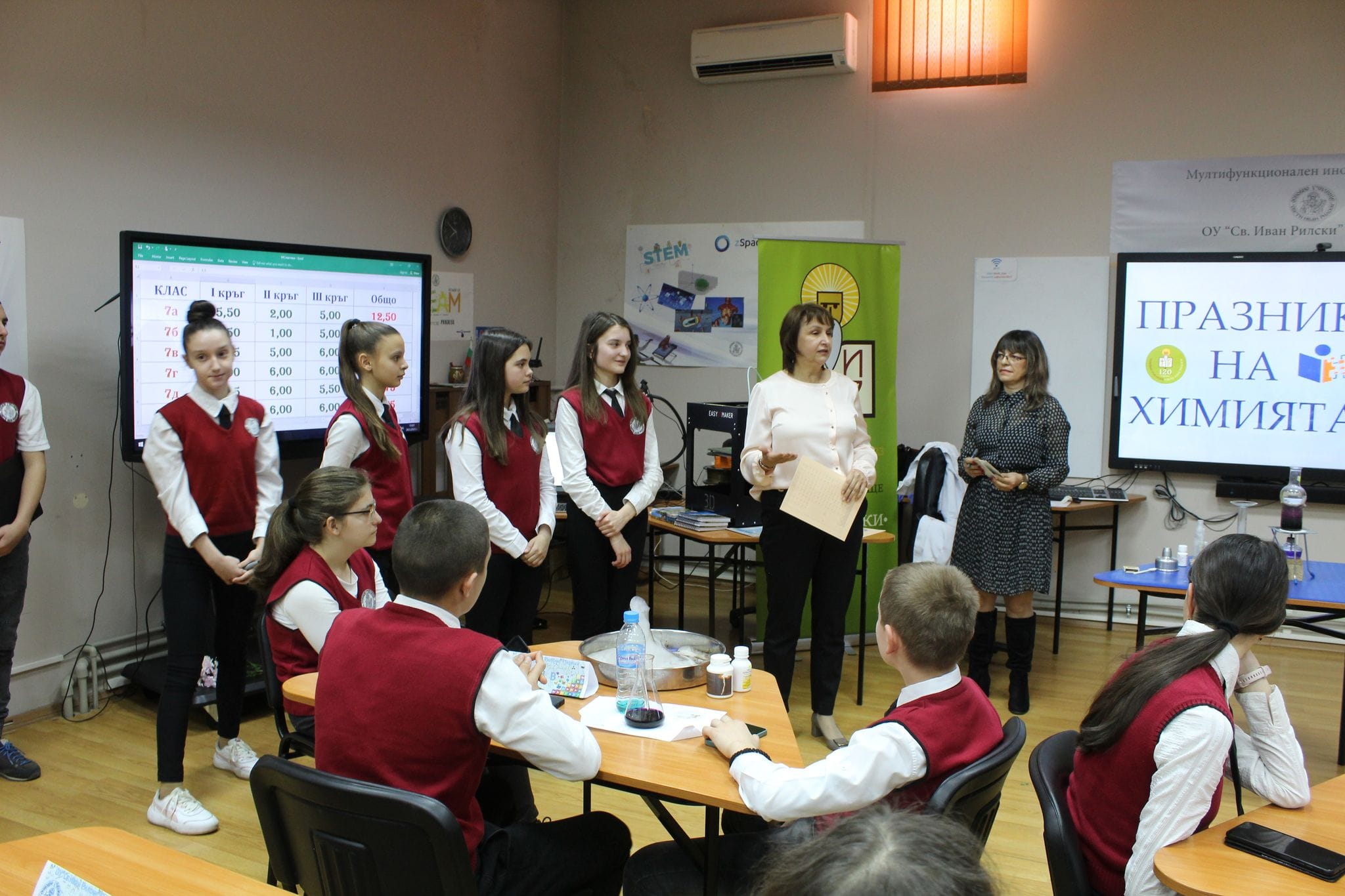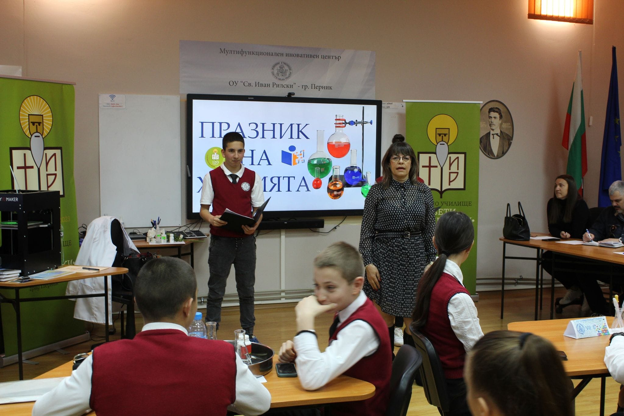 На 24.03.2023 г. за пореден път денят в ОУ „Св. Иван Рилски“ започна тържествено с отбелязване на „Празник на Химията“. Инициативата е част от многото минали и предстоящи тържества по повод 120-годишнината на училището ни.