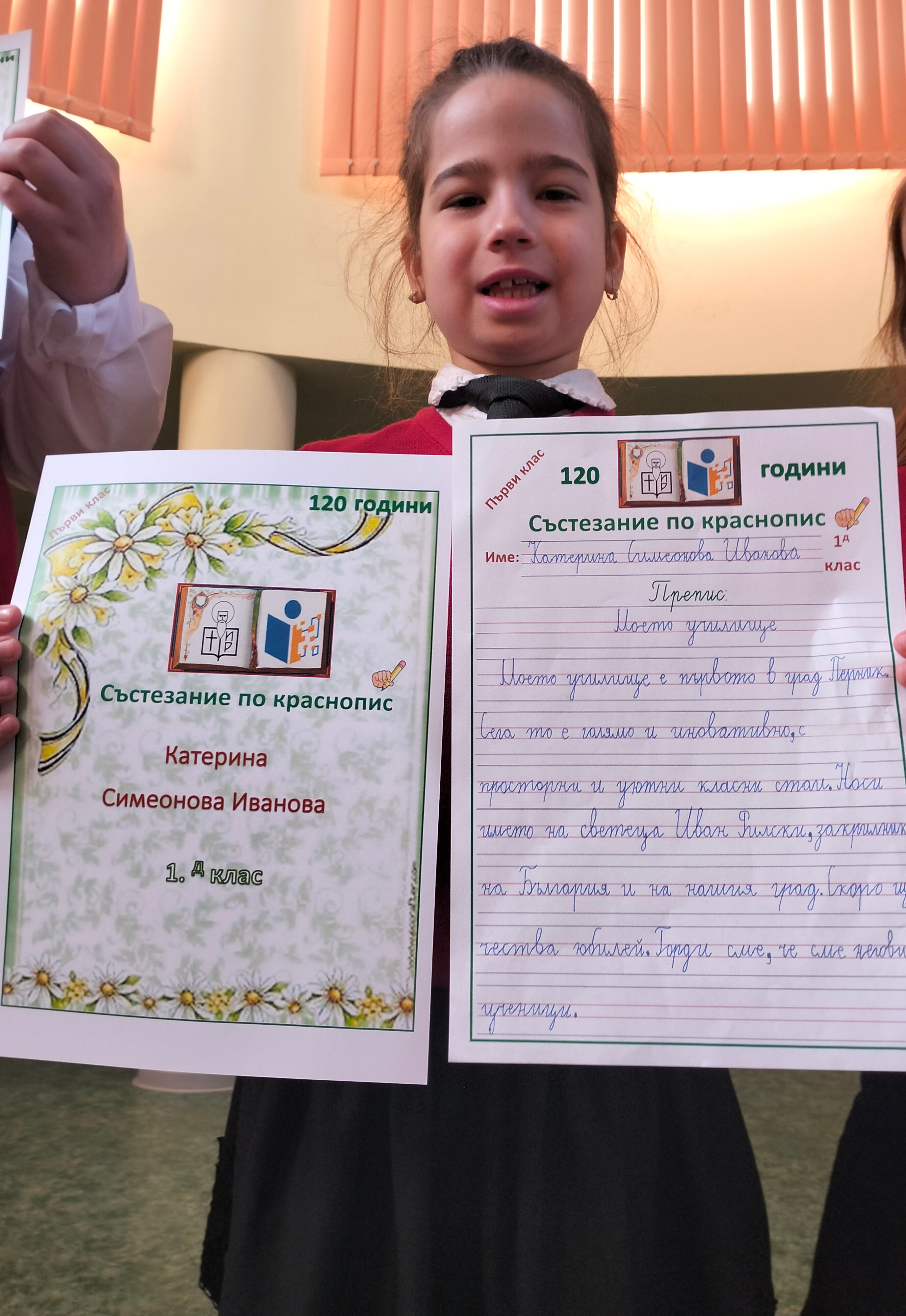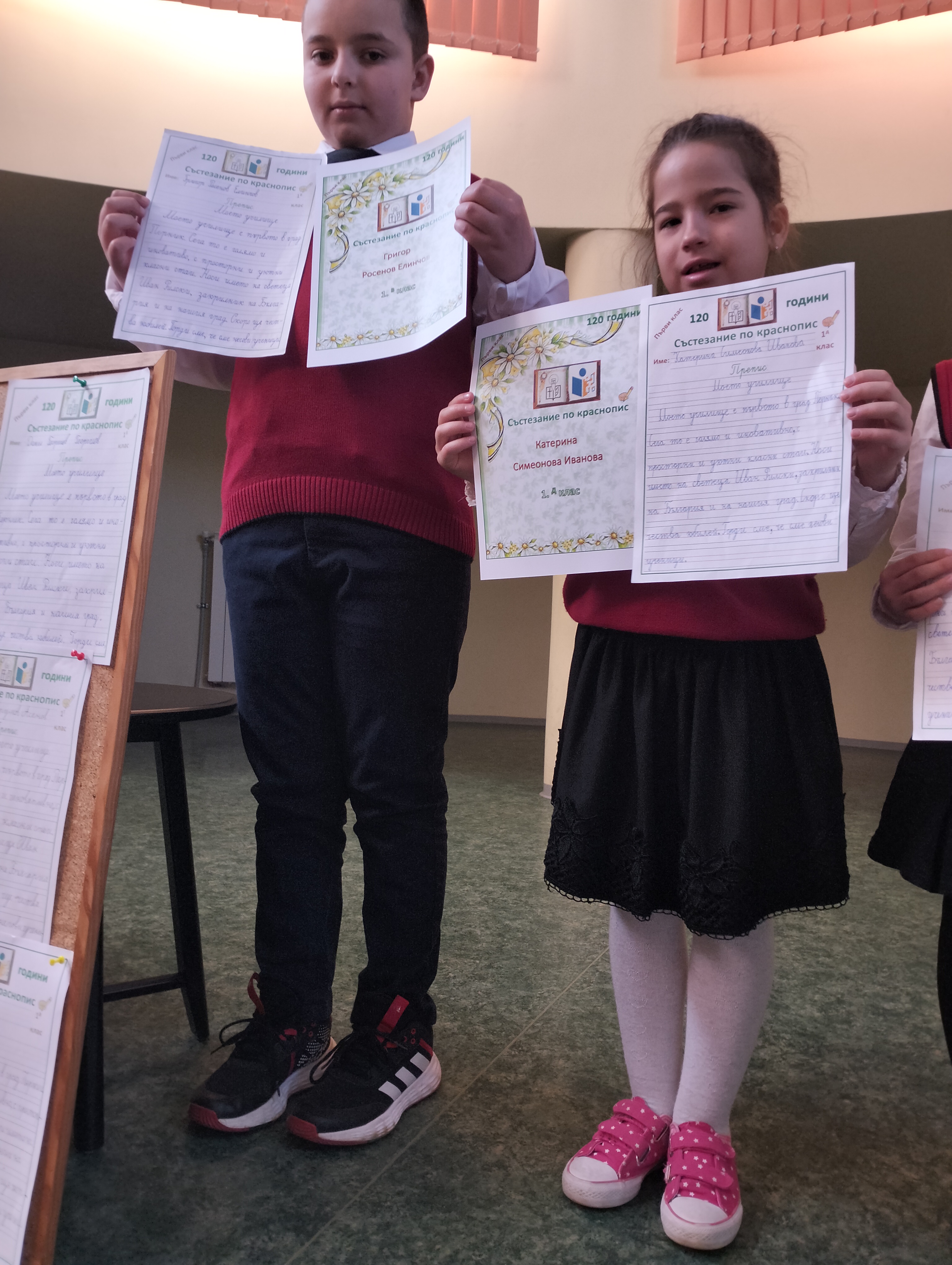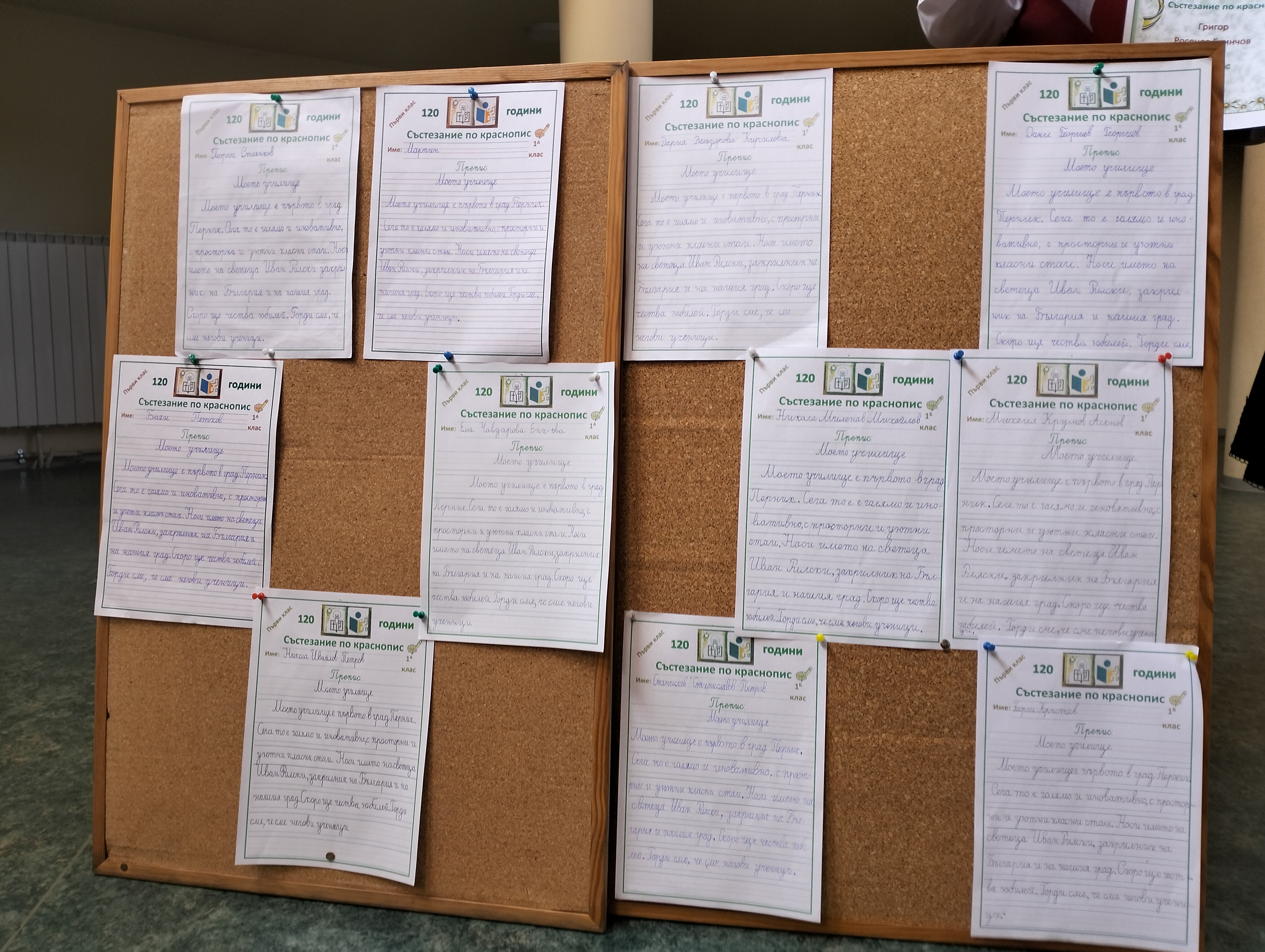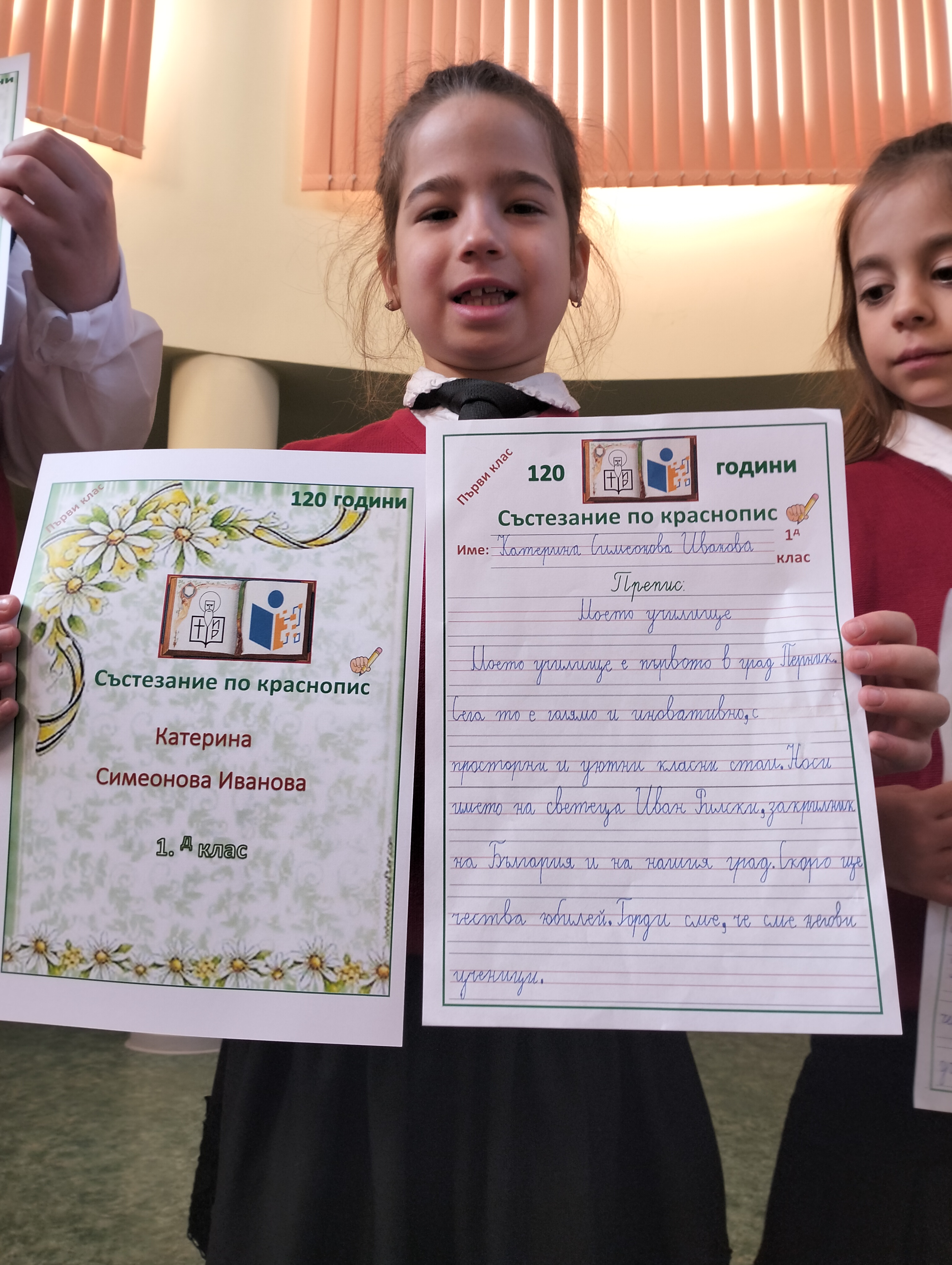 В чест на 120 - годишнината на училището първокласниците се състезаваха в красиво писане. Всички работеха с ентусиазъм.