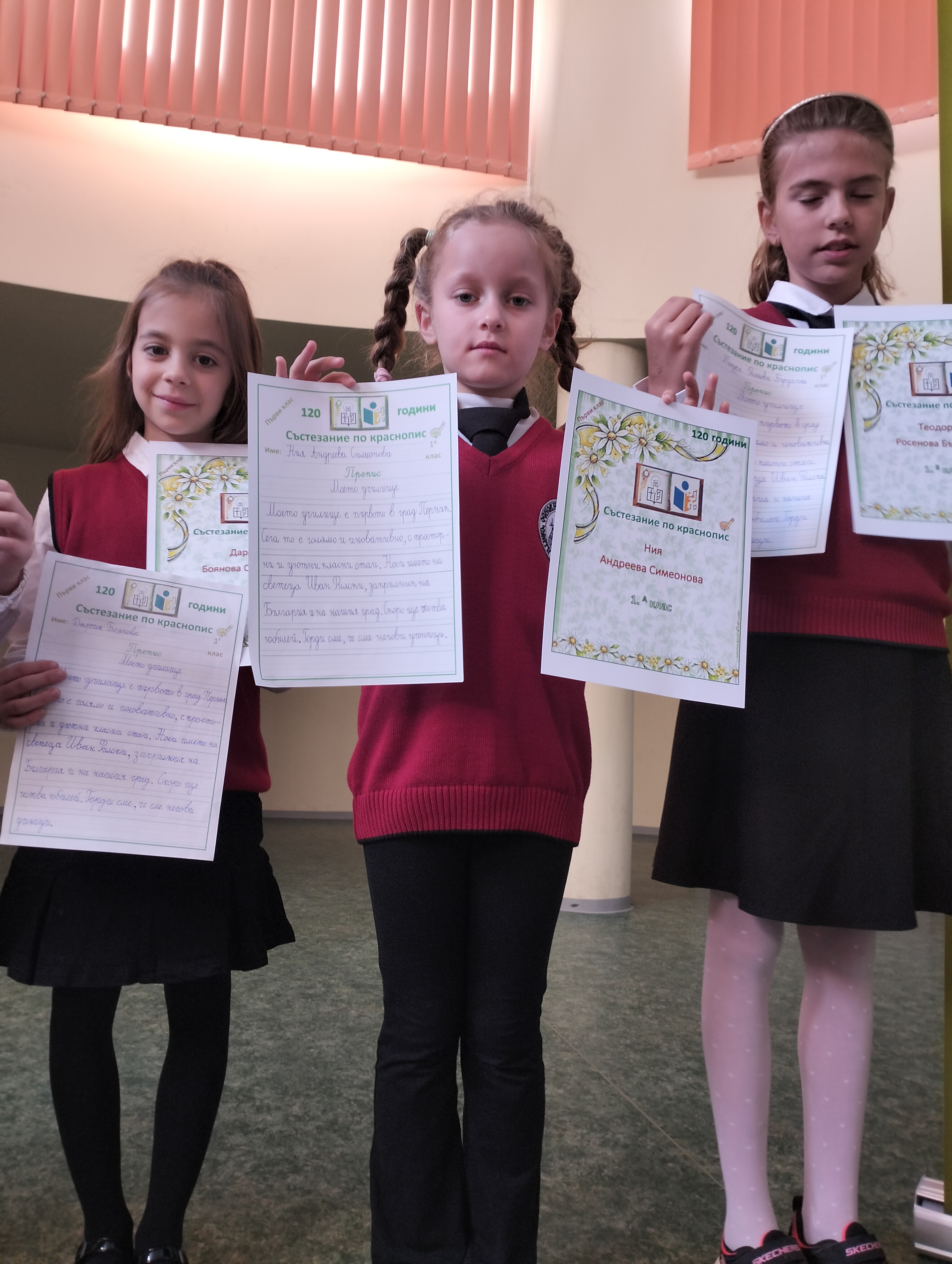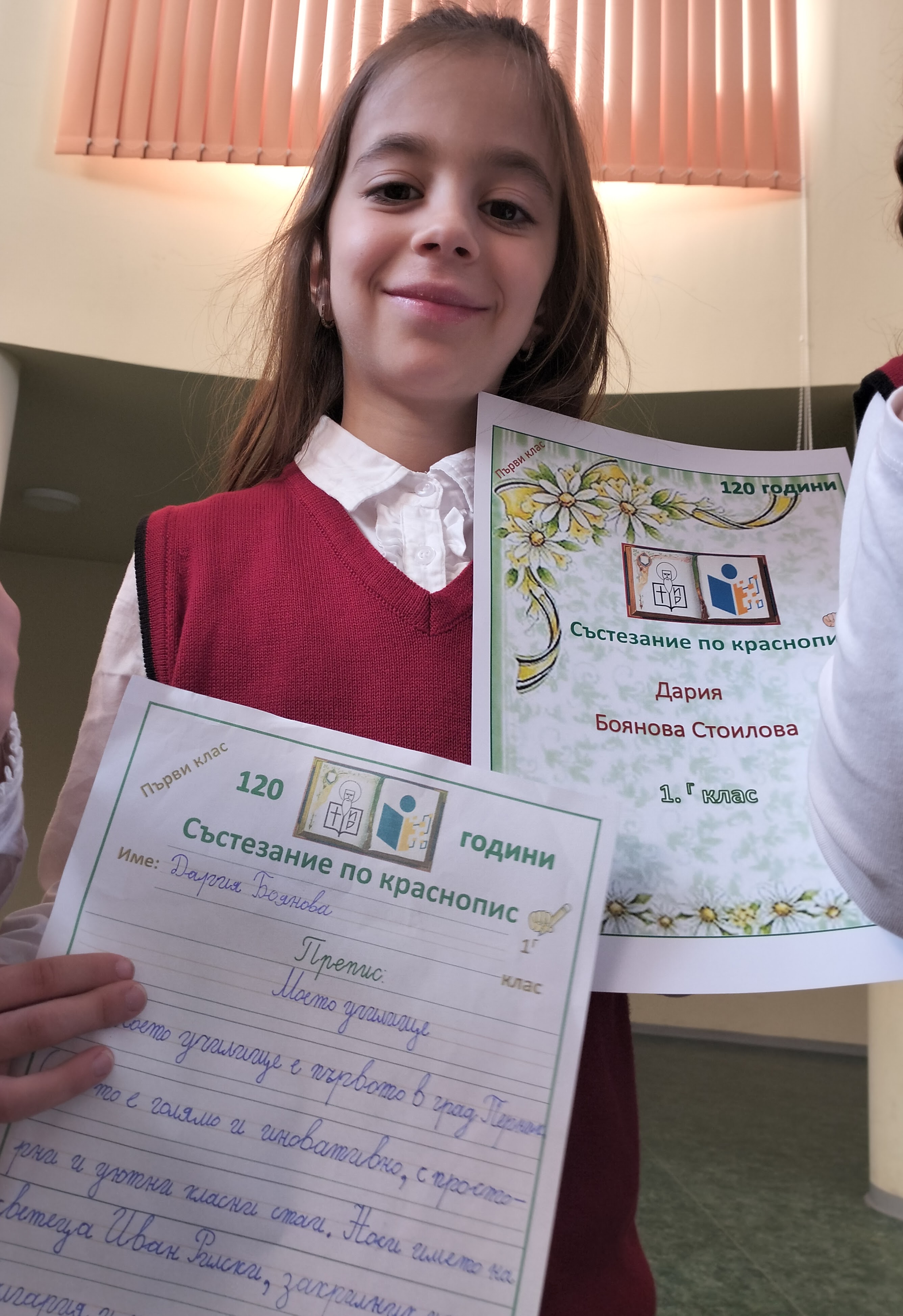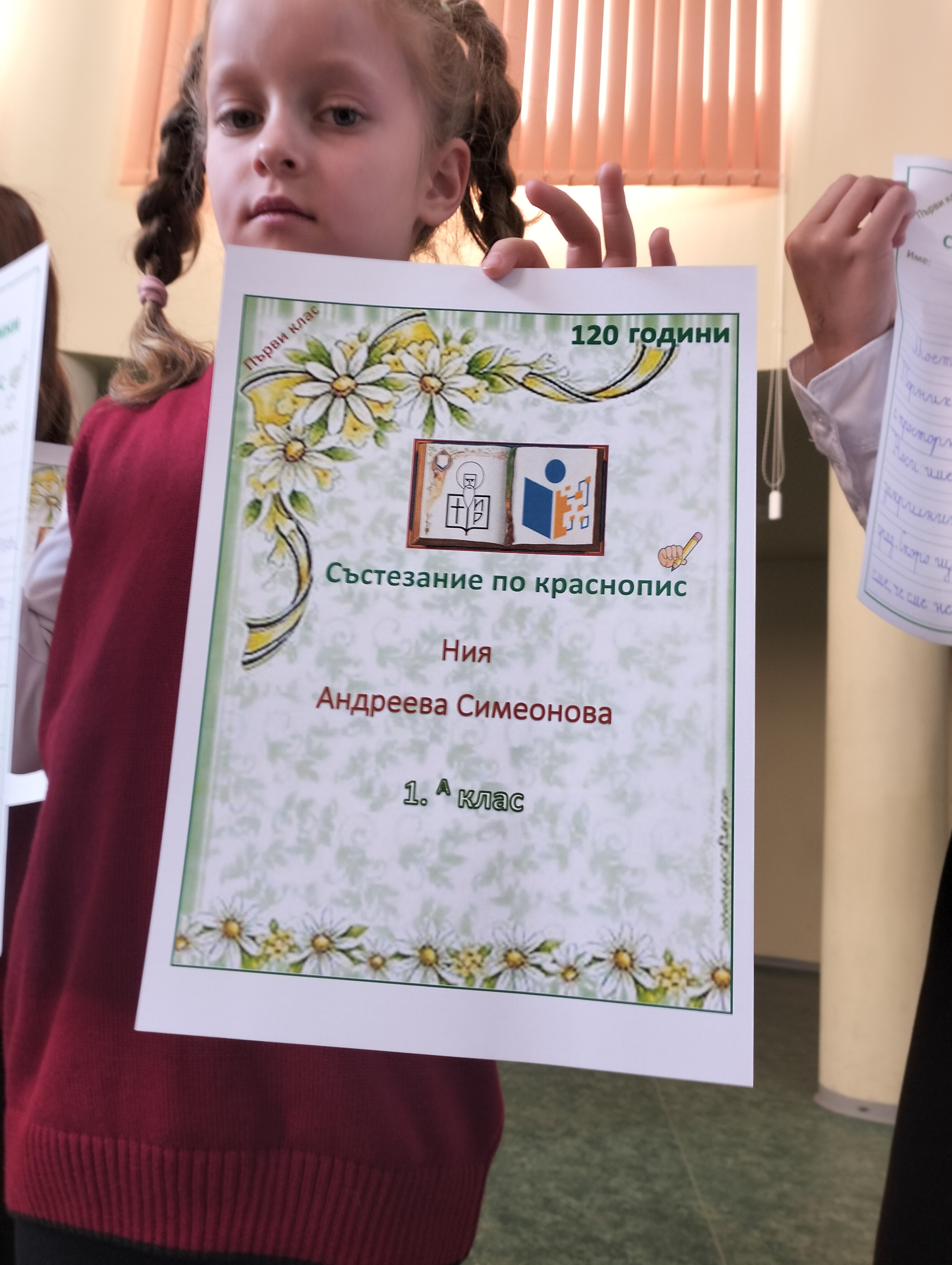 В чест на 120 - годишнината на училището първокласниците се състезаваха в красиво писане. Всички работеха с ентусиазъм.