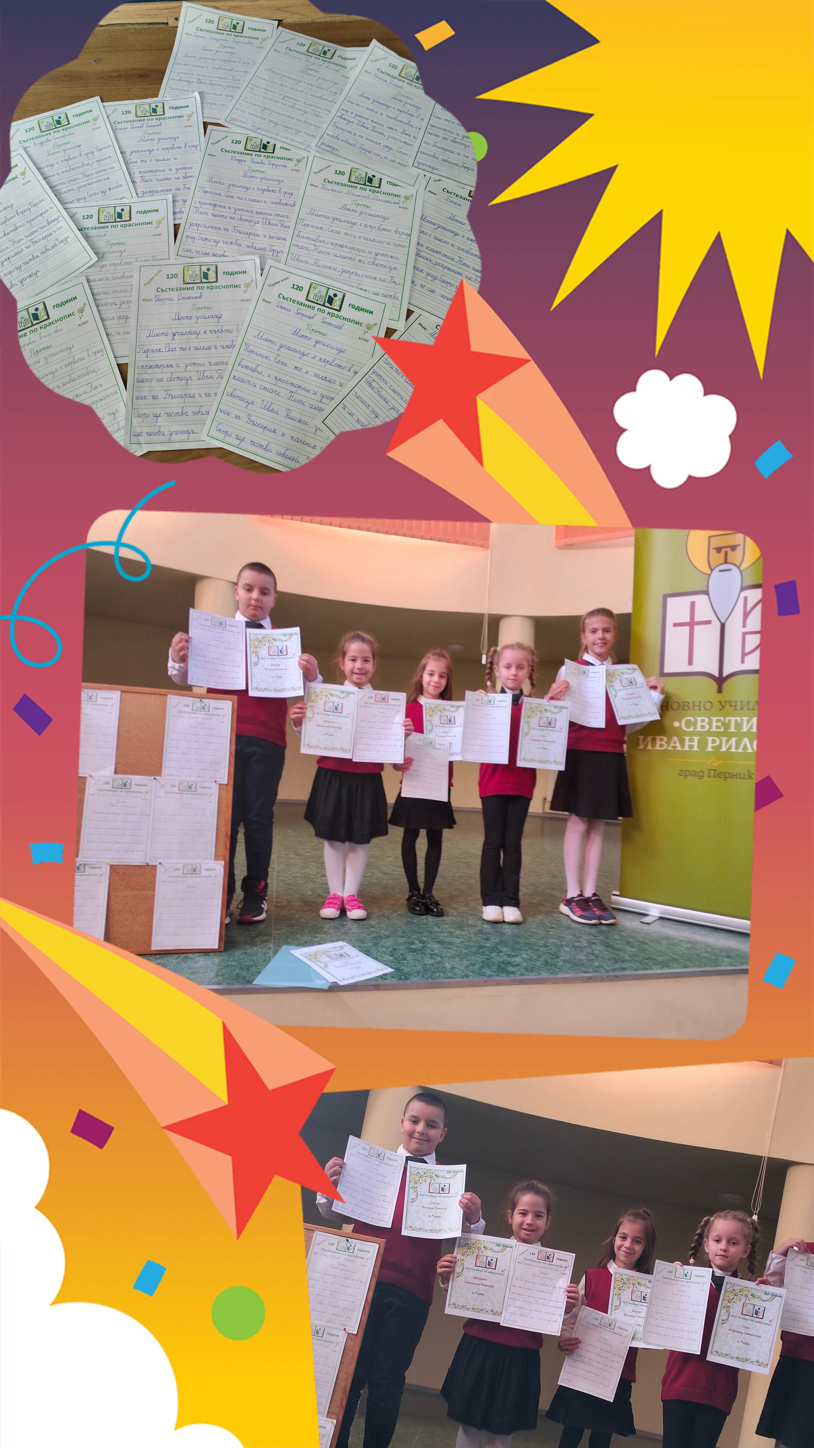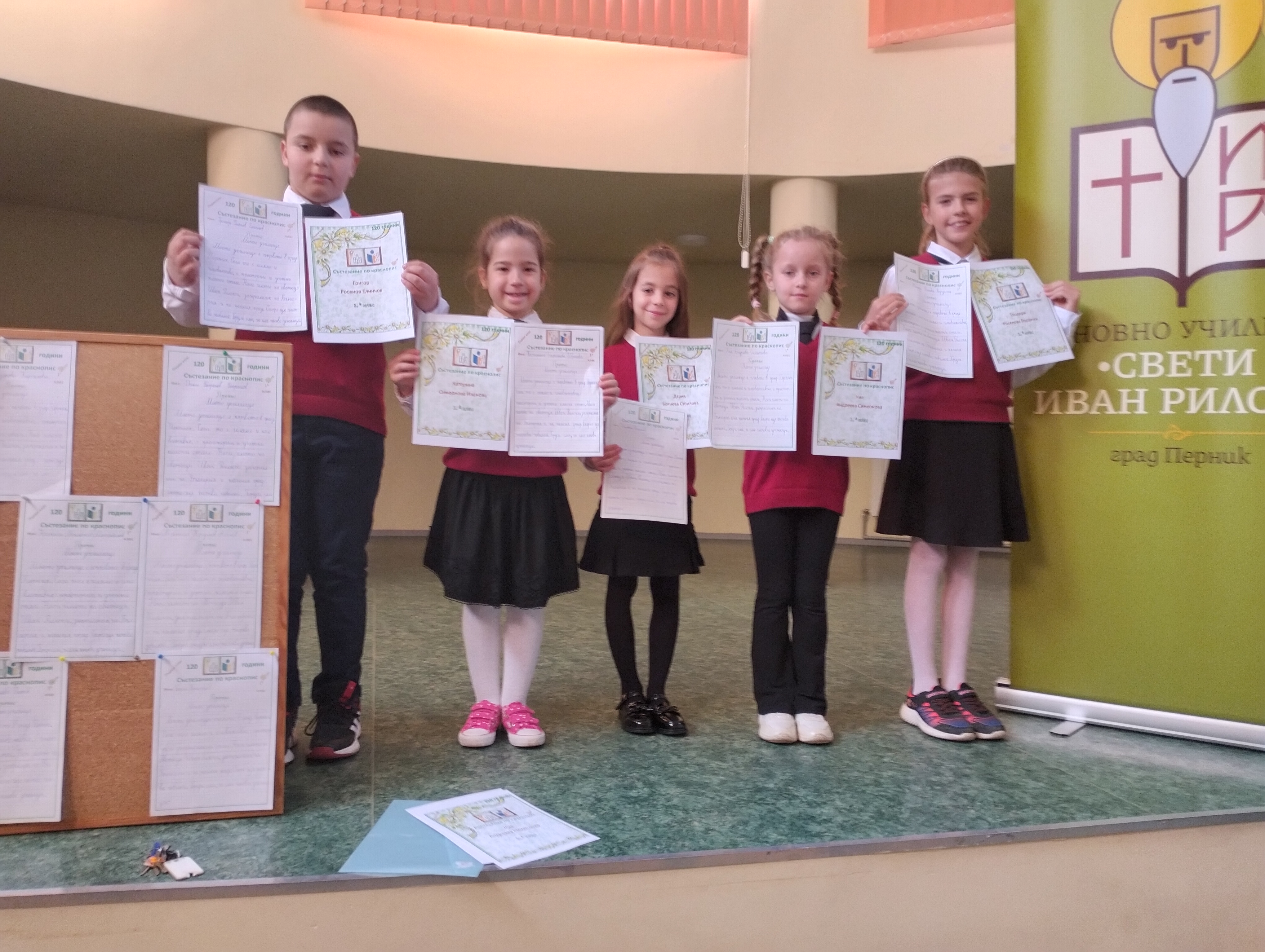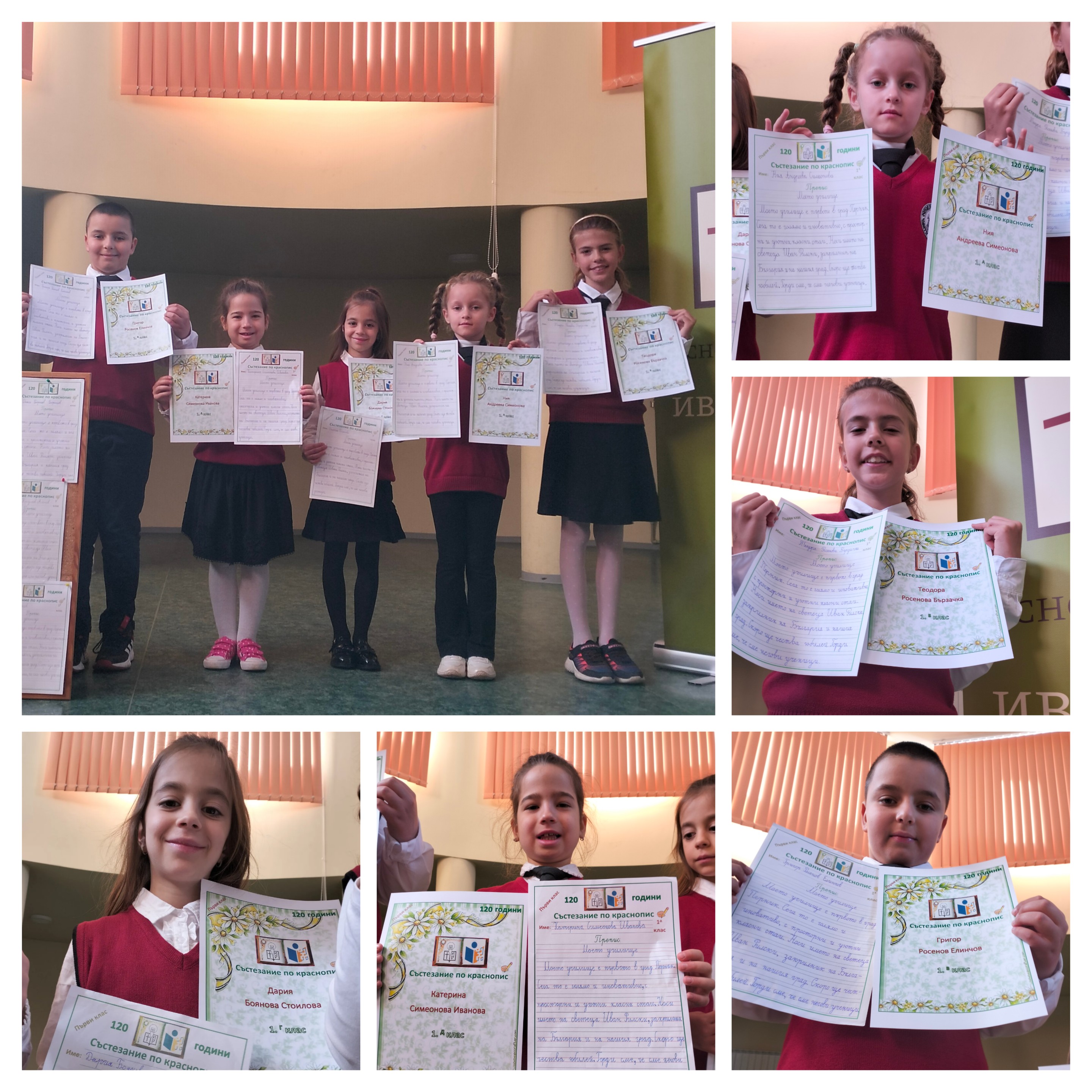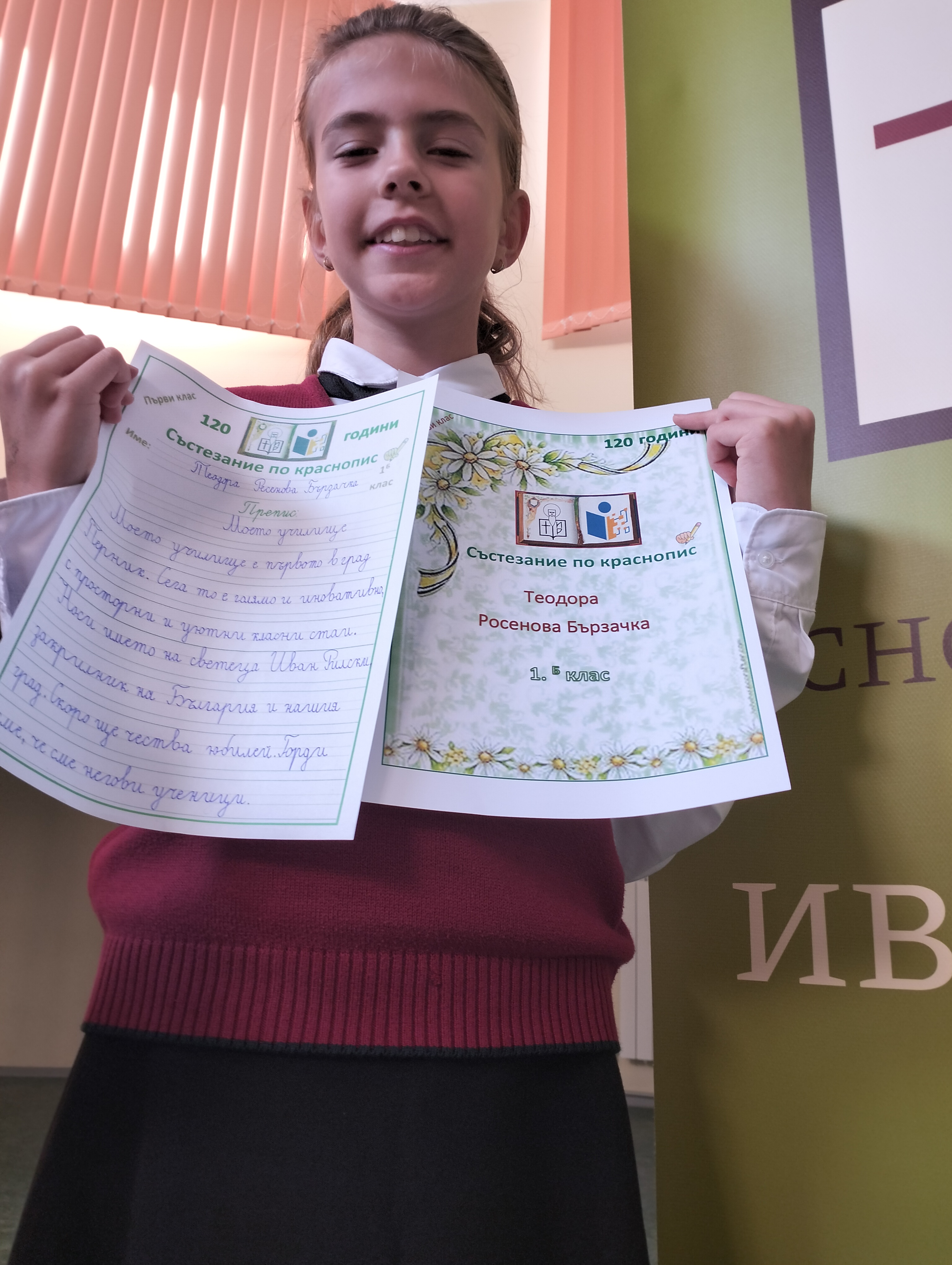 В чест на 120 - годишнината на училището първокласниците се състезаваха в красиво писане. Всички работеха с ентусиазъм.