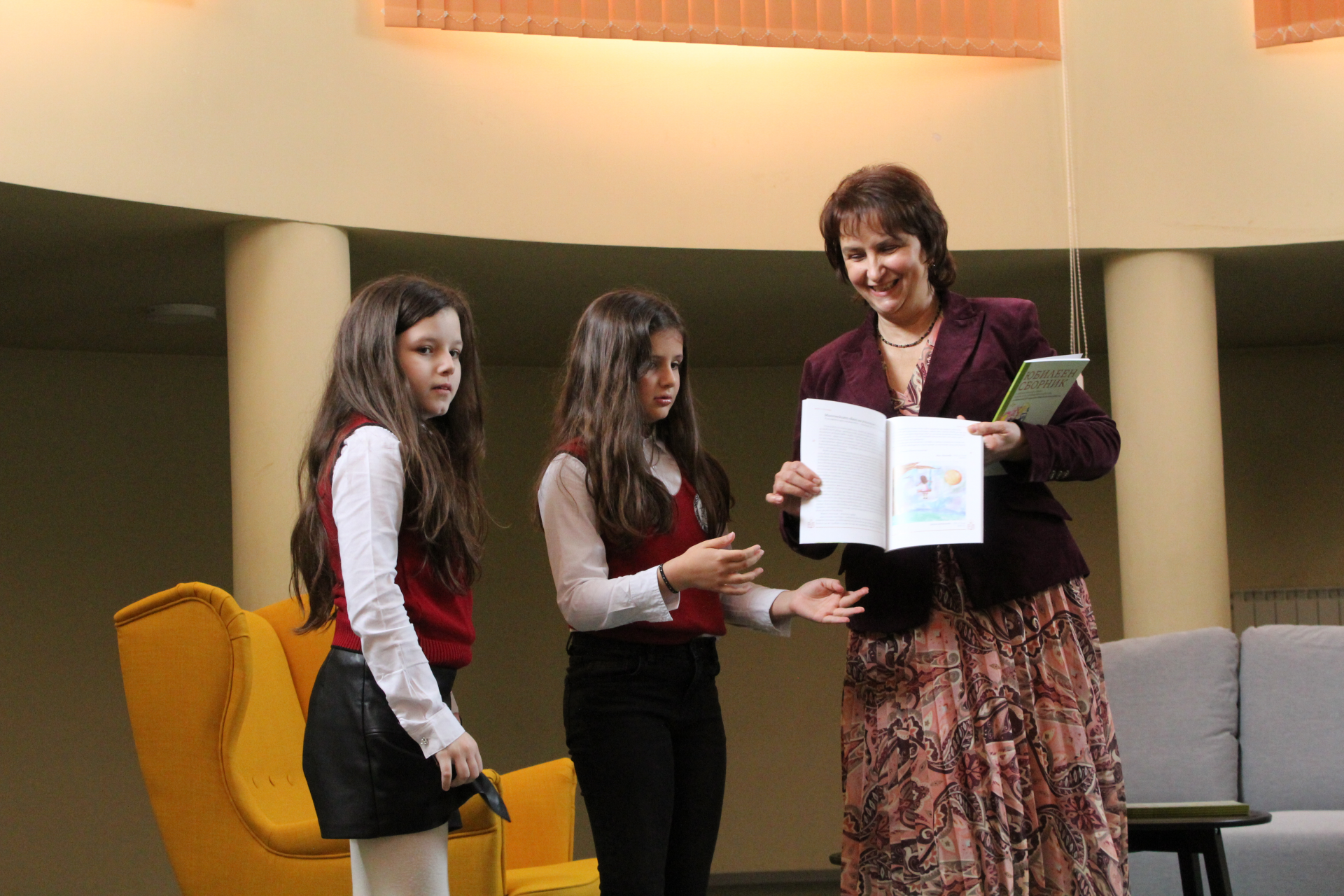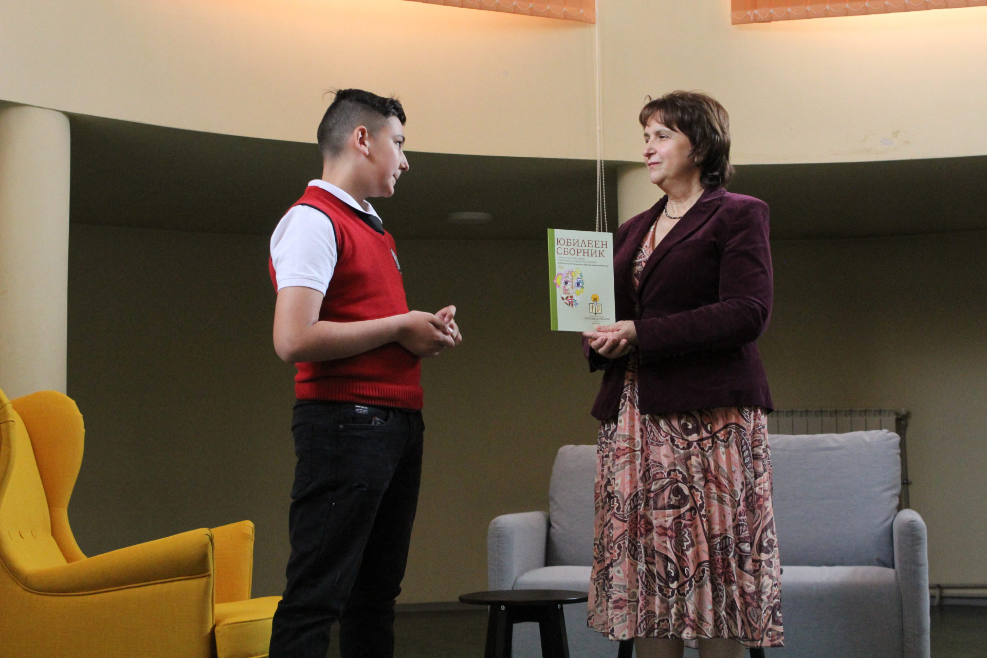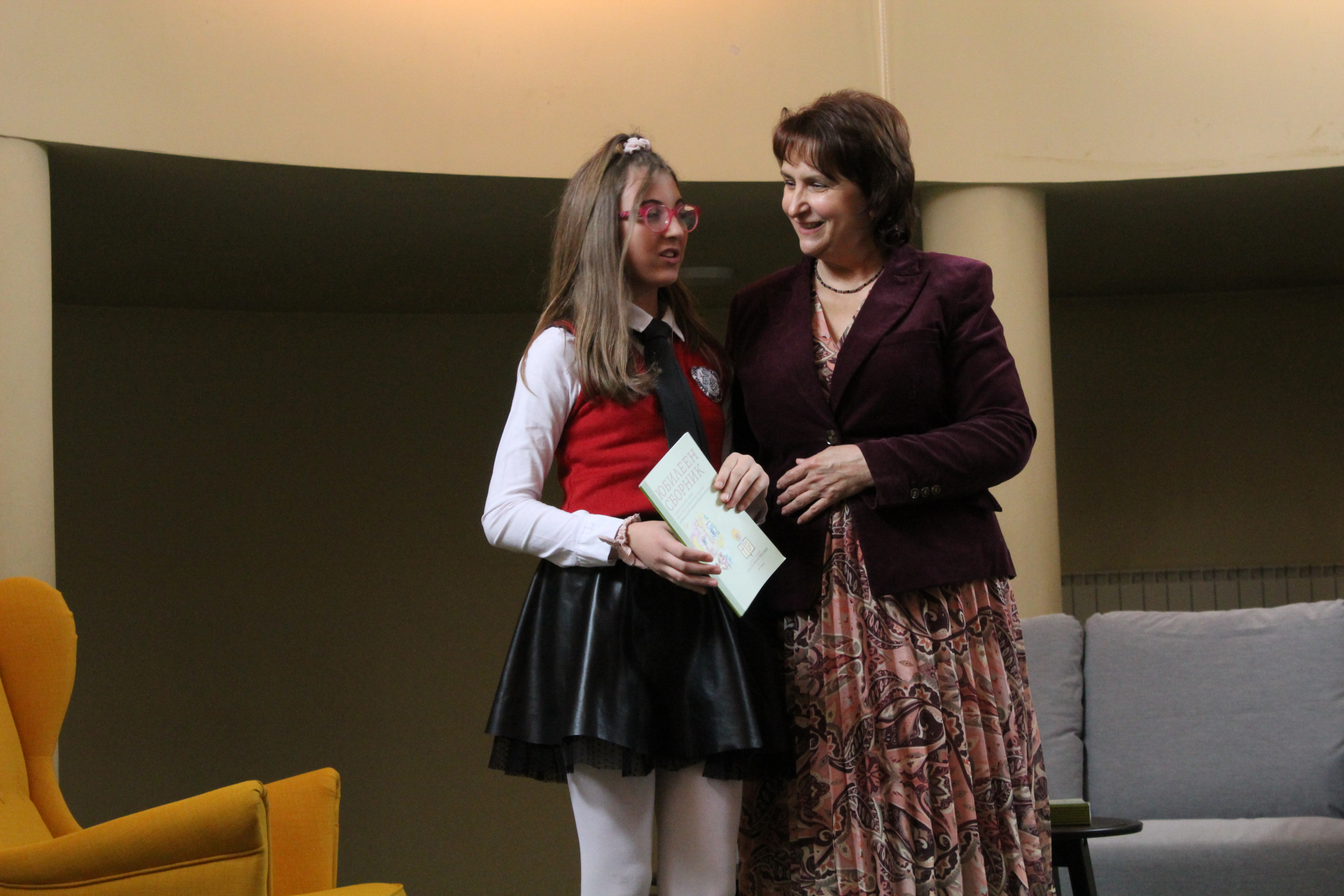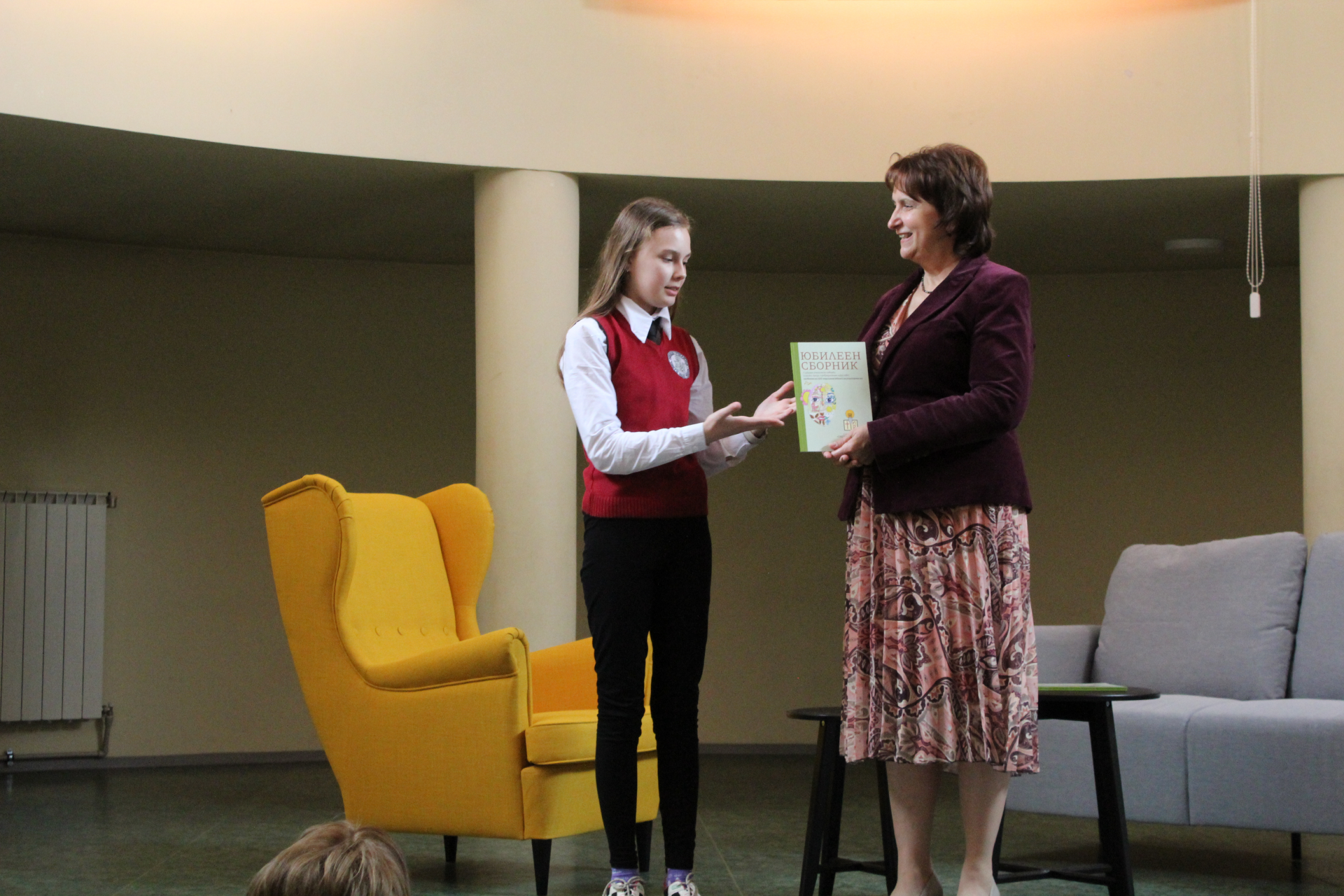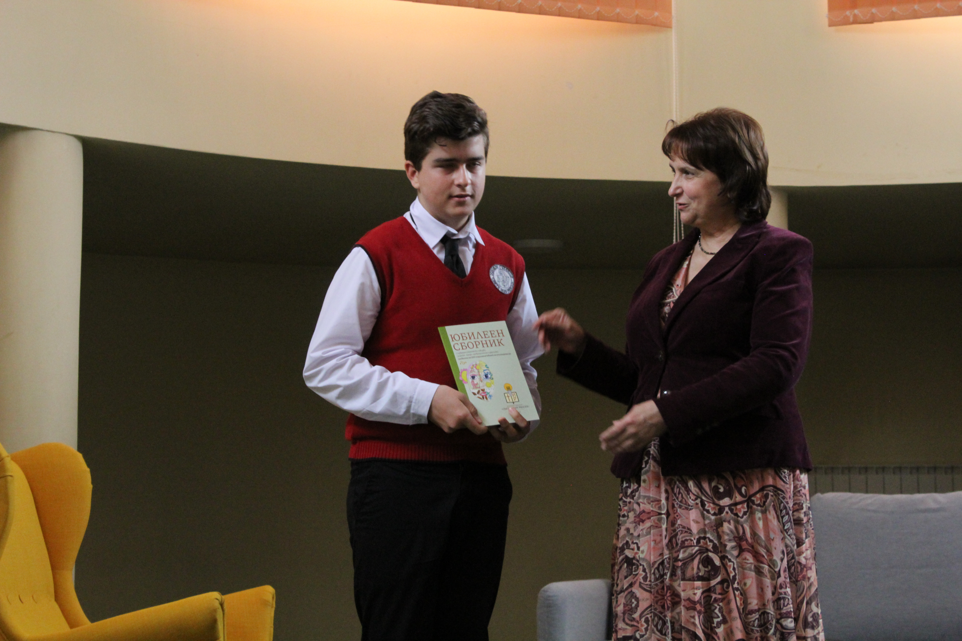 Директорът на училището Цветана Пиралкова връчи личен екземпляр от юбилейното издание на всеки от авторите. Те от своя страна с радост разгърнаха страниците на пълноцветната книга и с удоволствие представиха своите творби пред аудиторията, събрана в музикалния салон на училището.