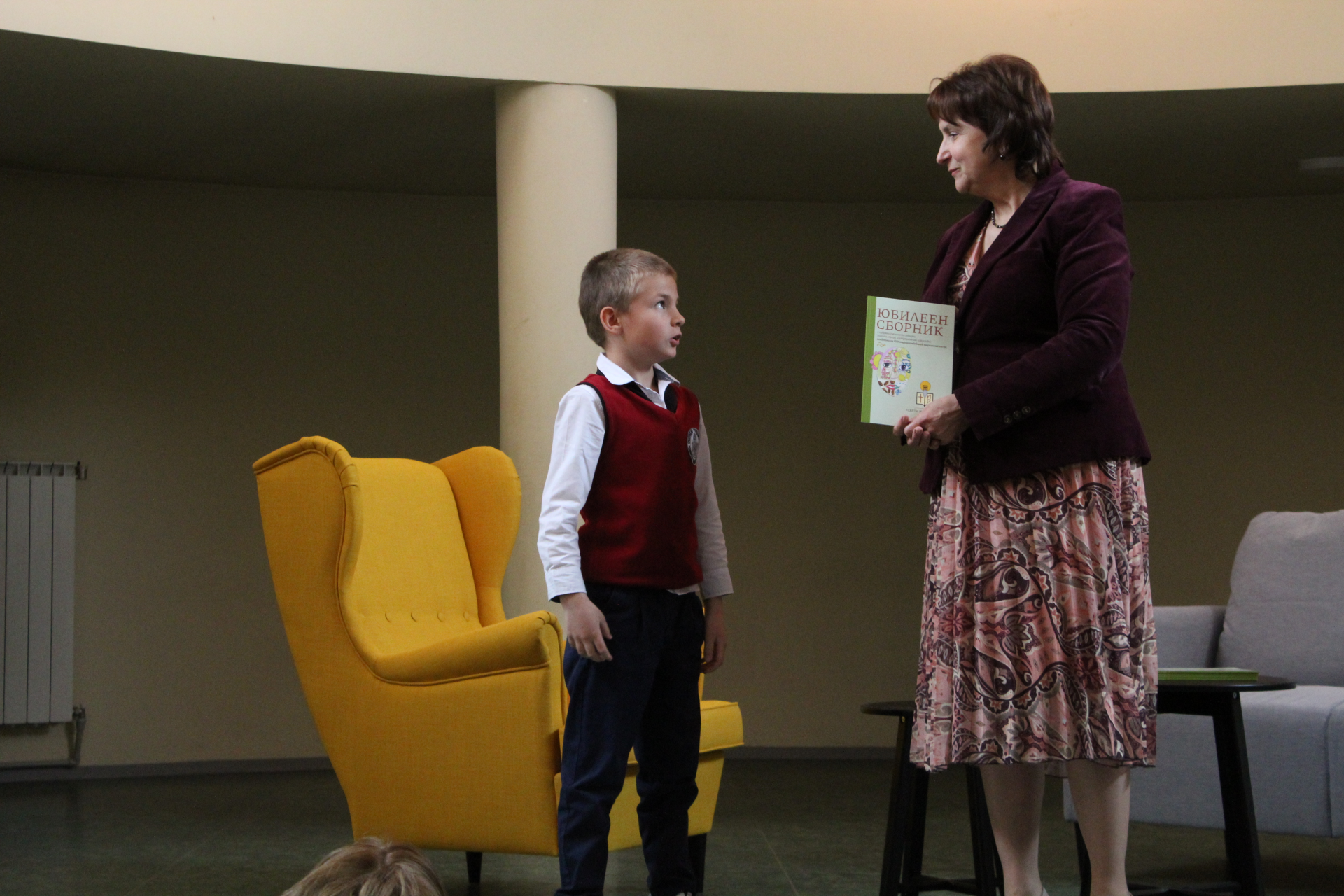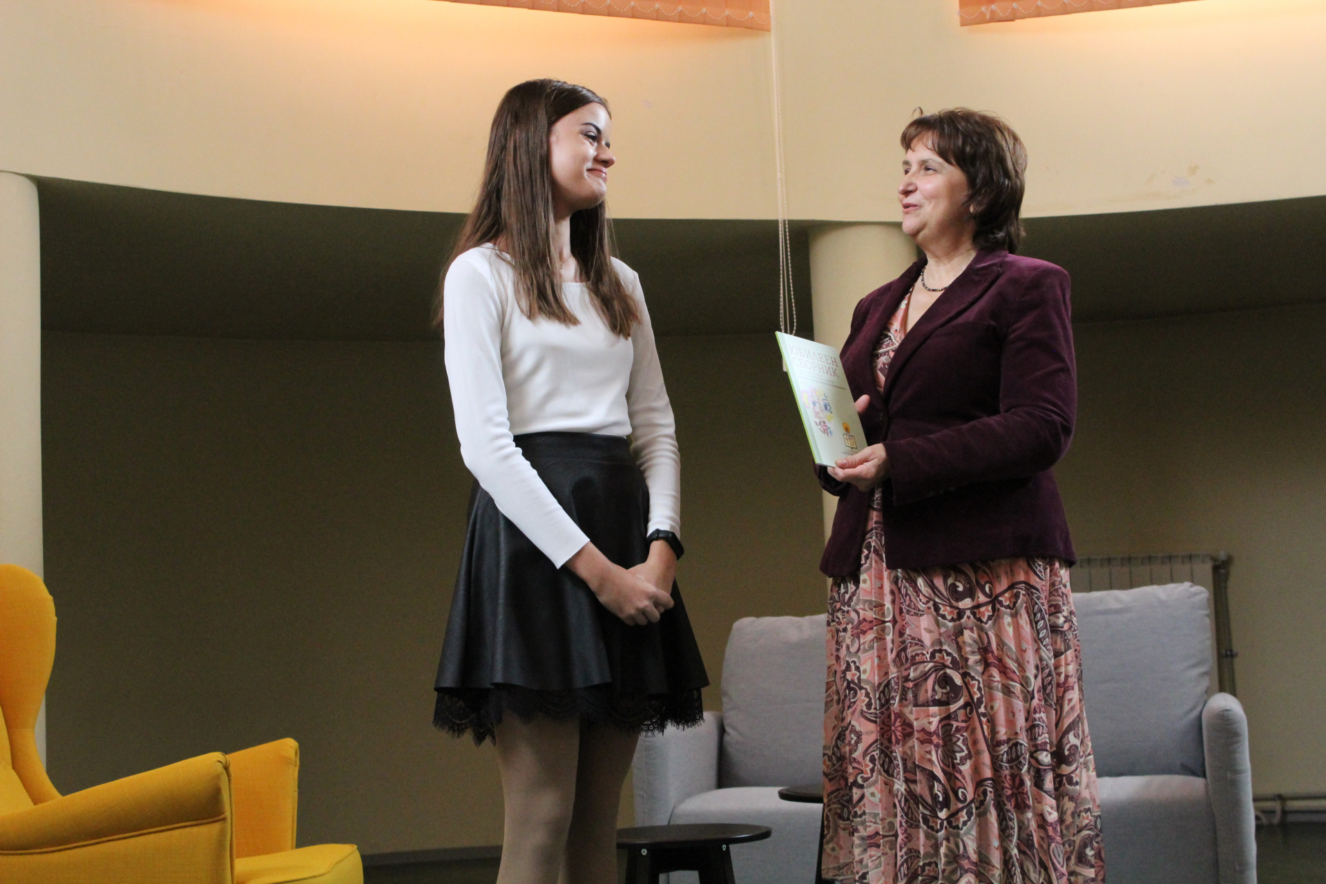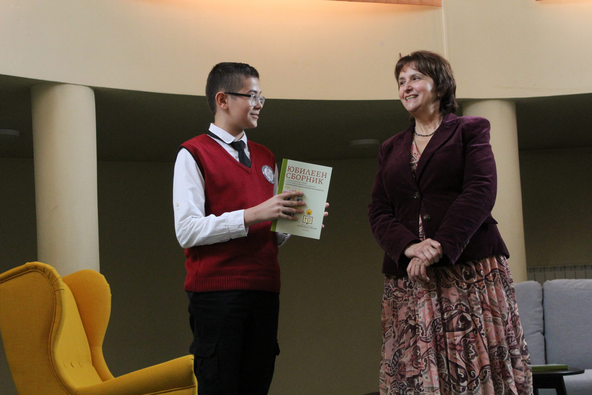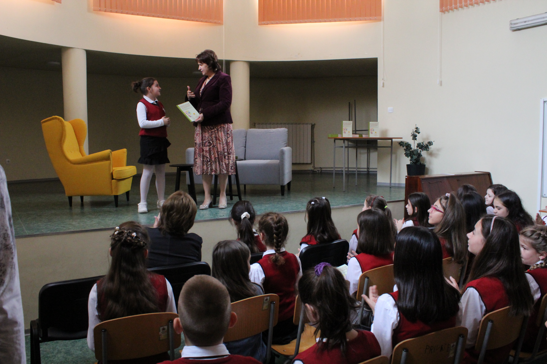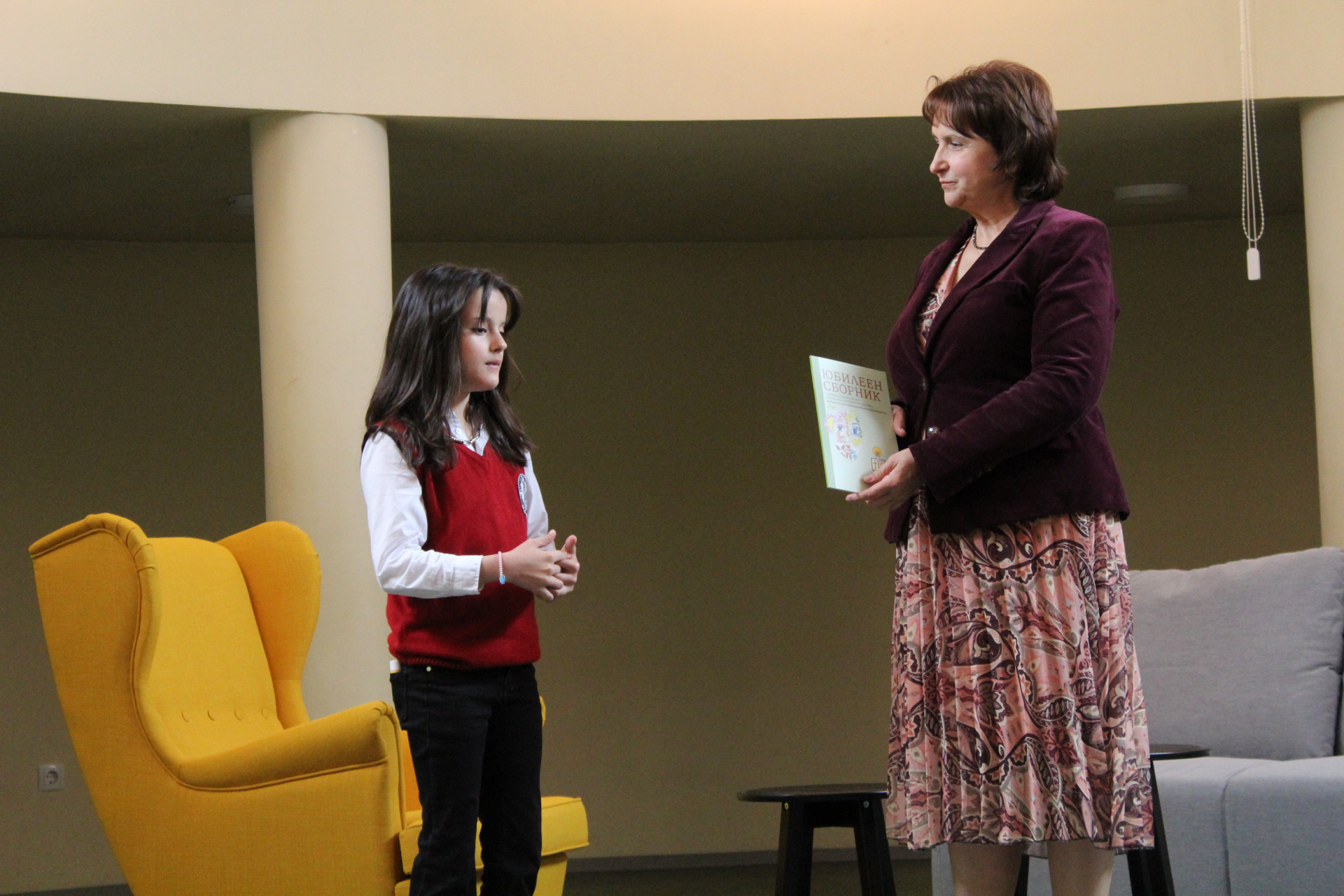Директорът на училището Цветана Пиралкова връчи личен екземпляр от юбилейното издание на всеки от авторите. Те от своя страна с радост разгърнаха страниците на пълноцветната книга и с удоволствие представиха своите творби пред аудиторията, събрана в музикалния салон на училището.