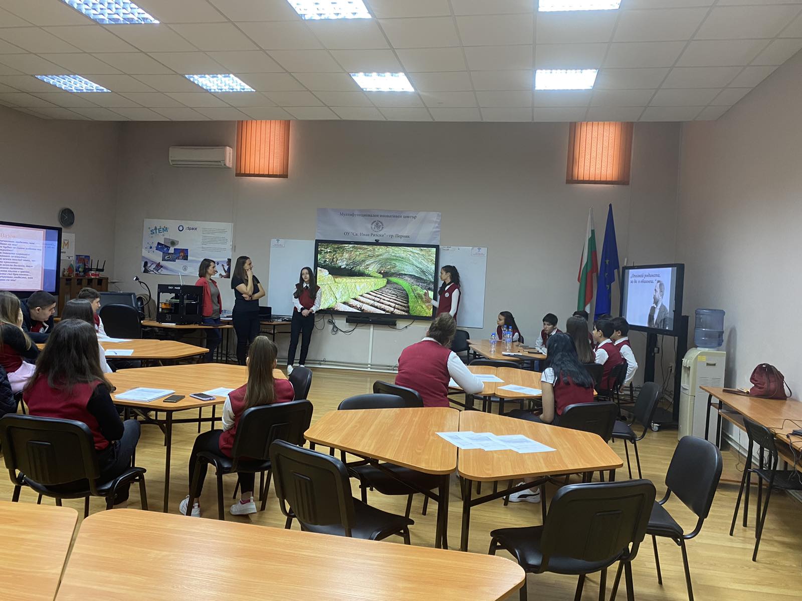 Достойно се представиха и учениците от 7 „е“ клас в бинарния урок, който се състоя на 12 май, миналия петък. Показаха виртуално пътуване по Стара планина, като съчетаха география и литература по оригинален и привлекателен начин.
