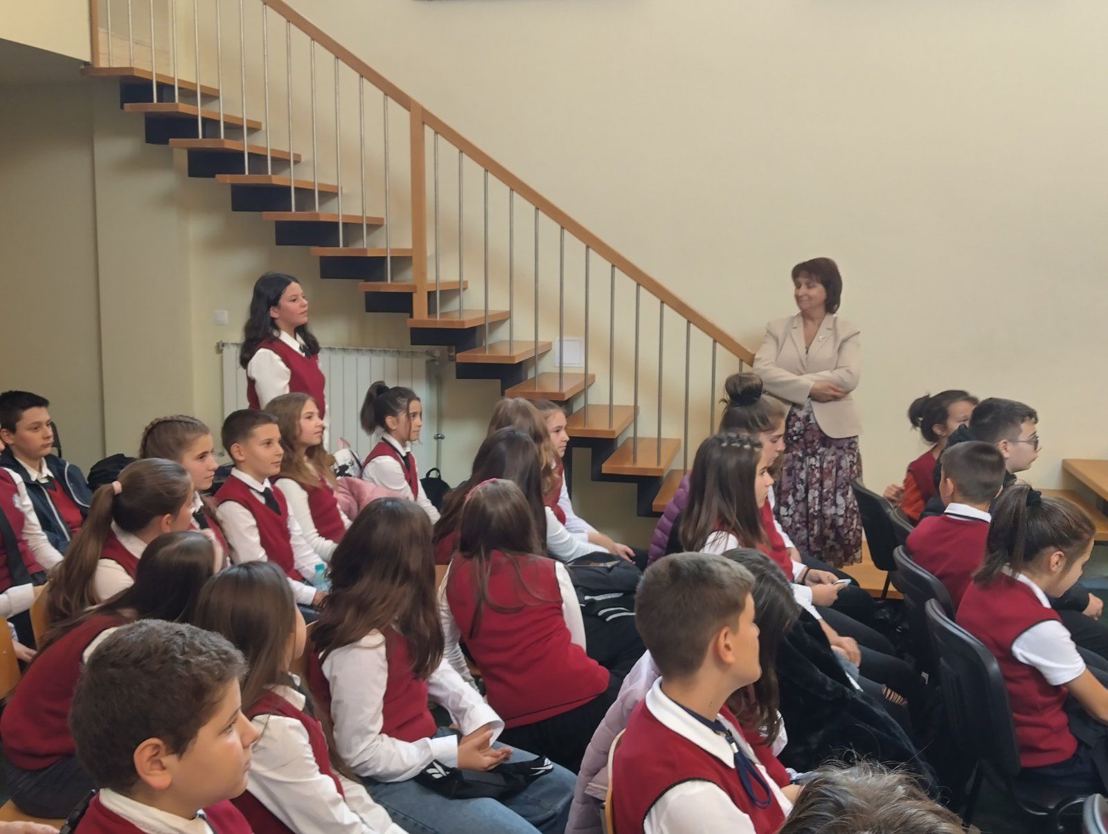 Новият сезон на инициативата „Лидери срещат лидери” стартира със среща на новия състав на Ученическия съвет с членовете на управителния съвет на Обществения съвет към училището. Двата съвета, определени в правилника на училището като органи на съуправление на училищното ръководство и на Педагогическия съвет, се запознаха, представяйки се един на друг със своите професии, интереси и любими дейности за изява. И защото от началото на учебната година в училище тече комуникационната кампания на Обществения съвет, с която на родителите се представя идеята за въвеждане на ежедневна ученическа униформа, тази тема беше дискутирана. Ученическият съвет даде своята единодушна подкрепа за инициативата. Учениците от своя страна споделиха своите идеи за инициативи и дейности, които планират да организират през годината. Тъй като подобна среща се организира за първи път, участниците споделиха удоволствието да се познават, обещаха си да поддържат връзка и да се срещнат отново.