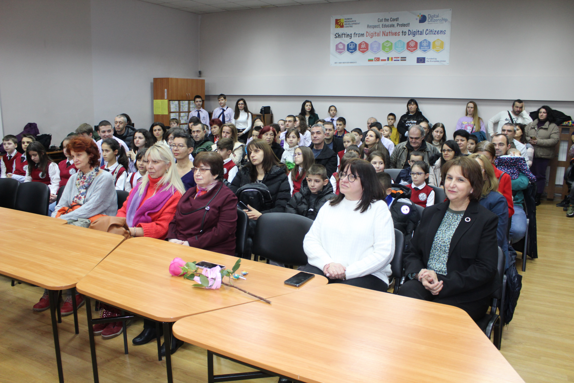 Празникът на математиката завърши с обща снимка на наградените, гостите на събитието и неговите организатори – учителите по математика на ОУ „Св. Иван Рилски“.