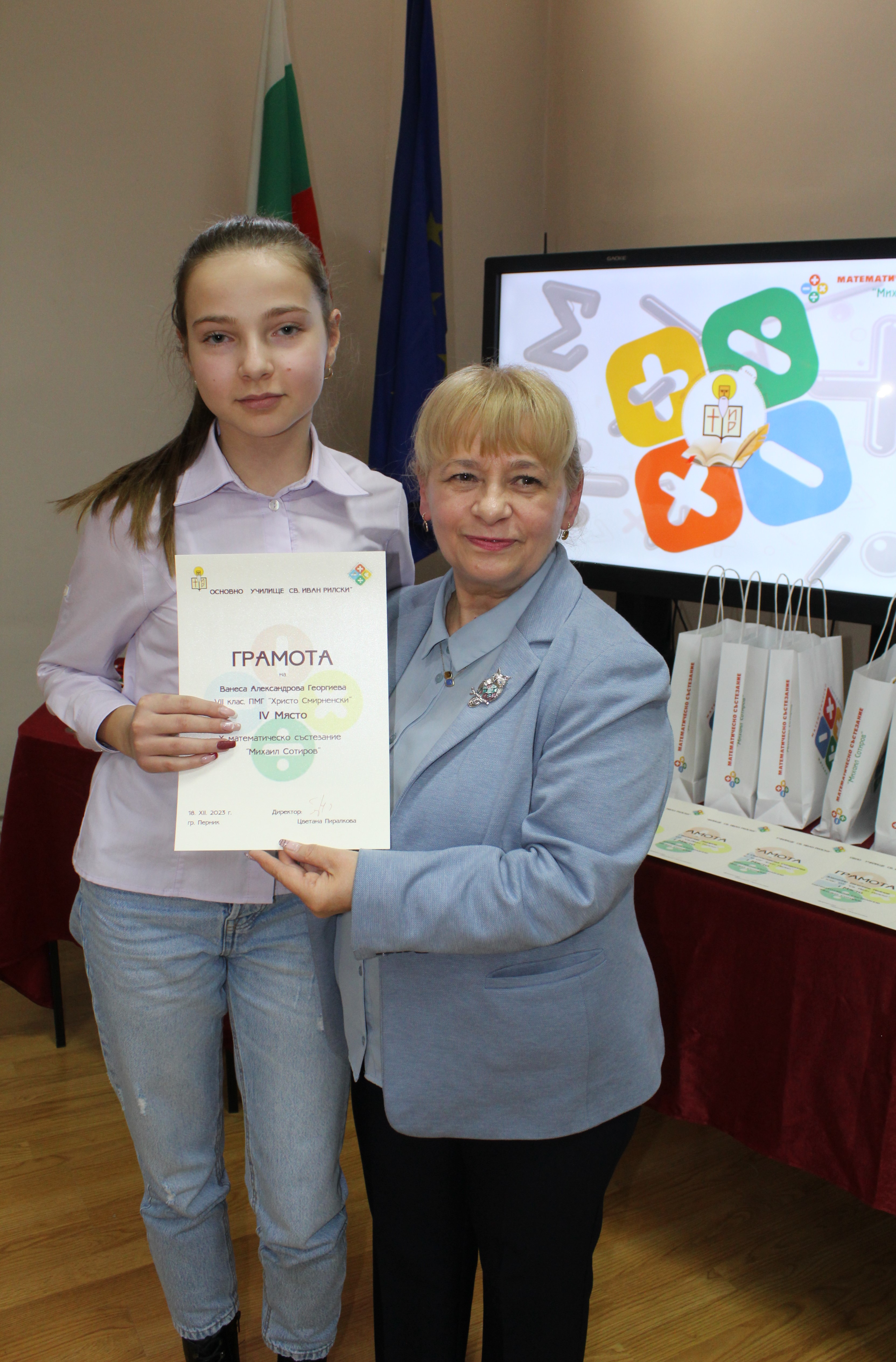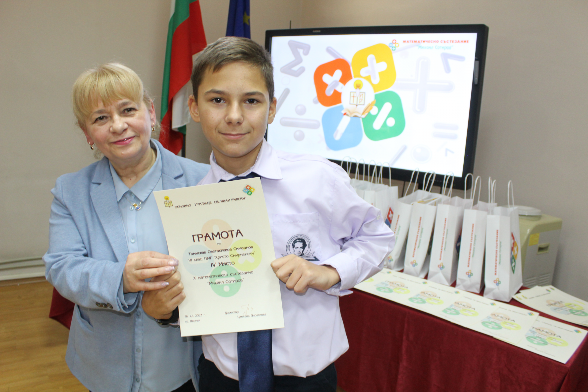 На 18.12.23 г. се проведе церемонията по награждаването на участници взели призови места в Х–то по ред състезание, посветено на математиката. Патронът на състезанието - Михаил Сотиров, е един от забележителните математици в съвременната история на България, живял и творил в Перник.