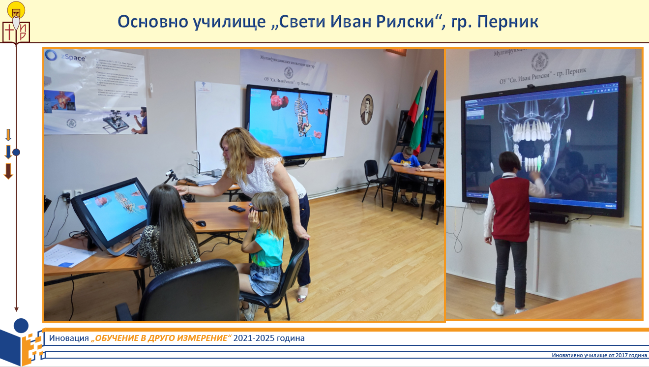 ОУ „ Свети Иван Рилски“ е първото в областта иновативно училище , получило статут през 2017 година с иновацията „ Дигиталните технологии – успешният път на знанието“, която надградихме през 2021 година с „ Обучение в друго измерение“. На форума споделихме иновативните педагогически практики и подходи, с които осъществяваме обучението в нашето училище, за да бъде то модерно, отговарящо на времето , в което живеем. Г- жа Светлана Велчева, начален учител , въвела технологиите в учебния процес още през 2011 година, за да може ученето да носи удовлетворение за всяко дете, да вярва в своите възможности и неусетно да надгражда знанията си и да повишава резултатите си, презентира постиженията ни като екип , работещ новаторски и синхронизирано за обезпечаване на качествен учебен процес. Вярваме, че само чрез споделяне и диалог ще продължат активните и ефективни промени в образованието.