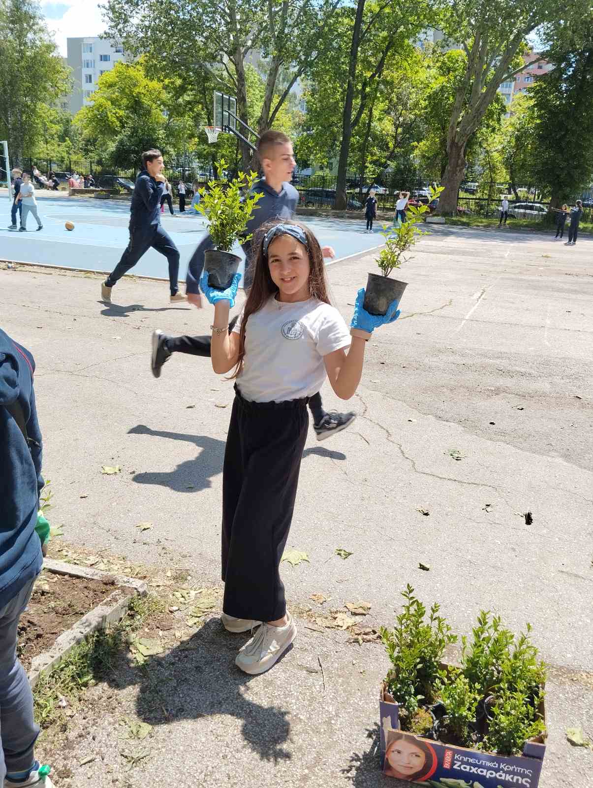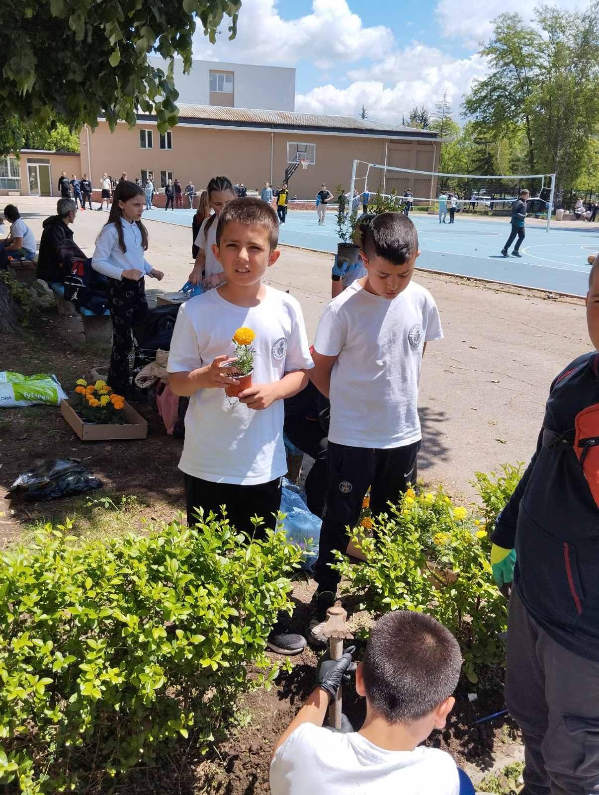 С много ентусиазъм, усмивки и старание, третокласниците превърнаха училищната градинка в пъстро и уютно кътче, изпълнено с цветове и живот.