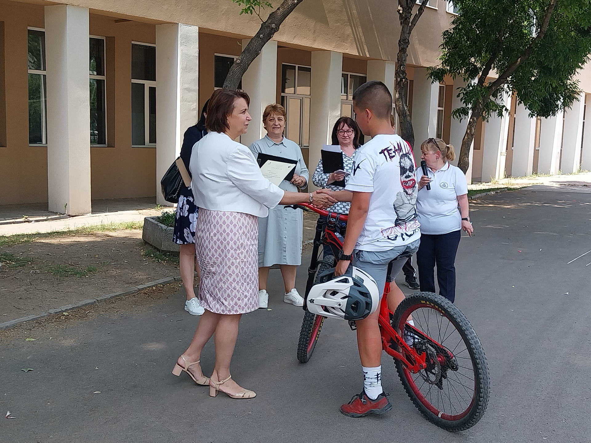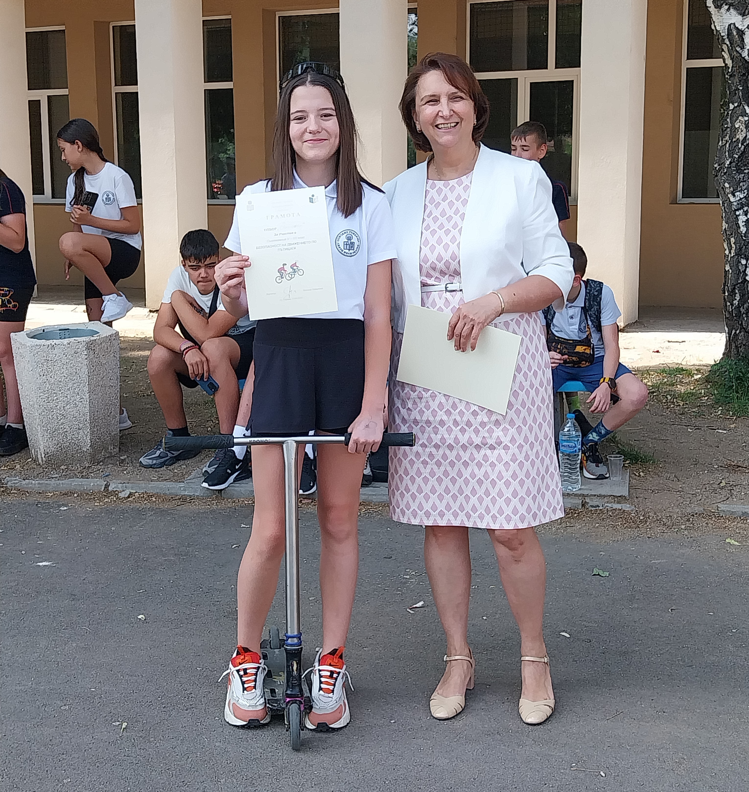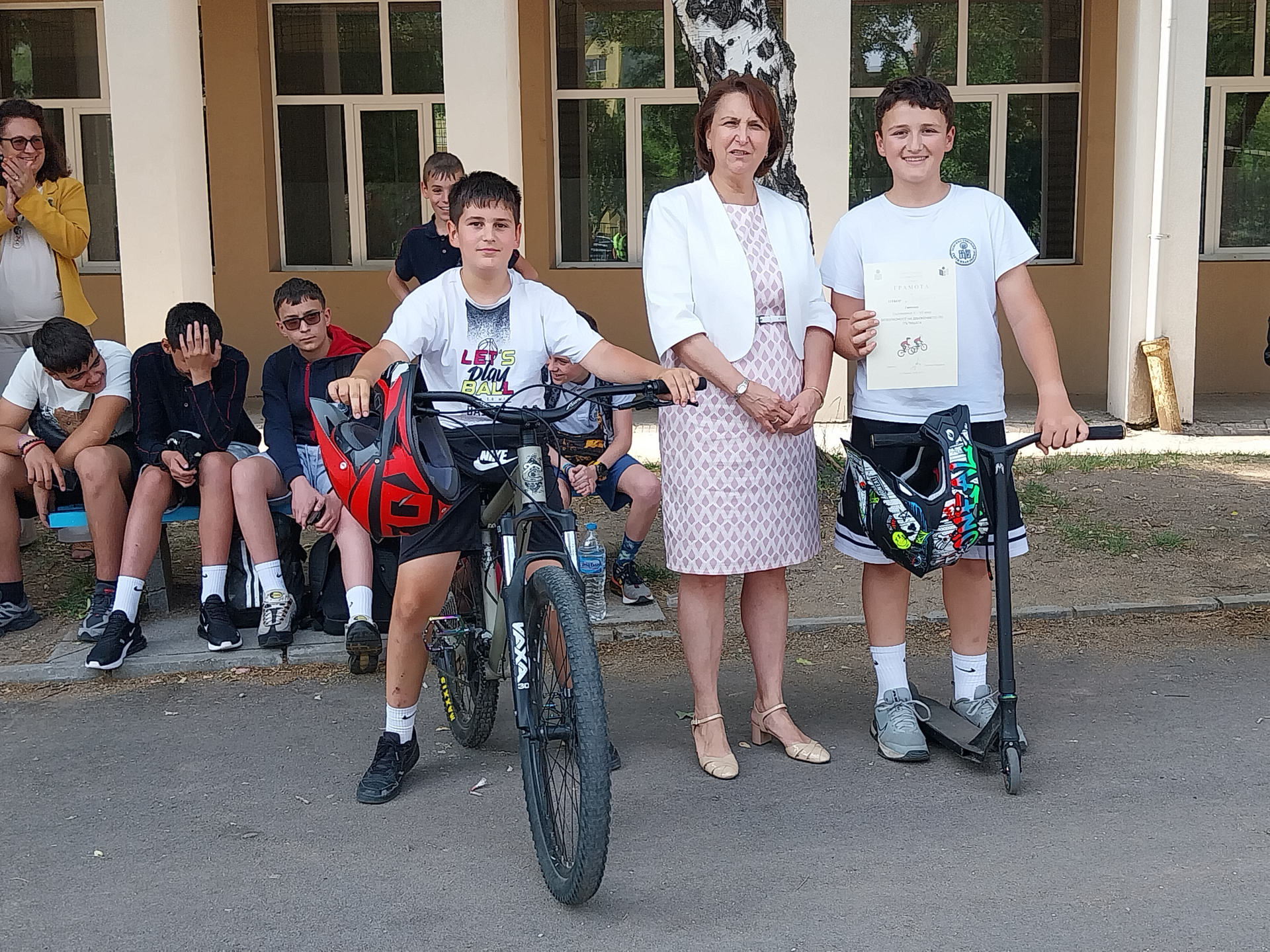 Първото място бе спечелено от отбор „Зебра“ с капитан Александър Димитров Венев от VI „г“ клас, второто място бе за отбор „Пешеходец“ с капитан на отбора - Радея Петрова Петрова от VI „в“ клас и на трето място се класира отбор „Велосипед“ с капитан - Валери Зашев от VII „б“ клас. Директорът на училището г-жа Цветана Пиралкова награди всички екипи с грамоти за показаните знания и майсторство в управлението на велосипеди и тротинетки.