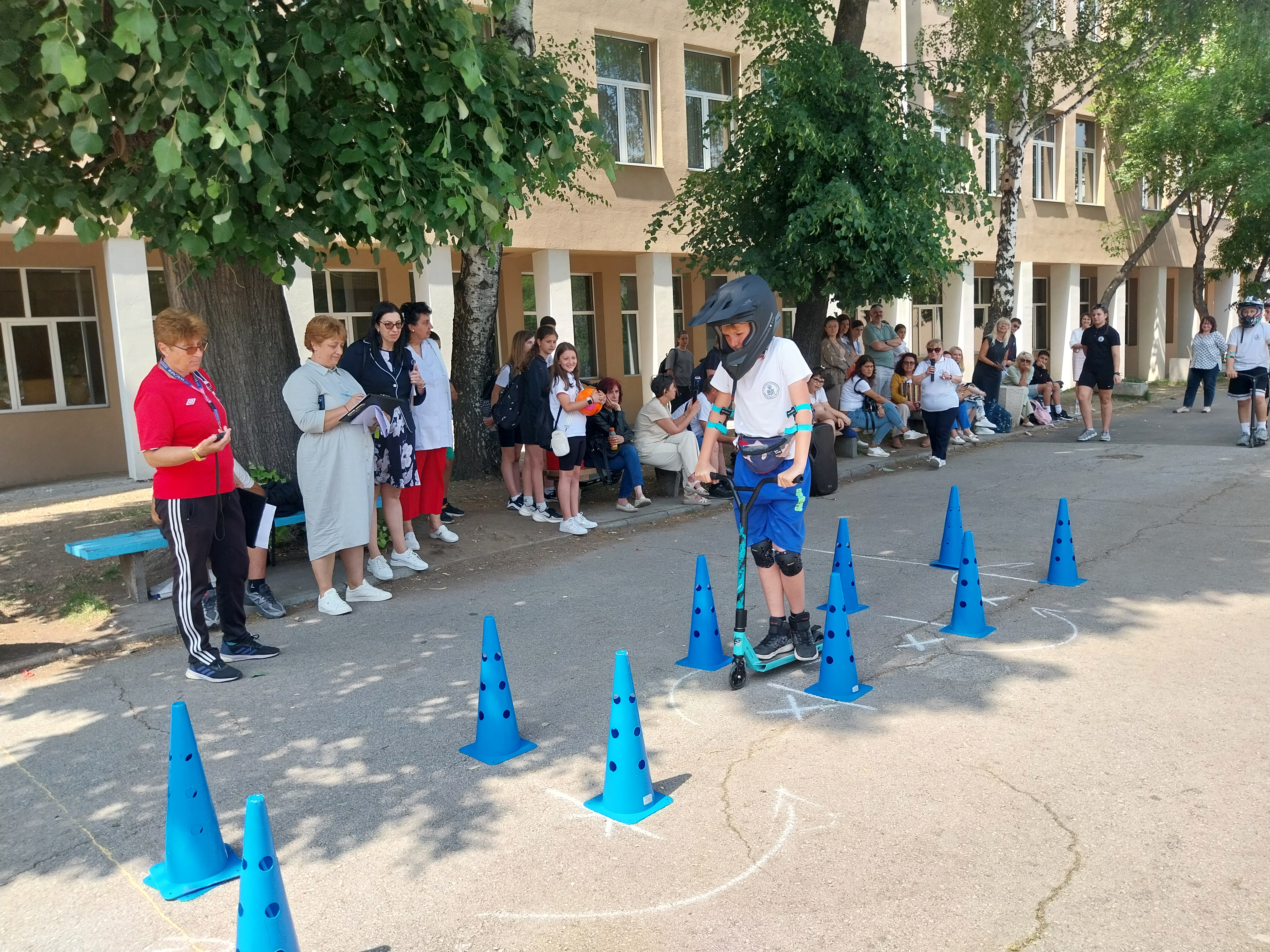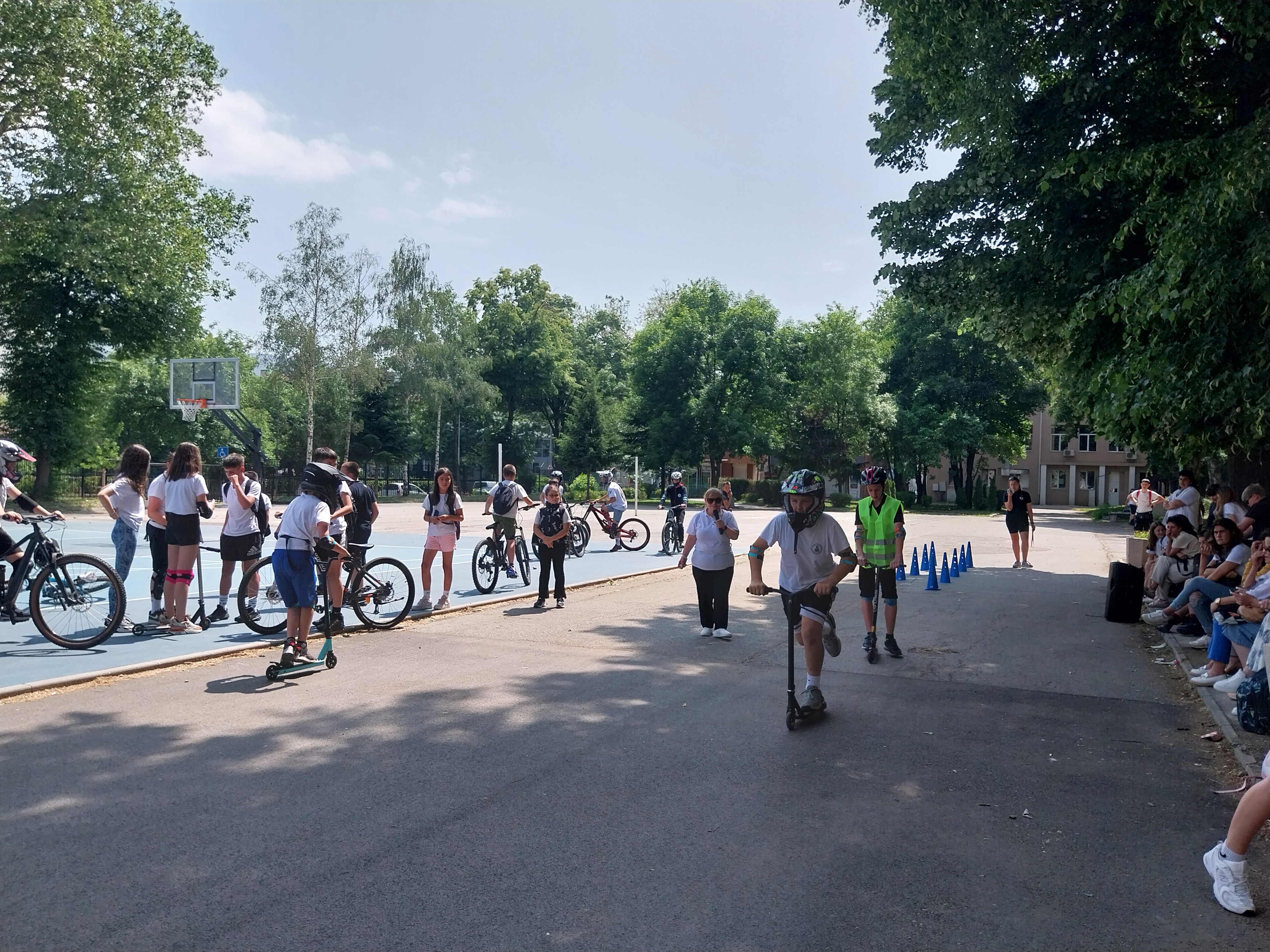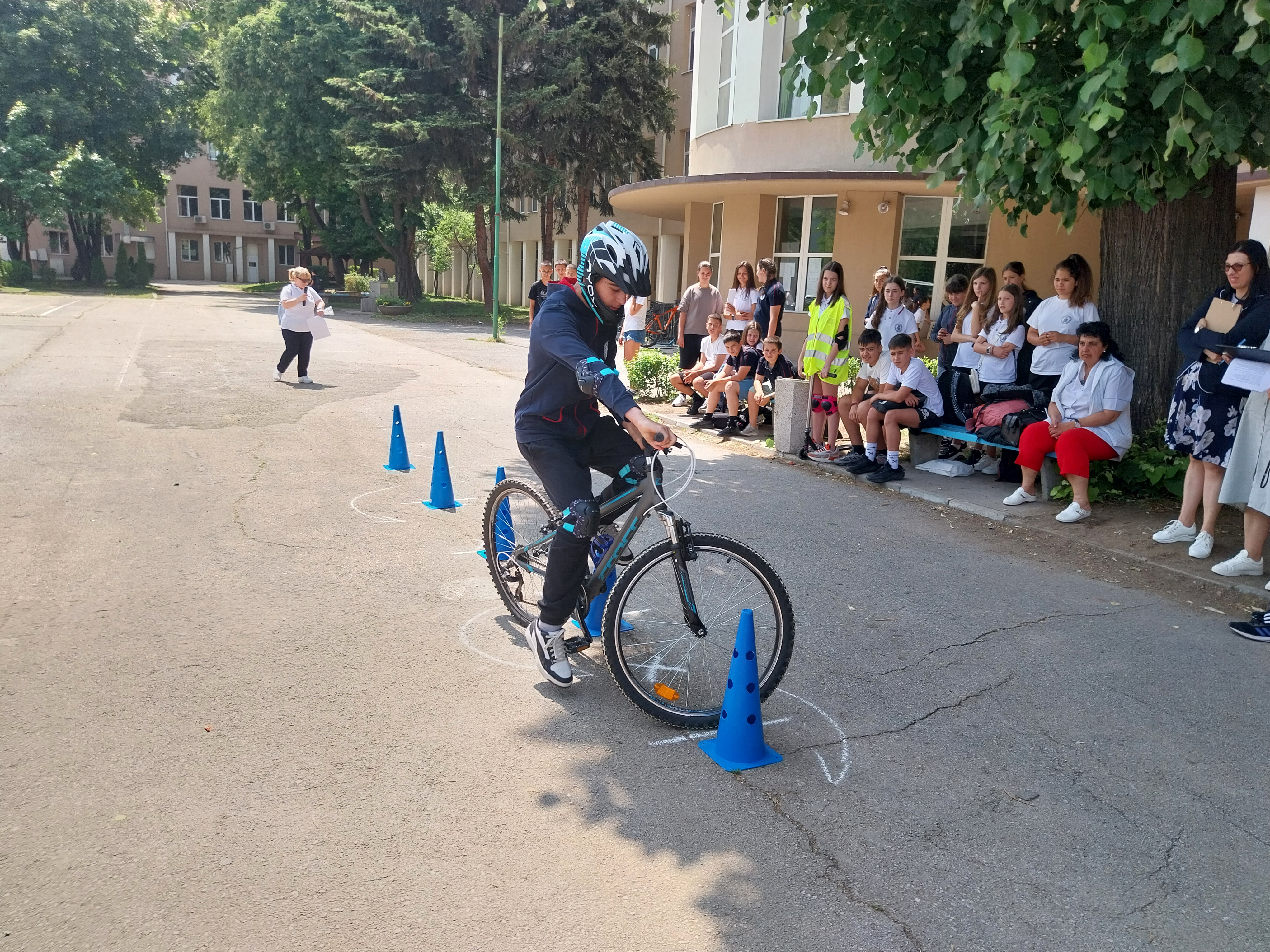 Състезанието премина в две части – писмен тест и практически тест. Учениците от отборите премериха сили в писмен тест с 15 въпроси от учебното съдържание по БДП и в практически тест за управление на велосипед и тротинетка при изпълнение на зададени елементи за ловкост и креативно изпълнение с различни препятствия.
