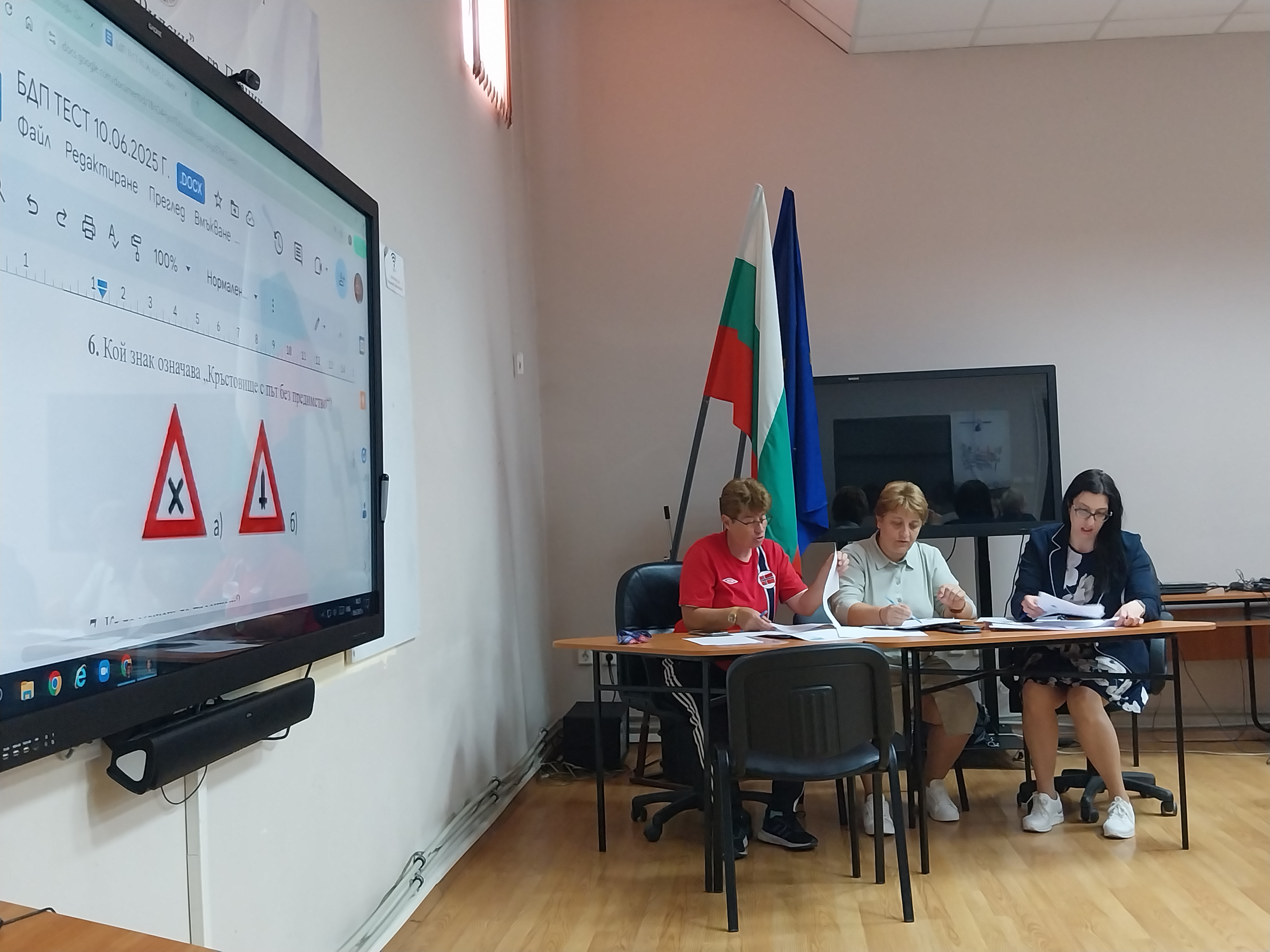 Главен съдия на състезанието по Безопасност на движението по пътищата бе г-жа Мариана Михайлова – зам. Директор. Журито бе допълнено от компетентното присъствие г-жа Емилия Методиева – старши учител по ФВС и Анна Владимирова – начален учител и член на училищната комисия по БДП.