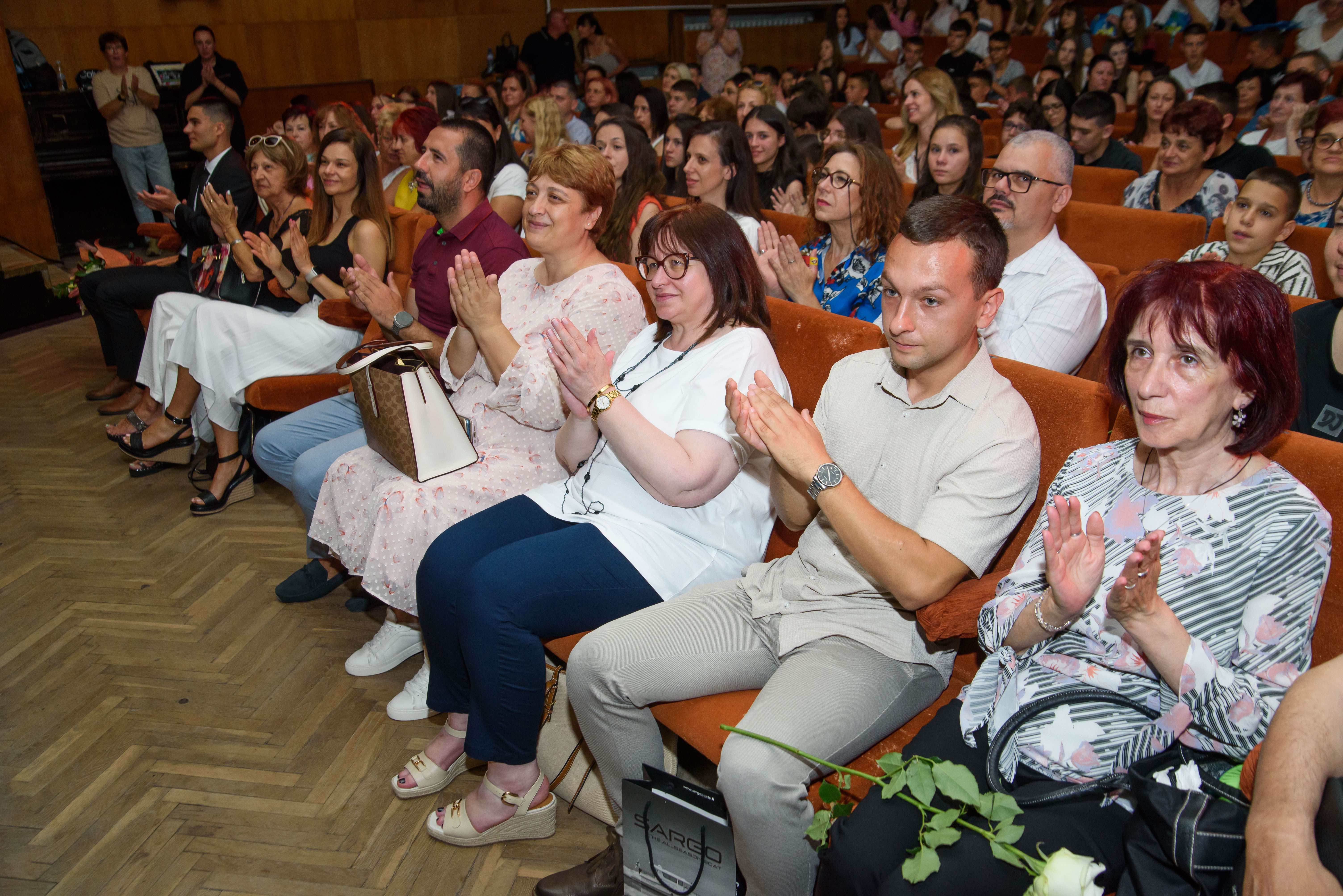 Госпожа Пиралкова връчи сребърни значки, Дипломи и Грамоти на всички седмокласници, които превзеха върховете на шестобалната система през трите години от прогимназиалния етап на обучение. Те заслужено бяха аплодирани от всички присъстващи.