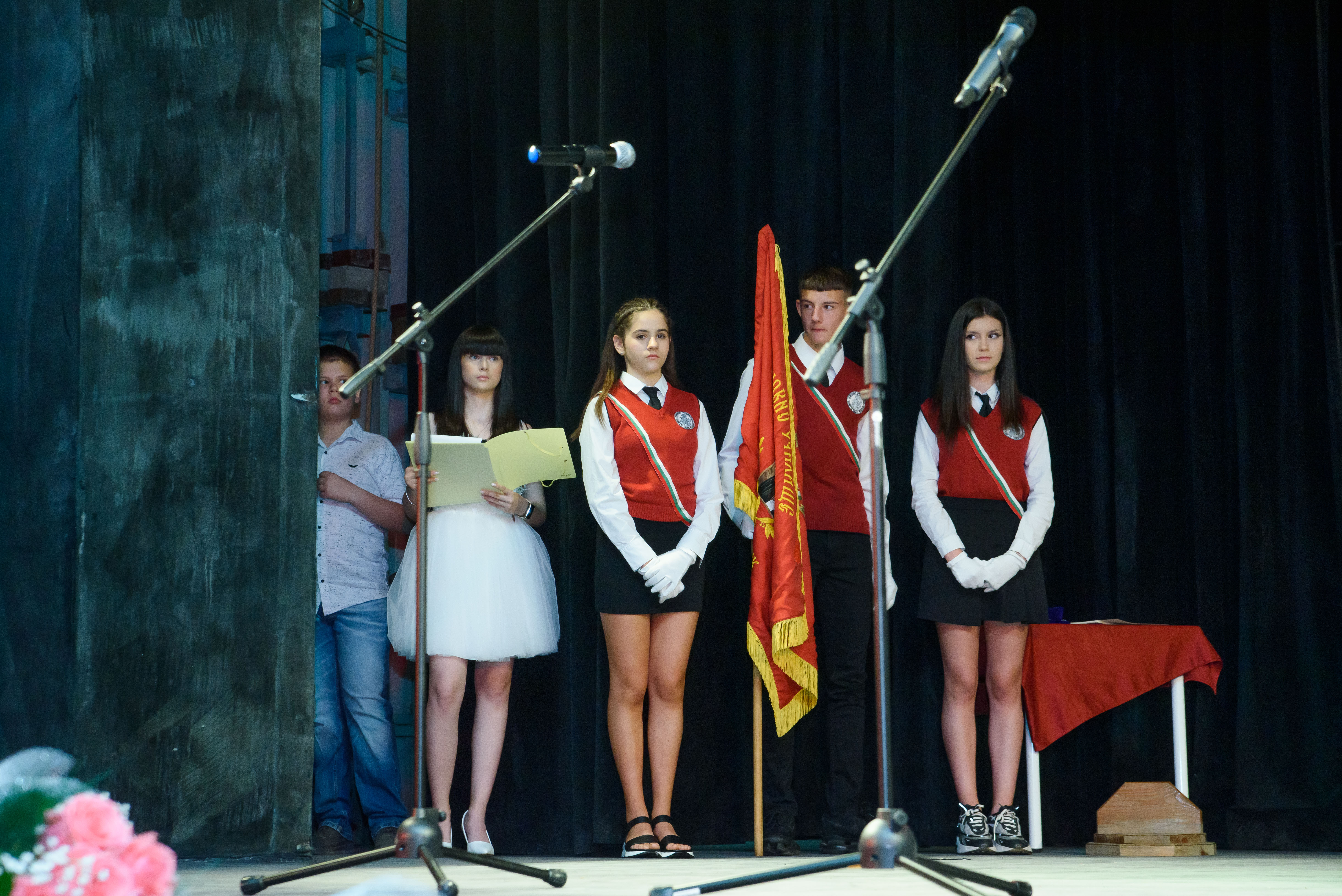 Присъстващите бяха свидетели на ритуала за предаване на училищното знаме. Настоящите знаменосци предадоха щафетата на своите приемници- ученици от 6.клас, които обещаха с чест и достойнство да съхранят чисто и неопетнено знамето и да продължат традицията в нашето училище.