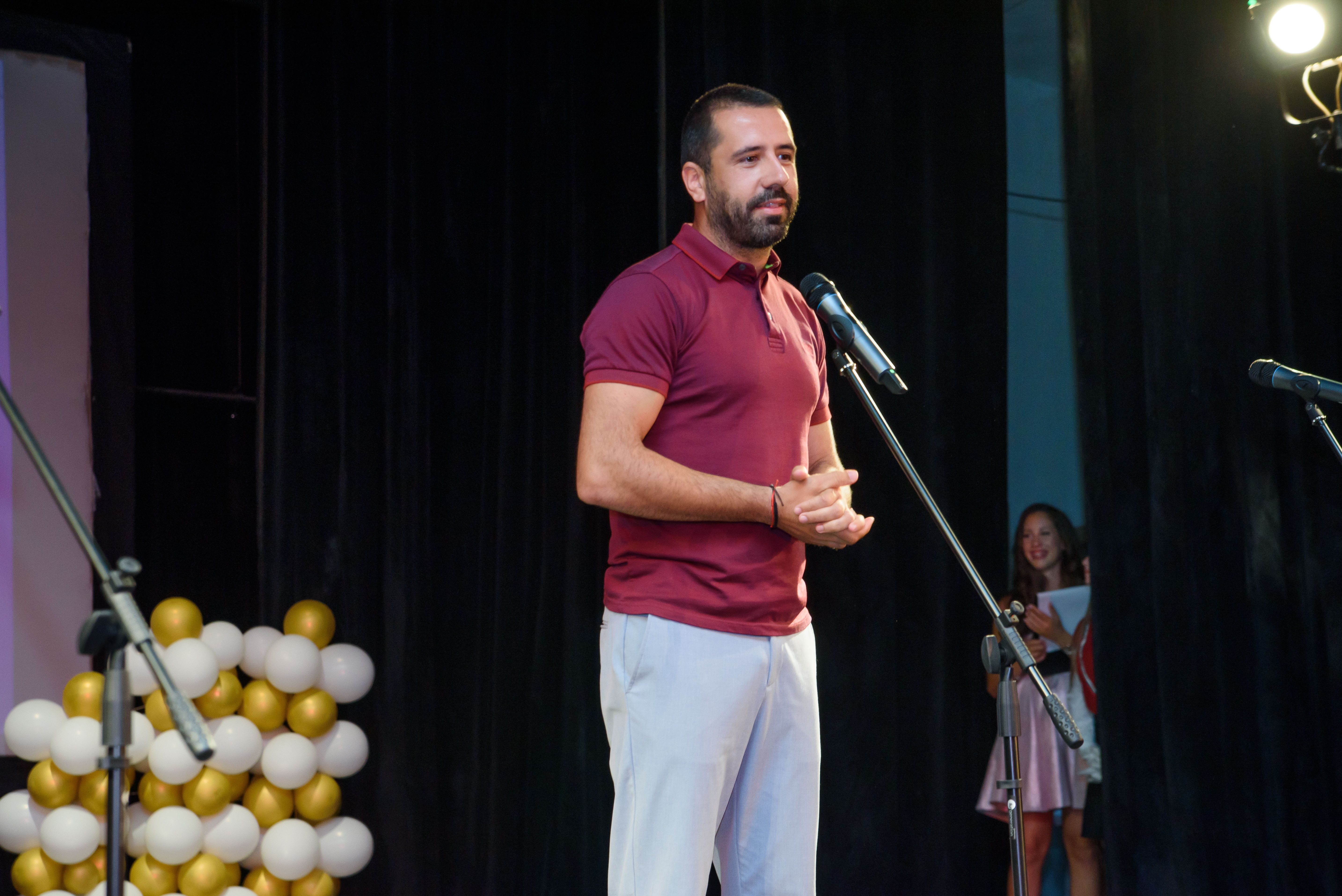 Своето послание към седмокласниците отправи Калоян Стоянов- бивш възпитаник на училището ни и настоящ студент в Юридическия Факултет на СУ „Свети Климент Охридски“. Ралица Рангелова от 7 „д“ клас бе гласът на седмокласниците. Тя се обърна с вълнуващи думи към аудиторията.