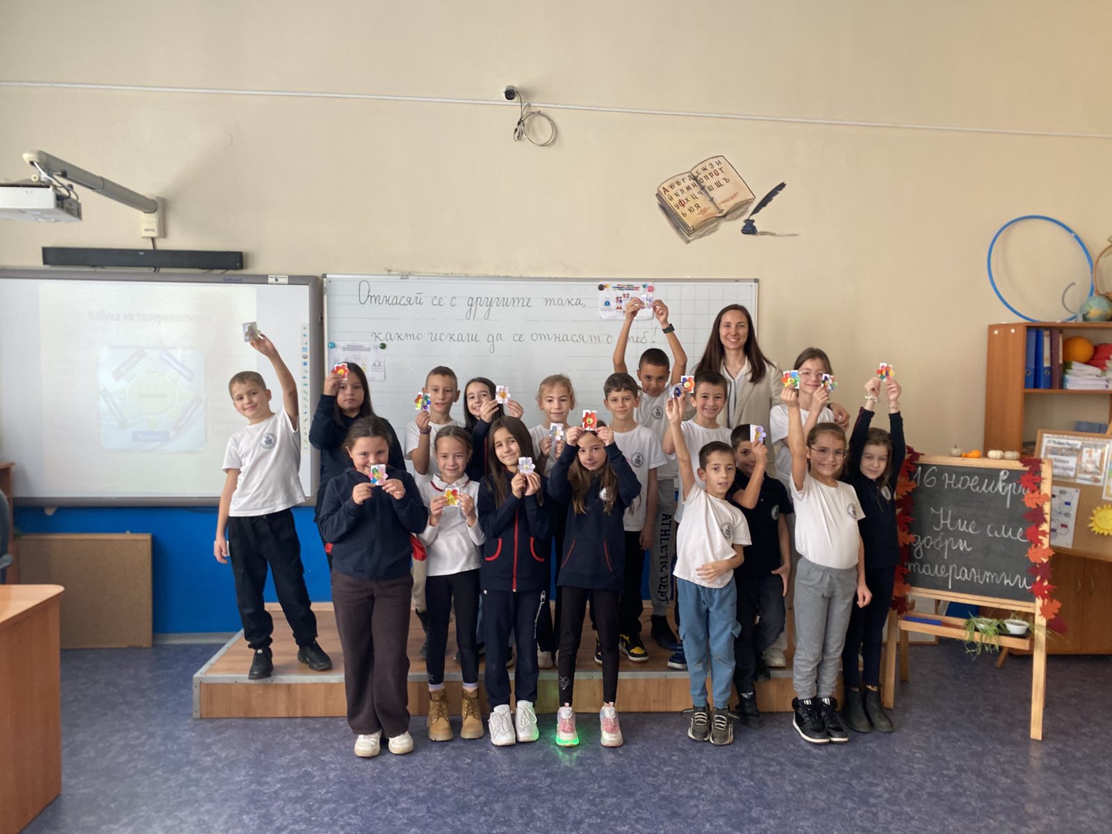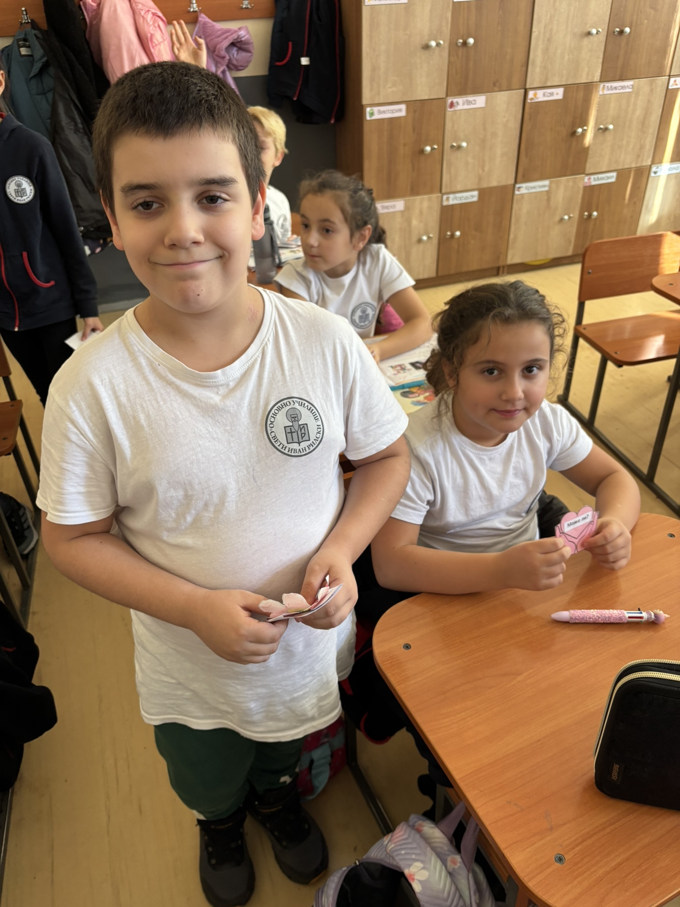 Учениците от ЦОУД – 2 клас днес подариха табелки на учениците от ЦОУД – 1 клас, за да им напомним, че доброто започва с една усмивка и с уважение към другите.