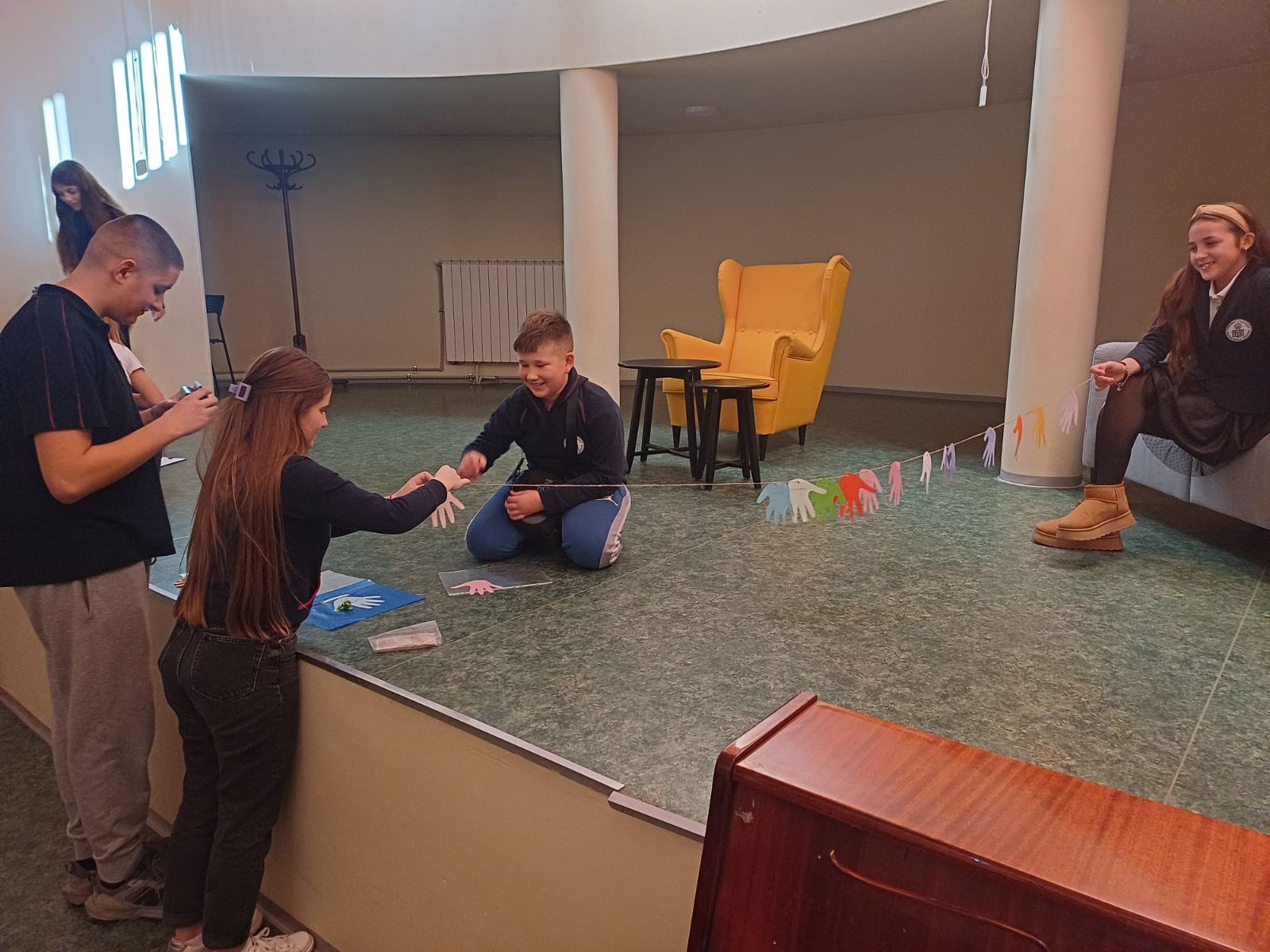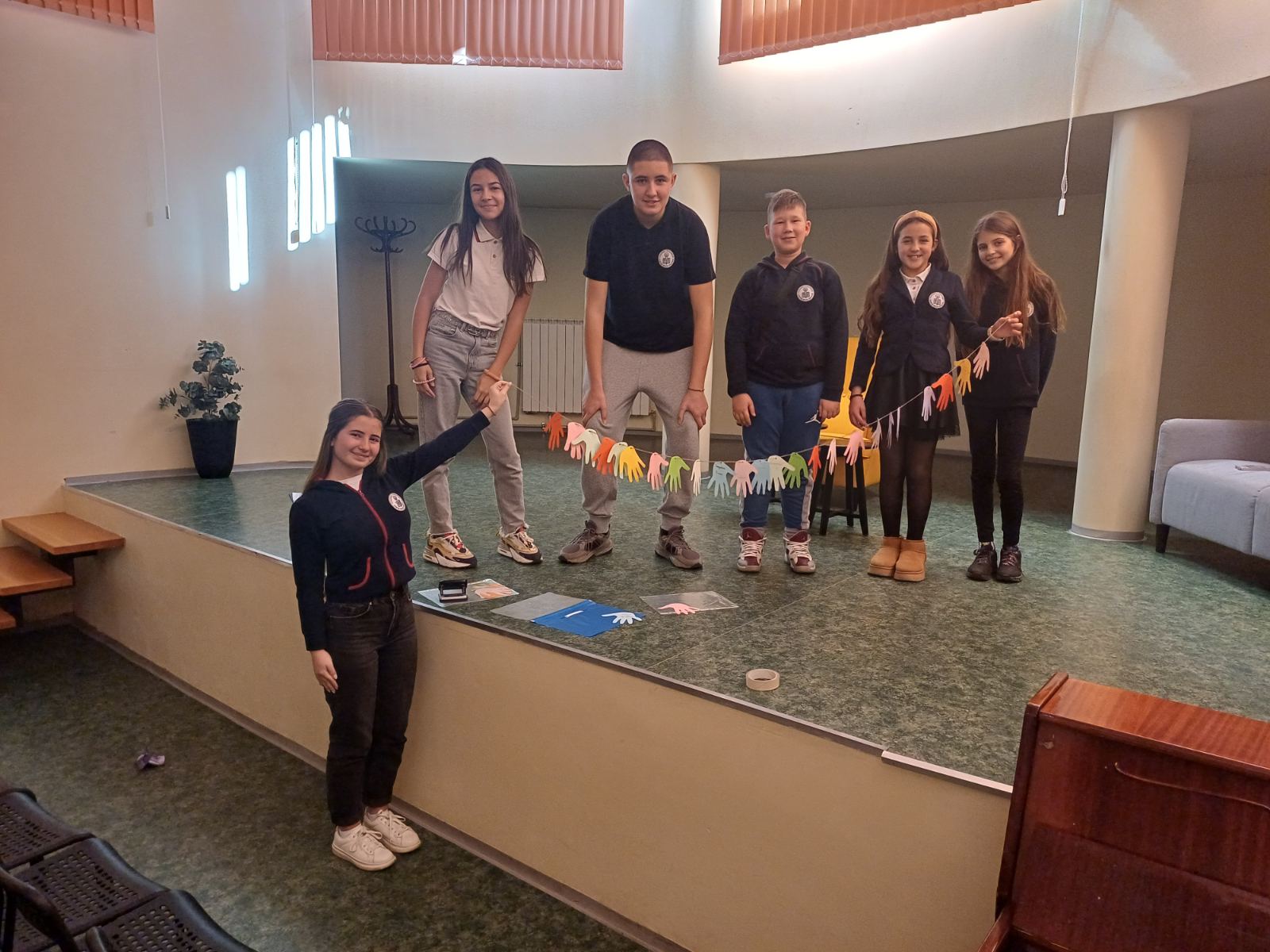 Учениците от пети, шести и седми клас след обсъждане избраха своята дума за толерантност и я записаха на цветни листове под формата на ръце, за да покажат, че различието не е слабост, а сила.