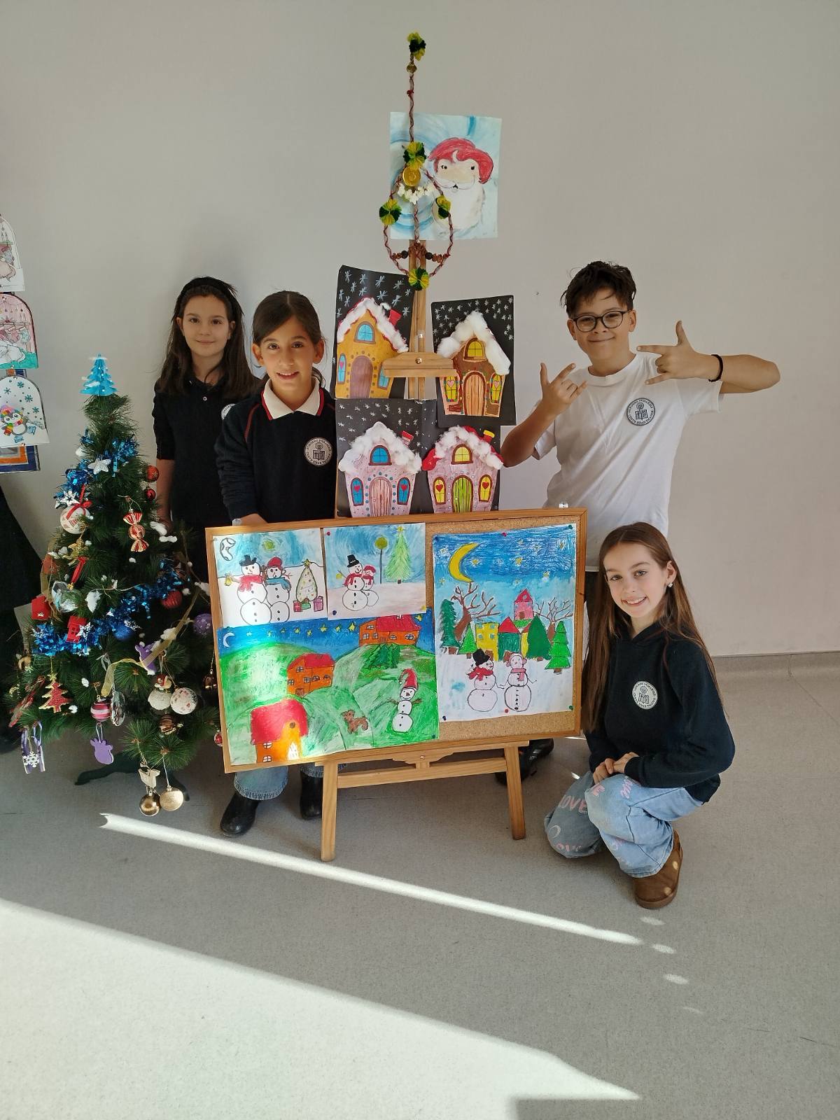 С изработените материали бе организирана изложба, чрез която третокласниците отправят своите благопожелания за здраве, щастие и доброта към всички за коледните и новогодишните празници.