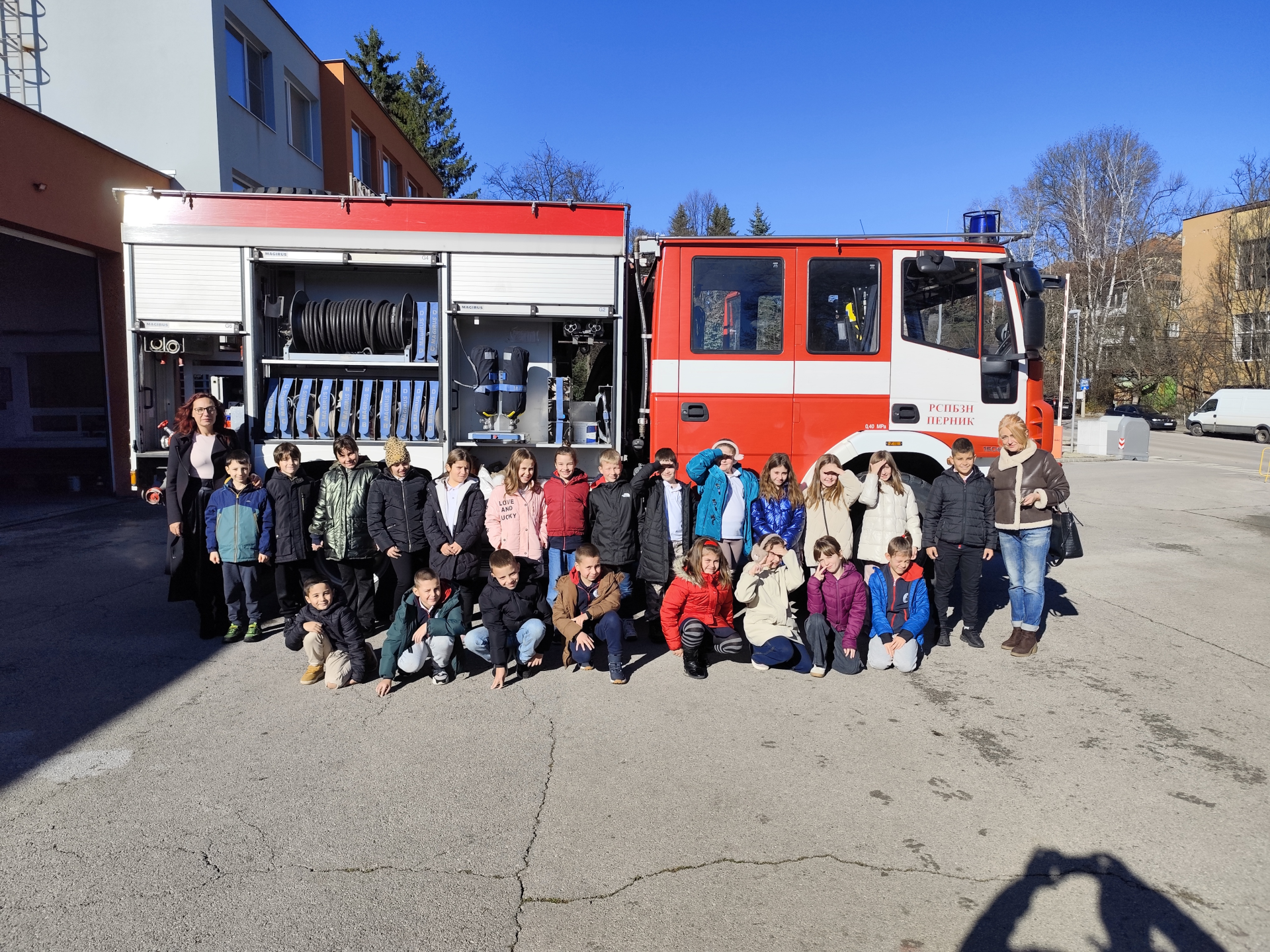 Учениците от втори клас посетиха пожарната в Перник и се запознаха с работата на пожарникарите. Те научиха важни правила за безопасност при пожар и как трябва да реагират в опасни ситуации.