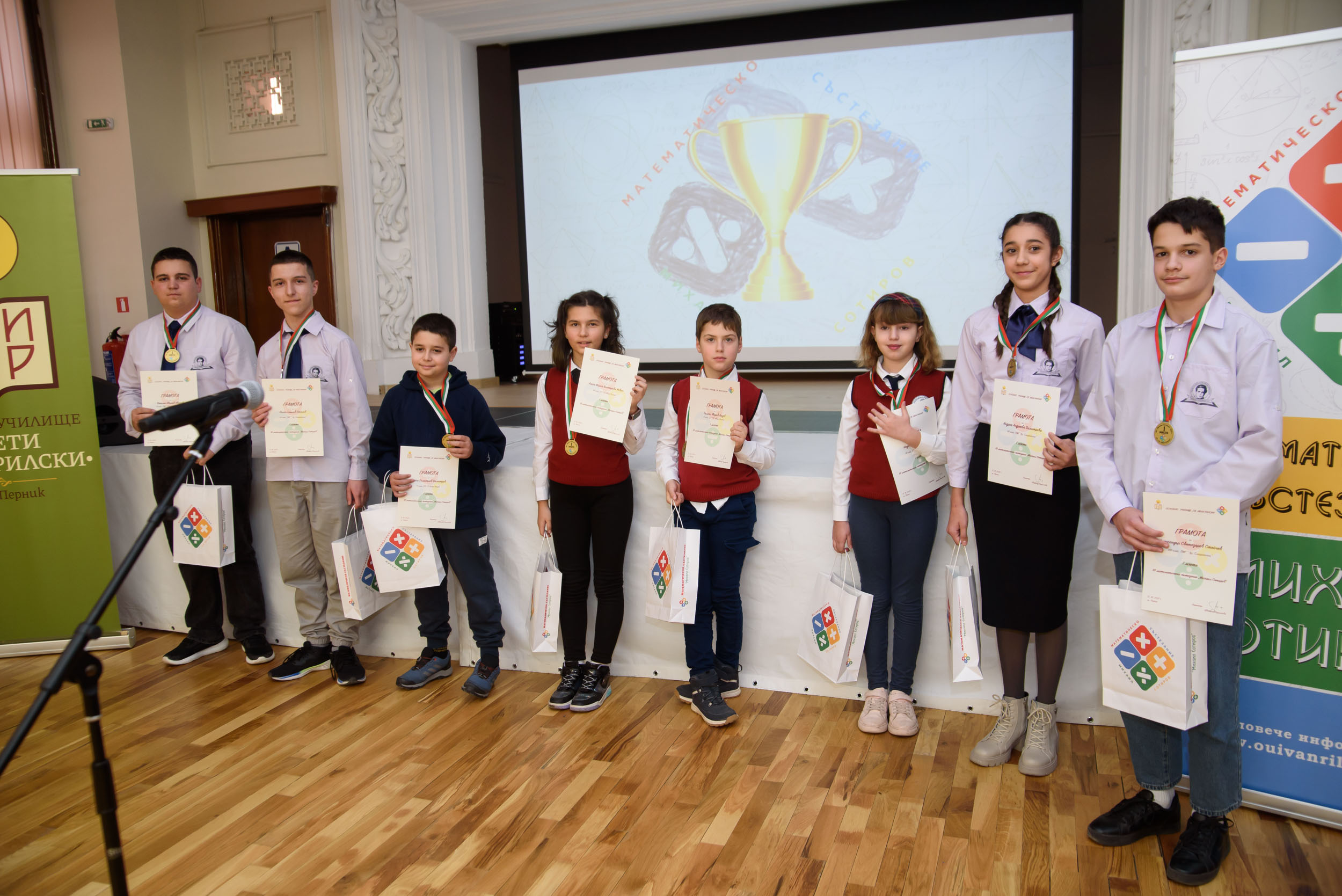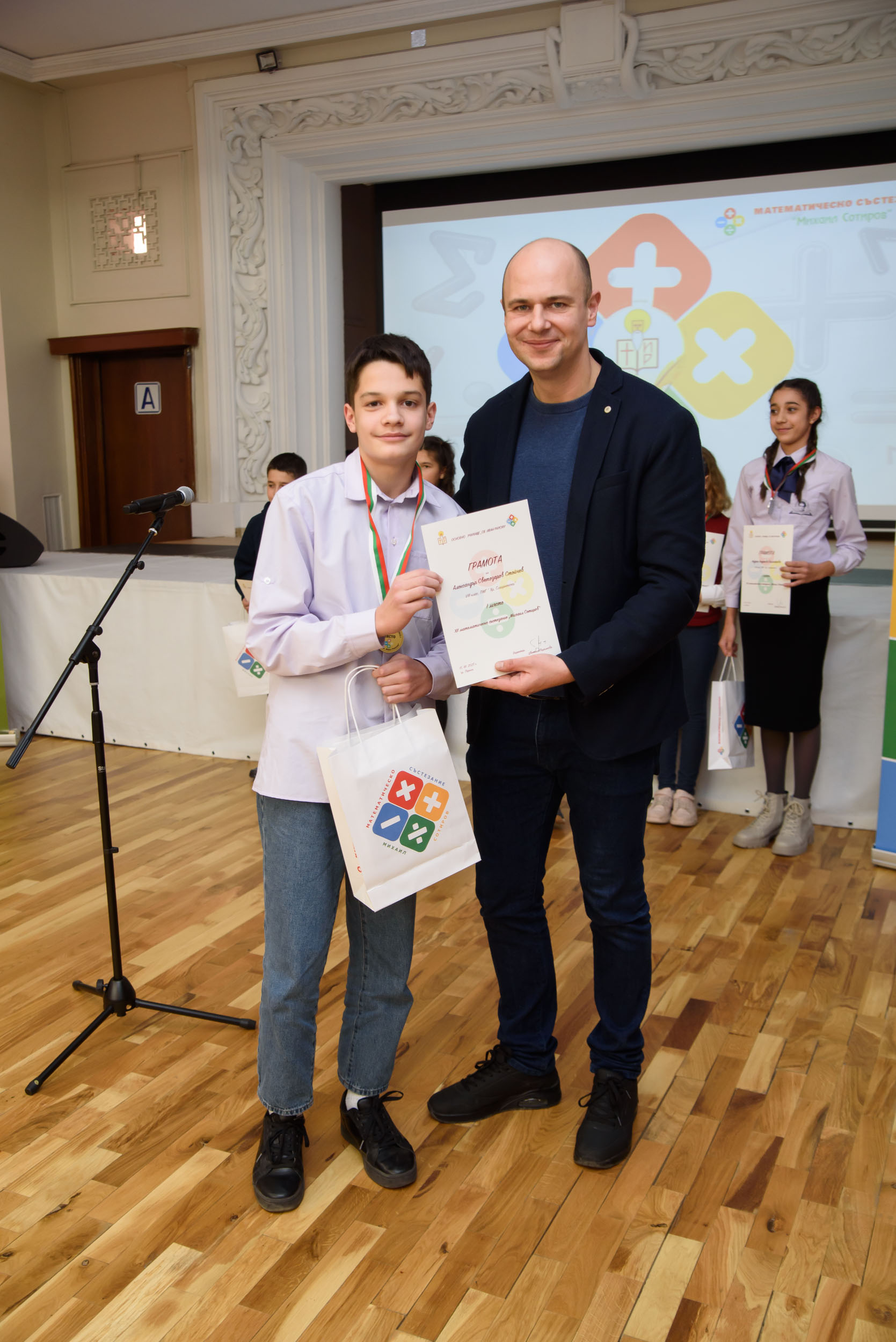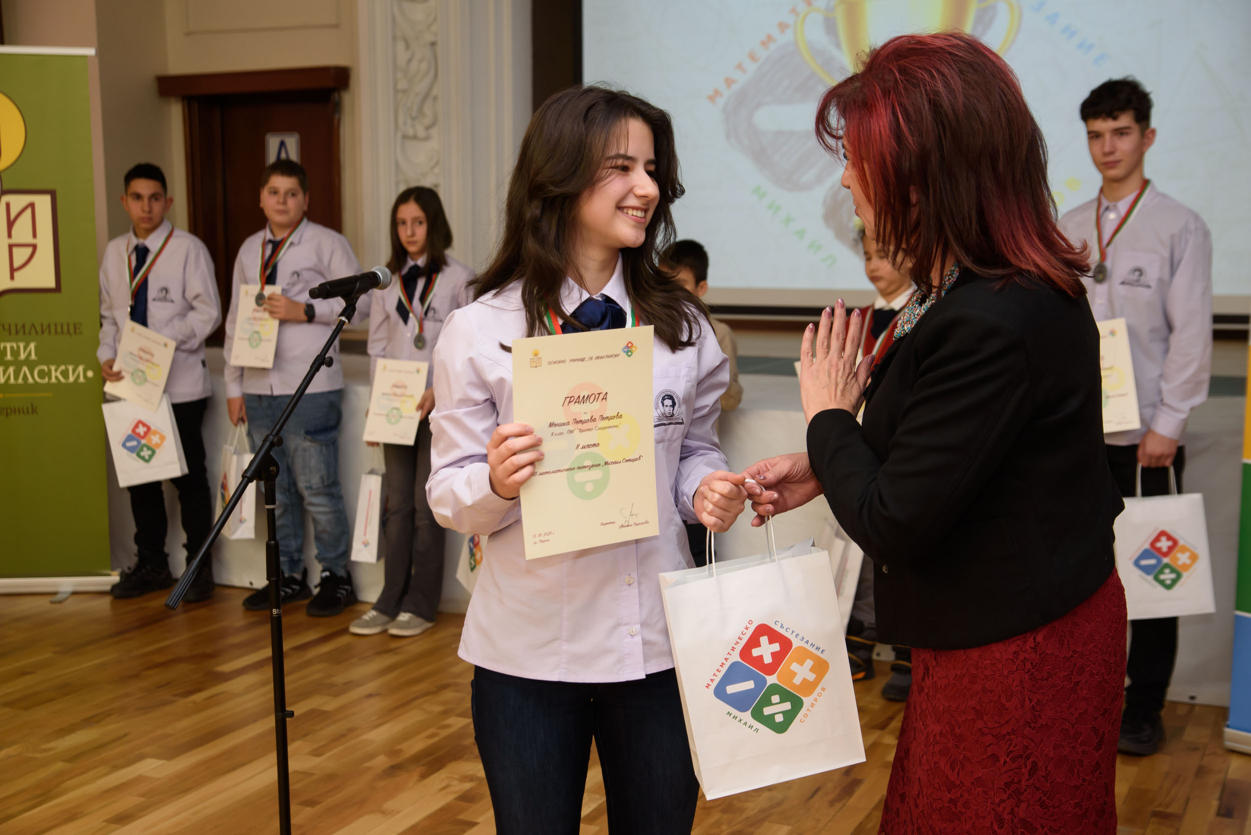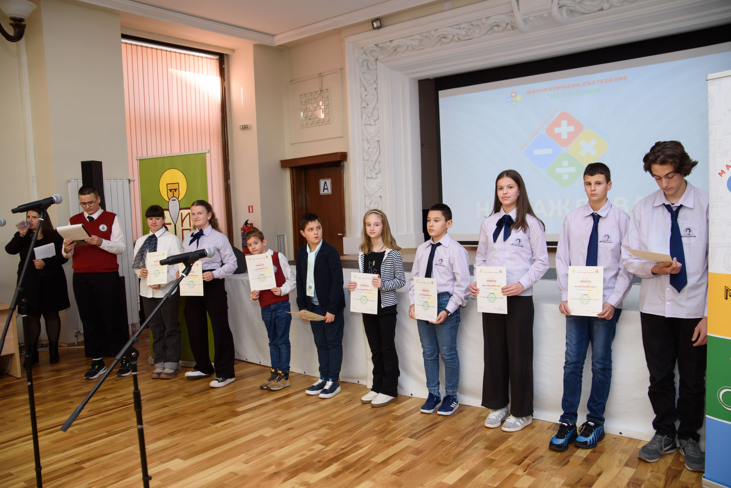 Отличени бяха 52 ученици от II до X клас – които избраха предизвикателството пред удобството и търсенето на знанието в готовите отговори. Класиралите се на първо, второ и трето място получиха медал, грамота и предметна награда от издателство “Клет”, а заелите четвърто и пето място – грамота. Всички участници ще получат електронни сертификати за участие – за тяхната смелост и кураж да се изправят пред това математическо предизвикателство.