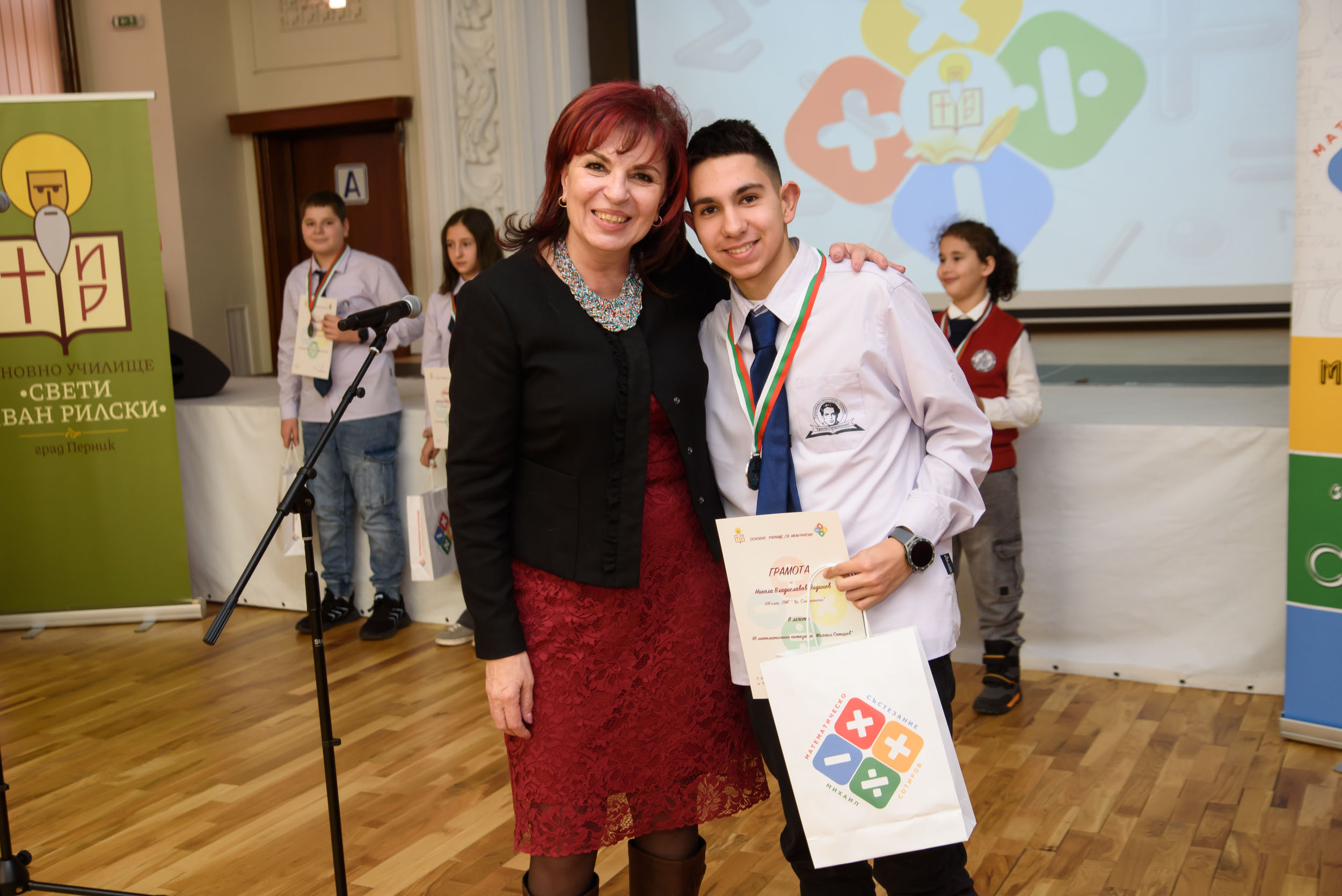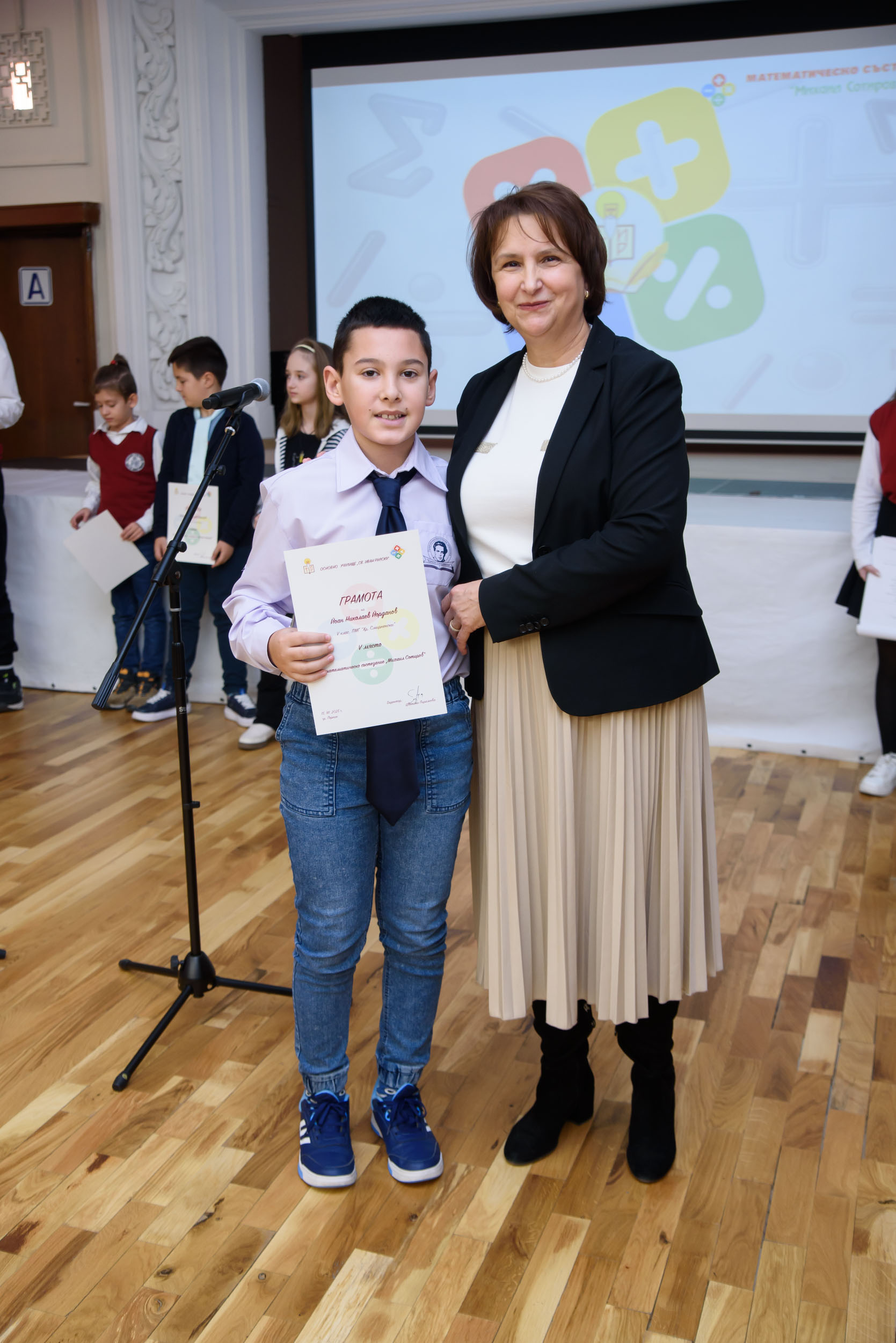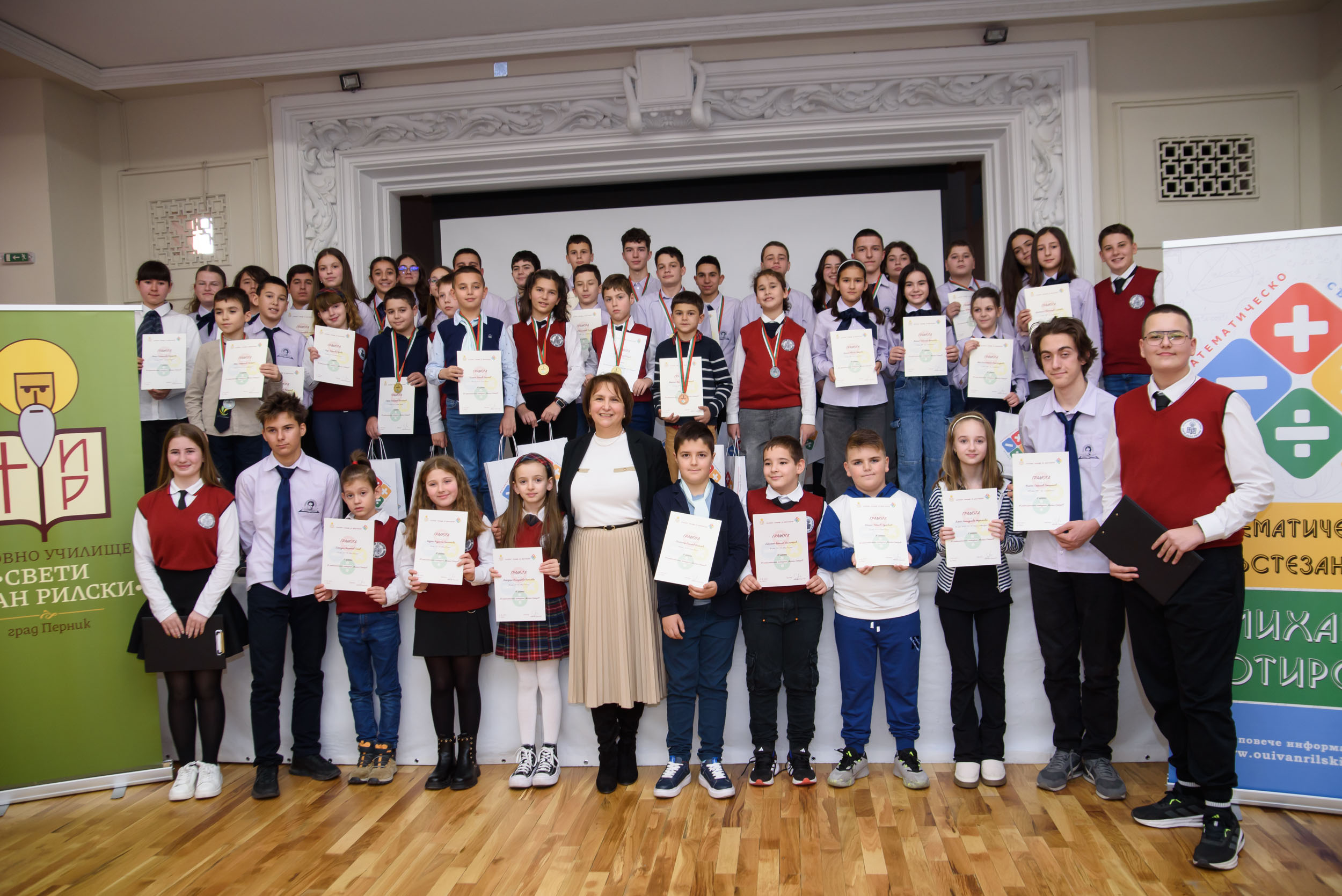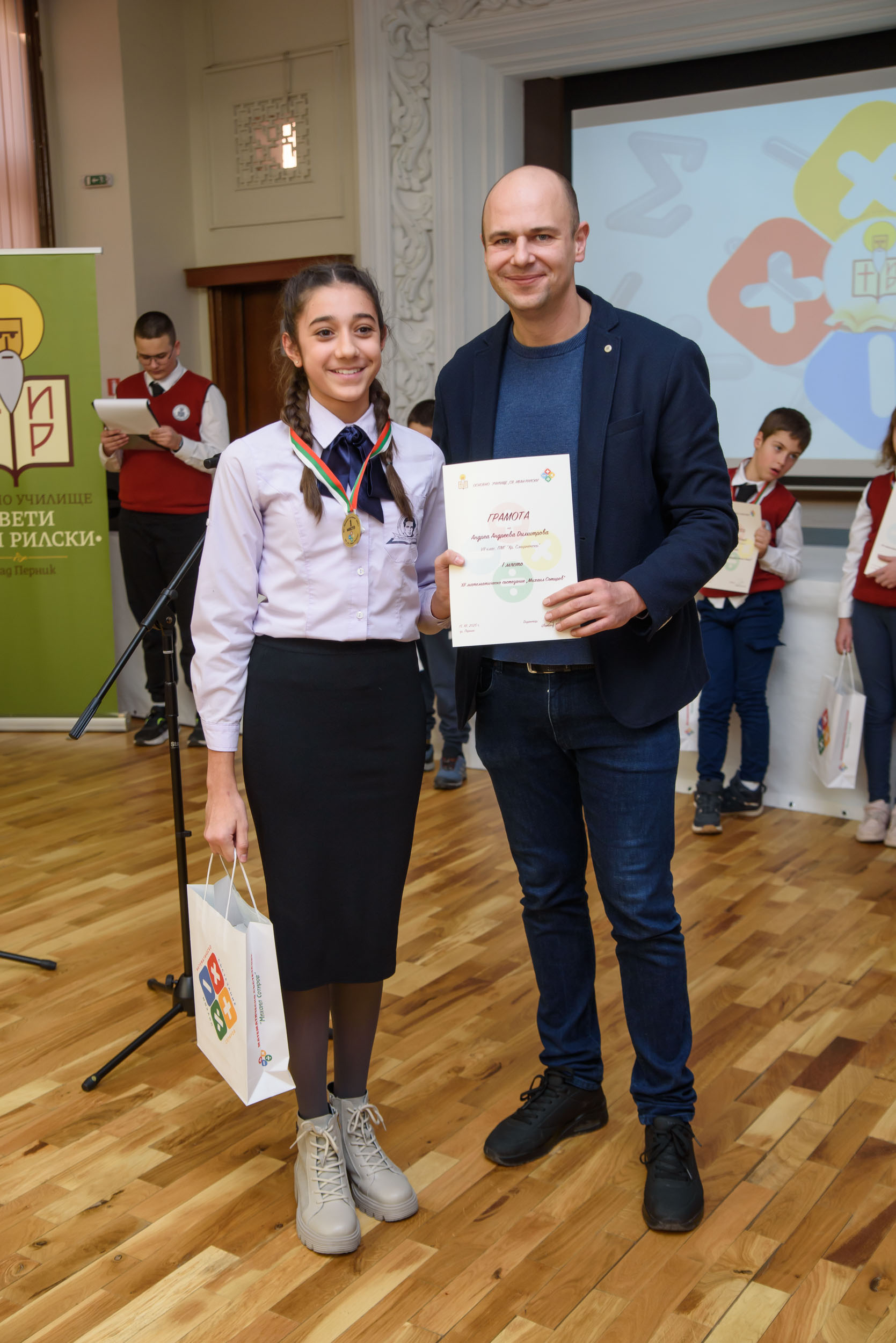 Отличени бяха 52 ученици от II до X клас – които избраха предизвикателството пред удобството и търсенето на знанието в готовите отговори. Класиралите се на първо, второ и трето място получиха медал, грамота и предметна награда от издателство “Клет”, а заелите четвърто и пето място – грамота. Всички участници ще получат електронни сертификати за участие – за тяхната смелост и кураж да се изправят пред това математическо предизвикателство.
