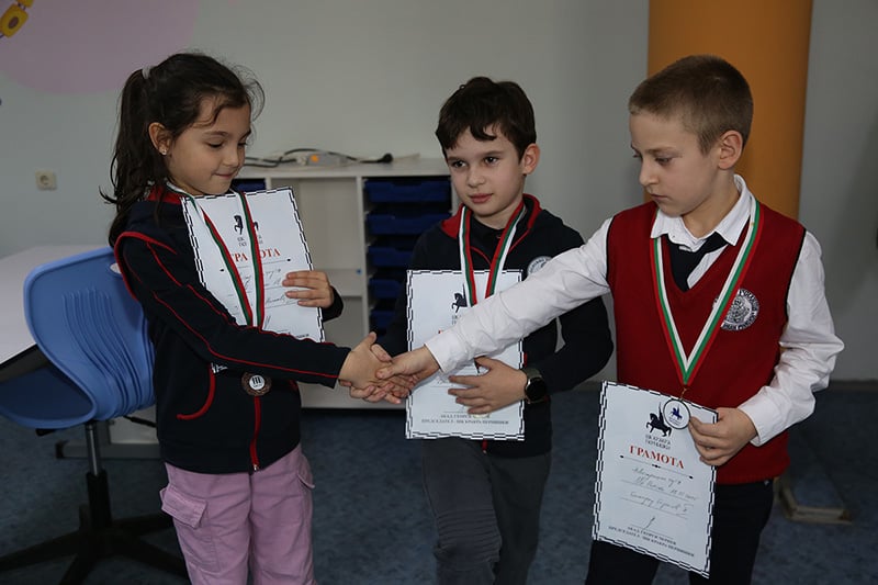 Г-жа Пиралкова, директор на училището, поздрави победителите и всички деца, които участваха в турнира. Тя връчи медали и грамоти, а победителят получи и торта!