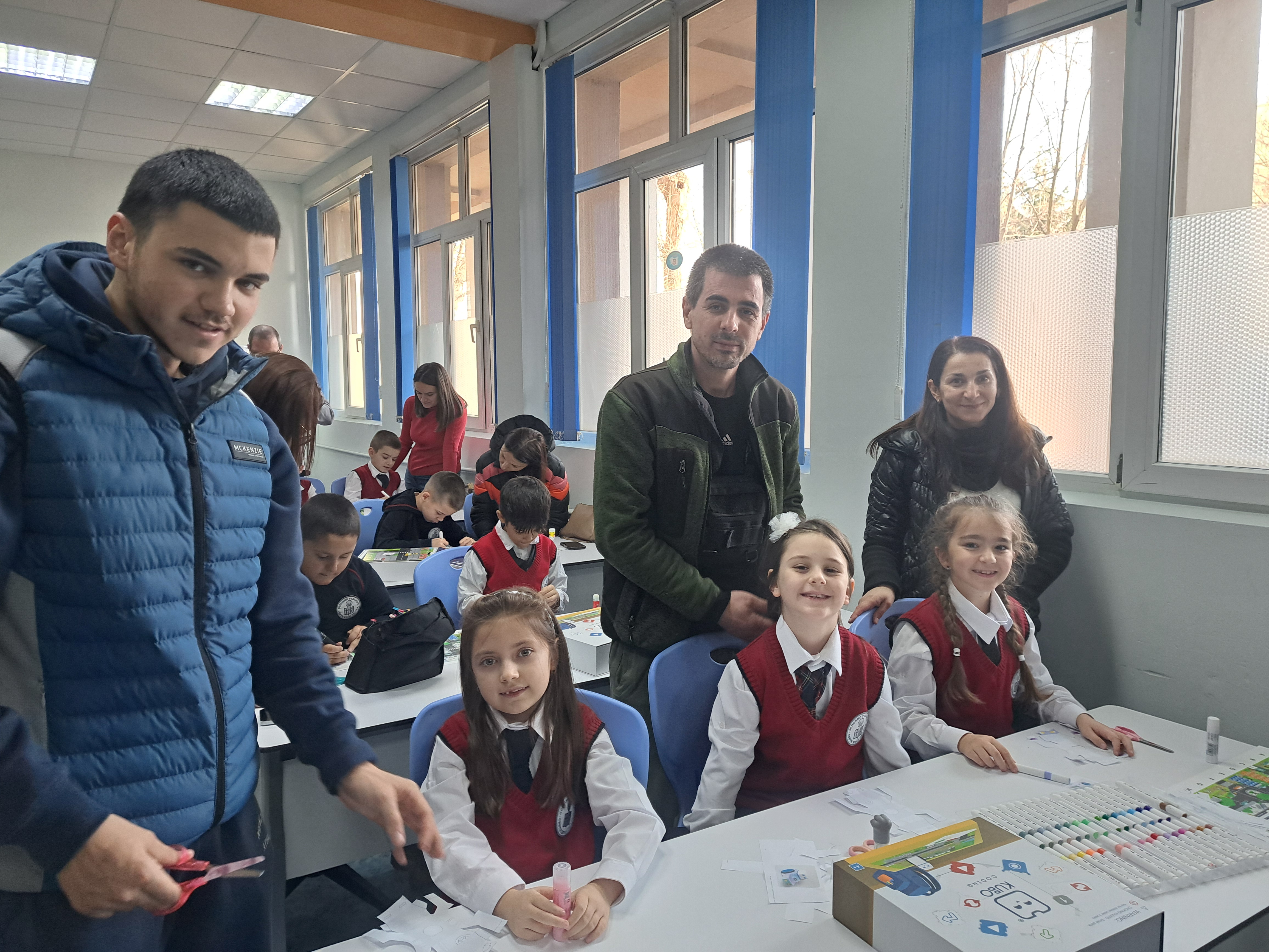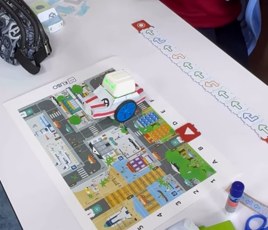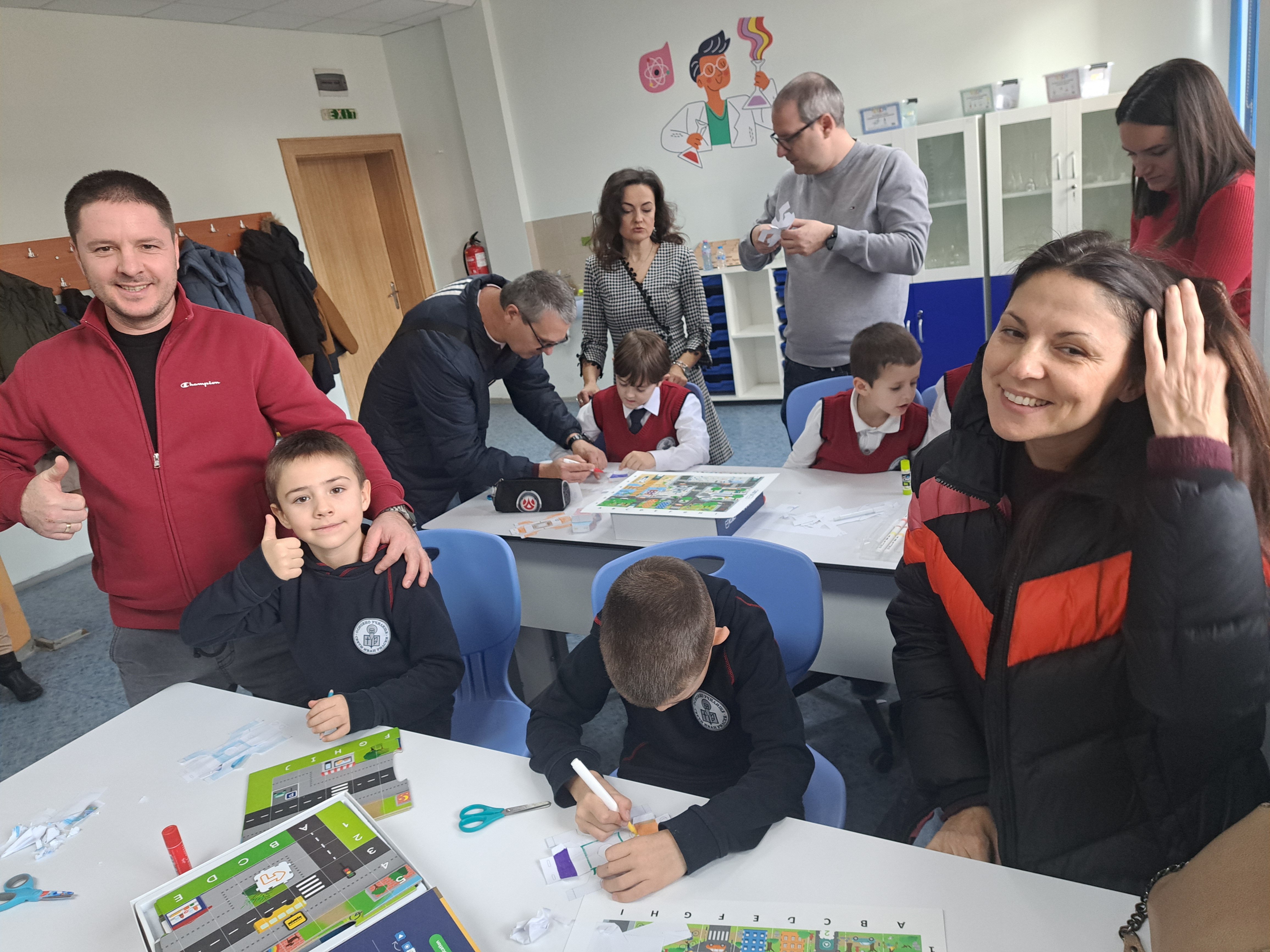 С много старание и прецизност, нашите най-малки ученици и техните родители изрязваха, оцветяваха, лепяха и написаха код, с който любимият робот да стигне до летището за коледното си пътешествие.