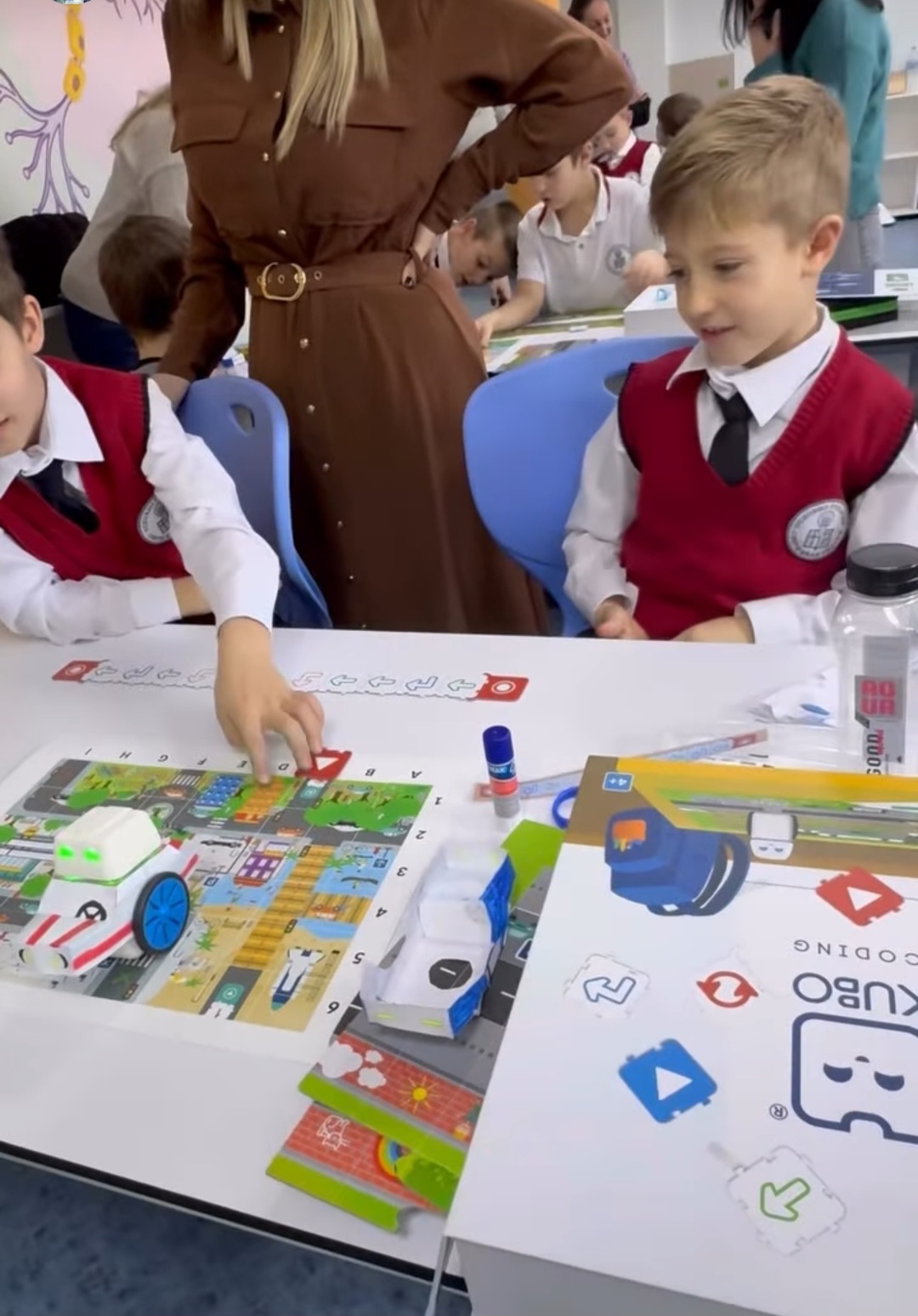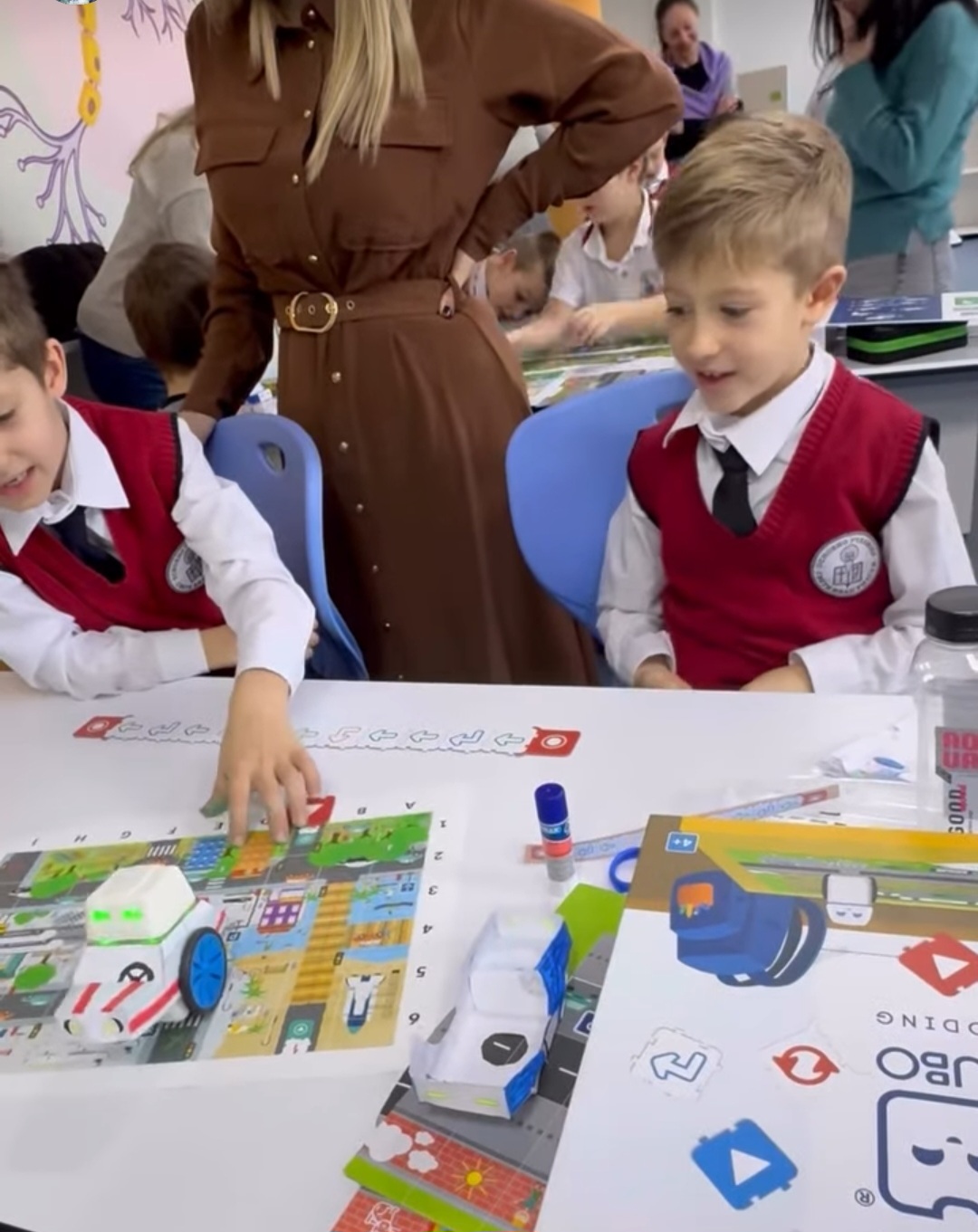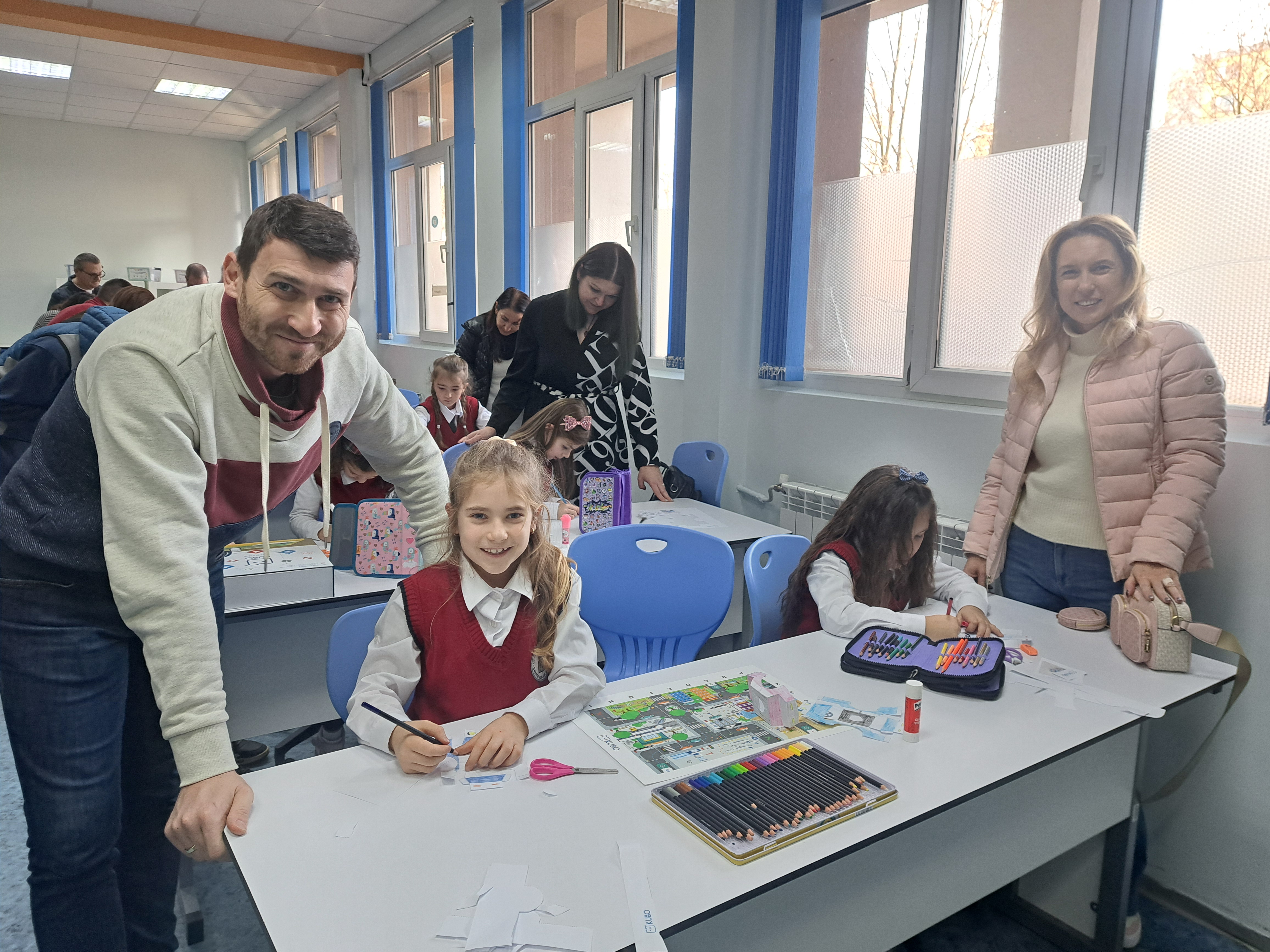 С много старание и прецизност, нашите най-малки ученици и техните родители изрязваха, оцветяваха, лепяха и написаха код, с който любимият робот да стигне до летището за коледното си пътешествие.