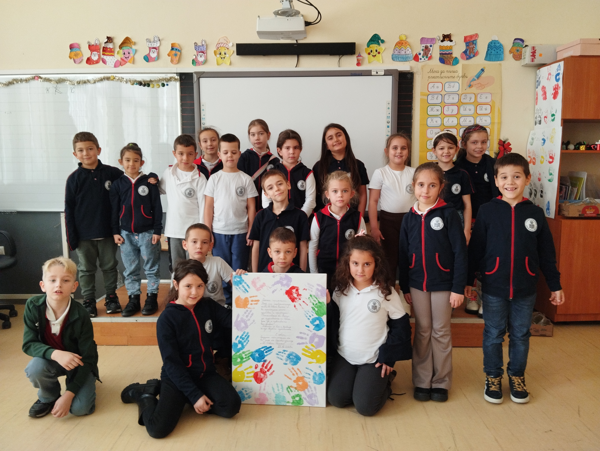 В духа на съпричастност и човечност учениците от I г клас на нашето училище се включиха в трогателна инициатива, насочена към деца, които в момента се лекуват в болница. С много старание, усмивки и детска искреност първокласниците създадоха кратко послание, изпълнено с обич, кураж и надежда. В своите думи те пожелаха на малките пациенти бързо оздравяване, смелост и повече поводи за усмивка. Посланието беше придружено от цветно пано – символи на надеждата и вярата в по-добрите дни.