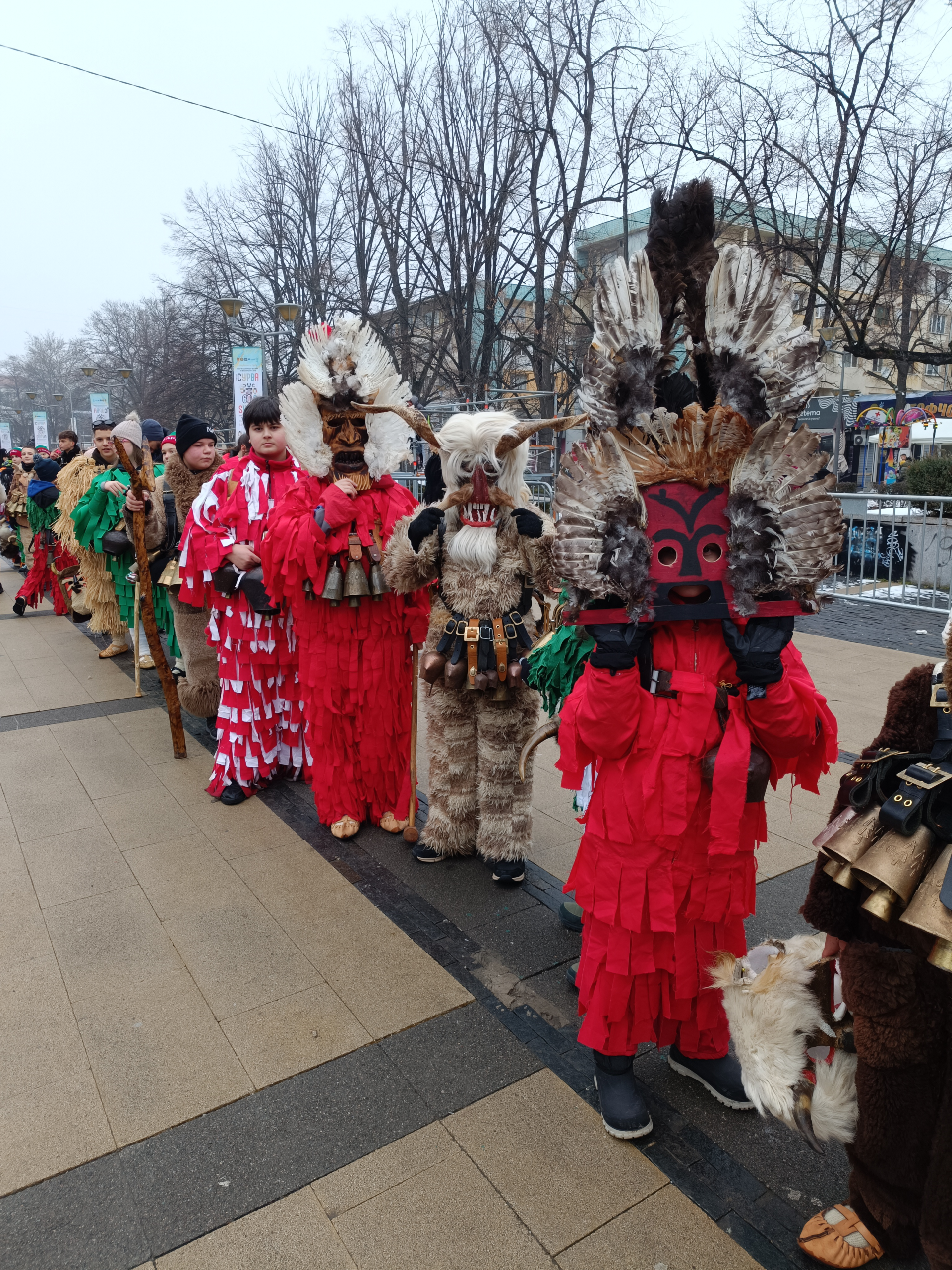 Около 100 ученици от I до VII клас с желание участваха в младежкото маскарадно дефиле и с гордост представиха училището ни. Сред пъстрото множество оживяха образите на тъпанджии, мечкар и мечки, девойки в красиви народни носии, болюкбашии, както и многобройни кукери, облечени в кожи, с внушителни ръчно изработени ликове, тежки чанове и хлопатари.