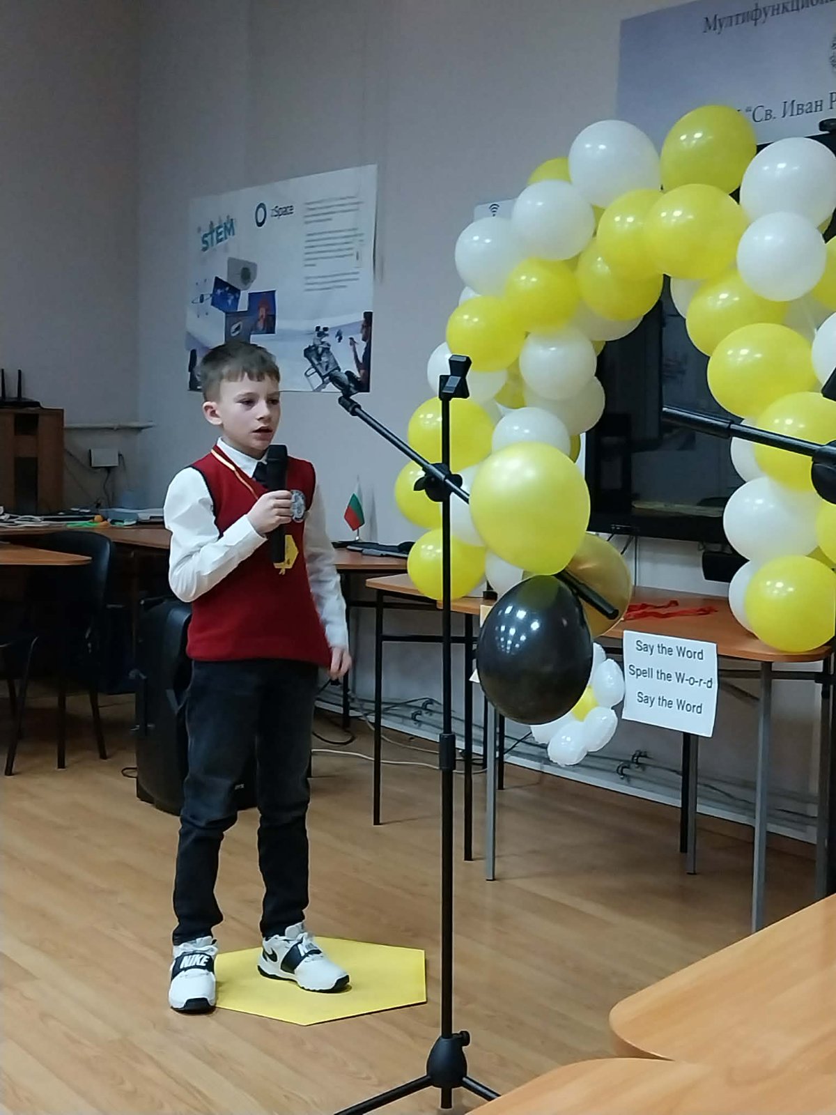 Училищният шампион в Spelling Bee Junior е Ерик Найденов Николов, ученик от IVа клас с преподавател Десислава Николова. Ерик спечели в оспорваната надпревара като победи , Станислав Станиславов Петров ученик от IV б клас.