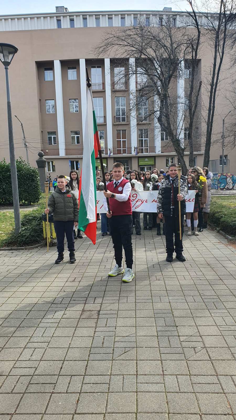 Петокласниците се включиха във факелно шествие и поднесоха цветя пред бюст-паметника в центъра на град Перник, вълнуващ момент, изпълнен с уважение и признателност.