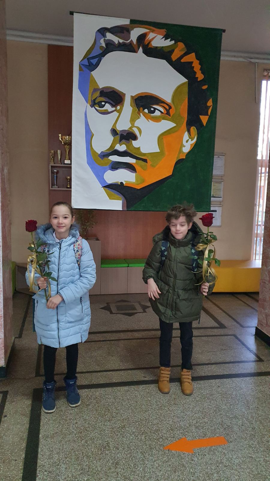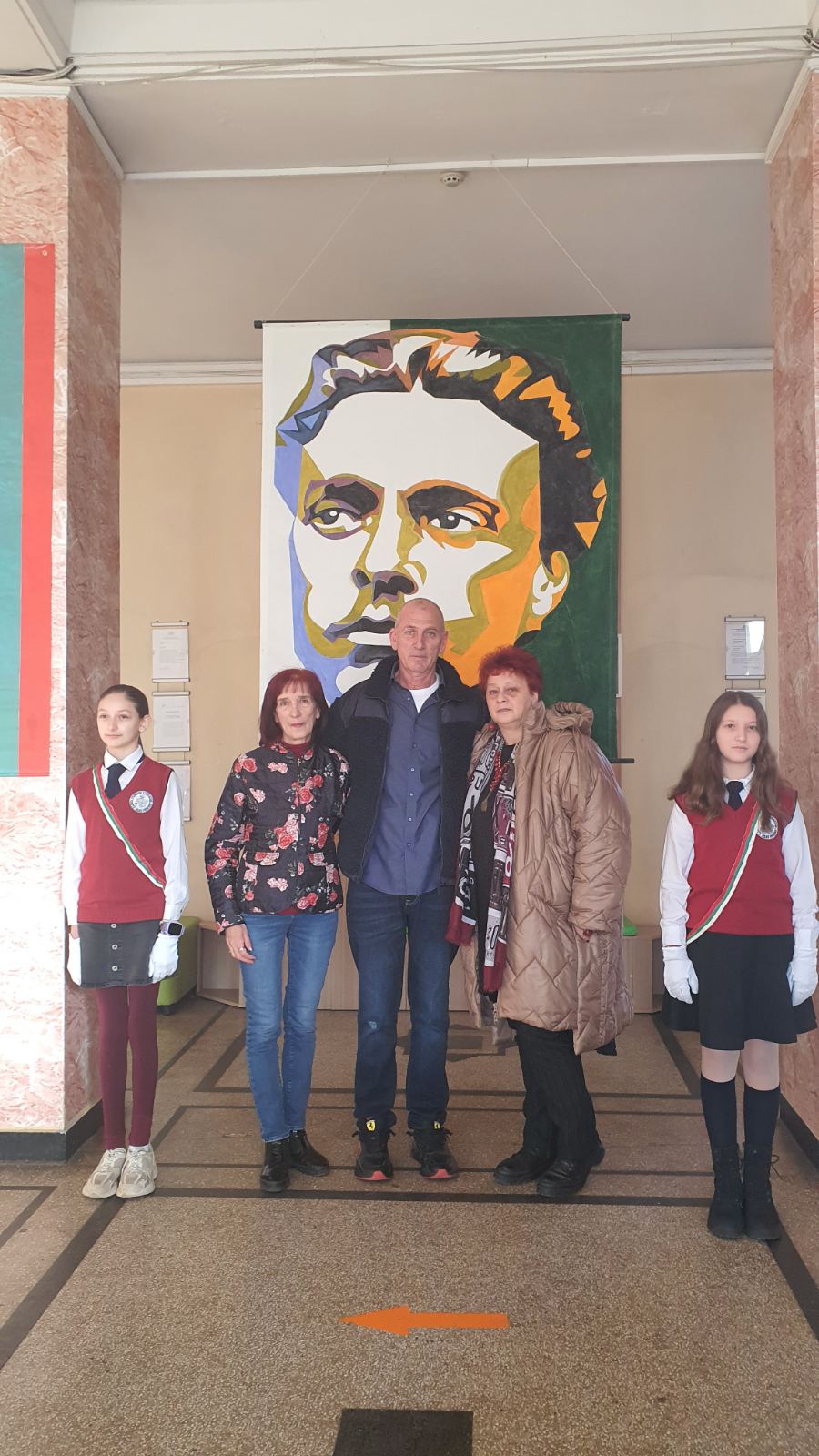 Шестокласниците застанаха на почетен пост пред лика на Апостола, отдавайки тиха и достойна почит.