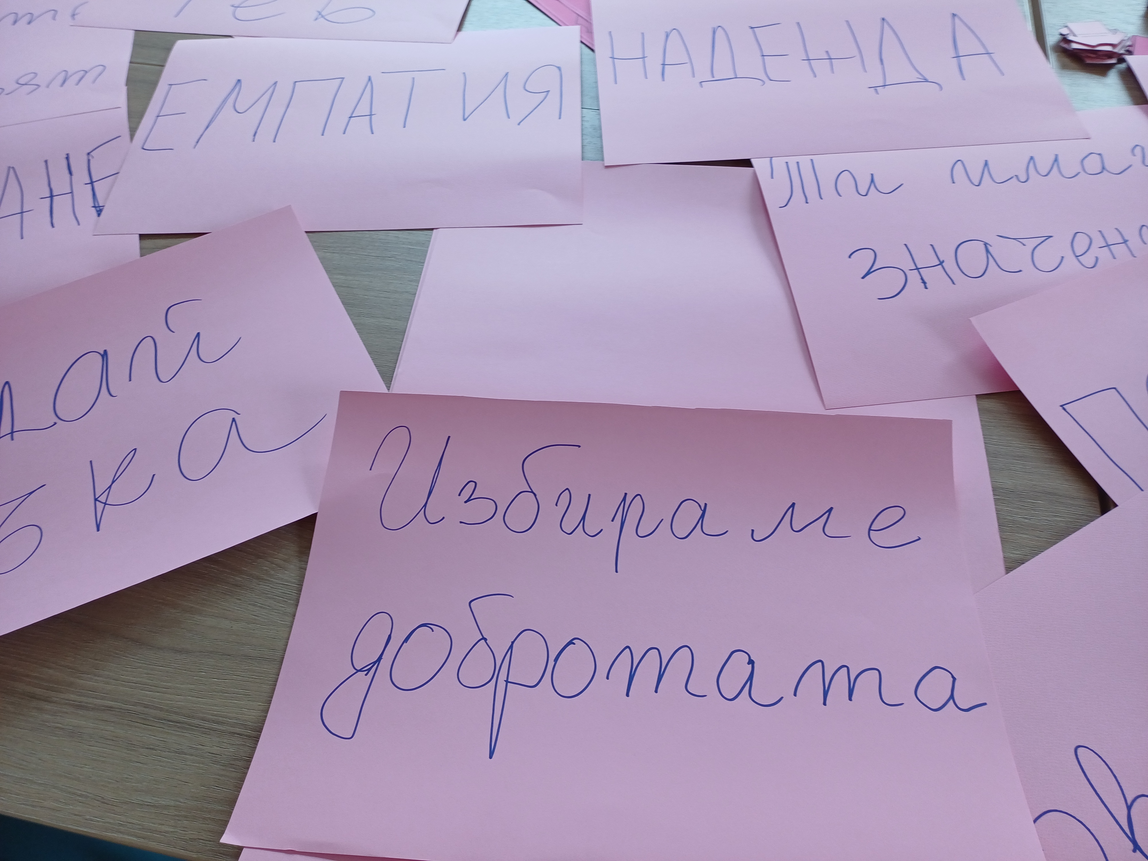 Кулминация на инициативата бе включването на представители от всеки клас, които довършиха изречението: „ЩЕ КАЖА СТОП НА НАСИЛИЕТО, ЗАЩОТО…“. Техните отговори изпълниха училищното пространство с надежда, смелост и отговорност.