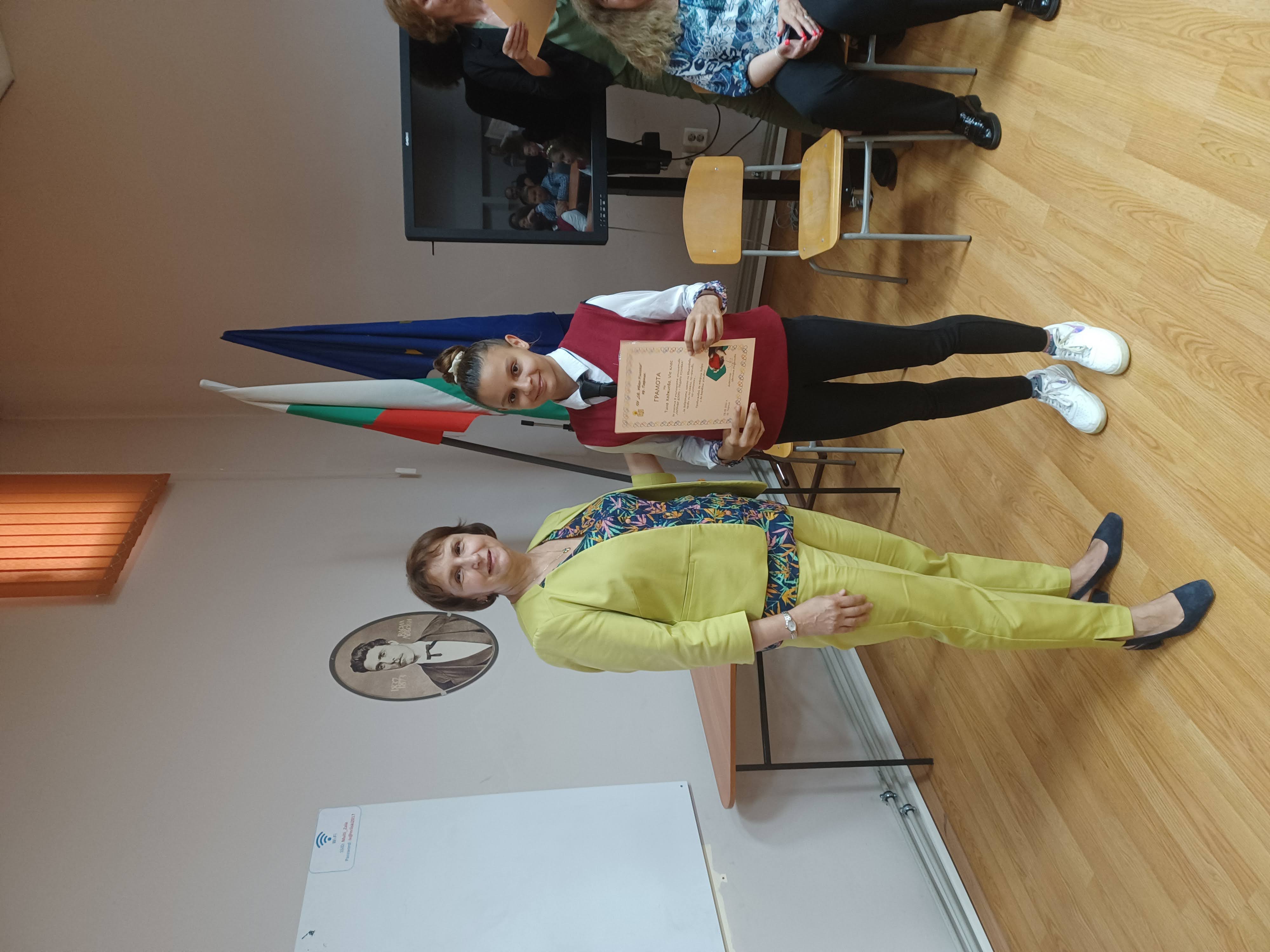 Директорът на училището – г-жа Цветана Пиралкова връчи грамоти на всички участници и обяви наградата за всички тях – еднодневна екскурзия с посещение на зоокът „Алис“-с. Лесковец.