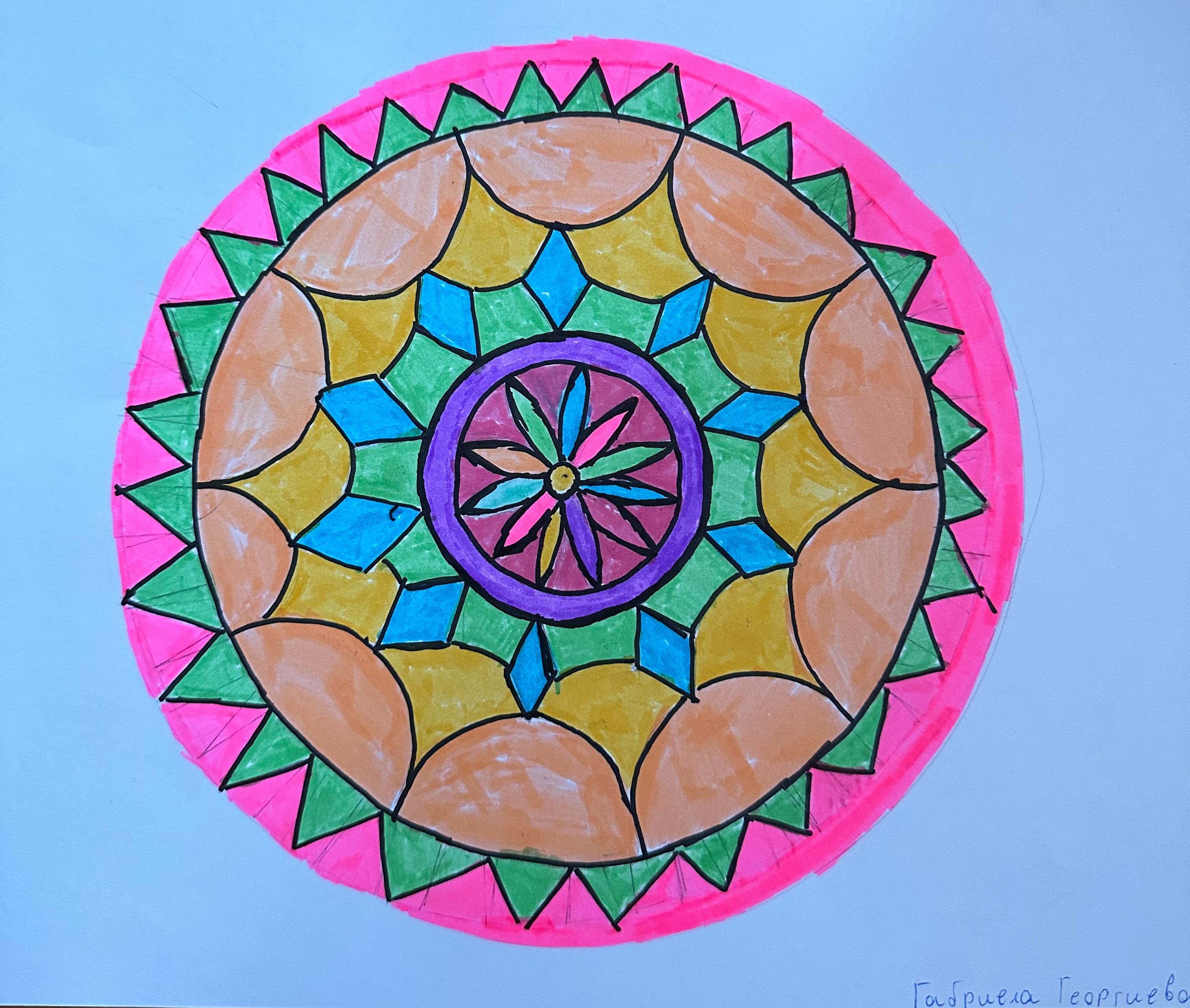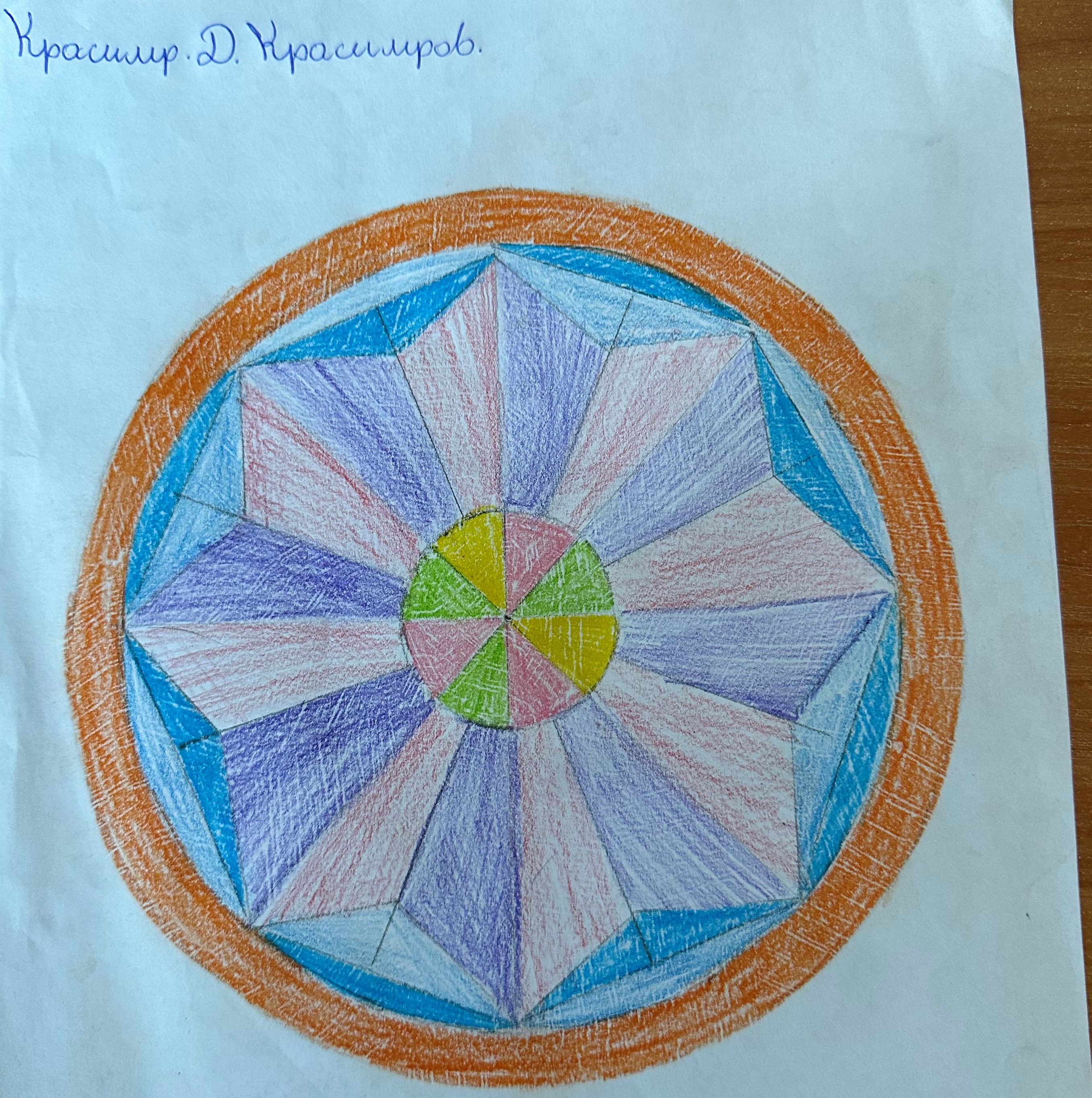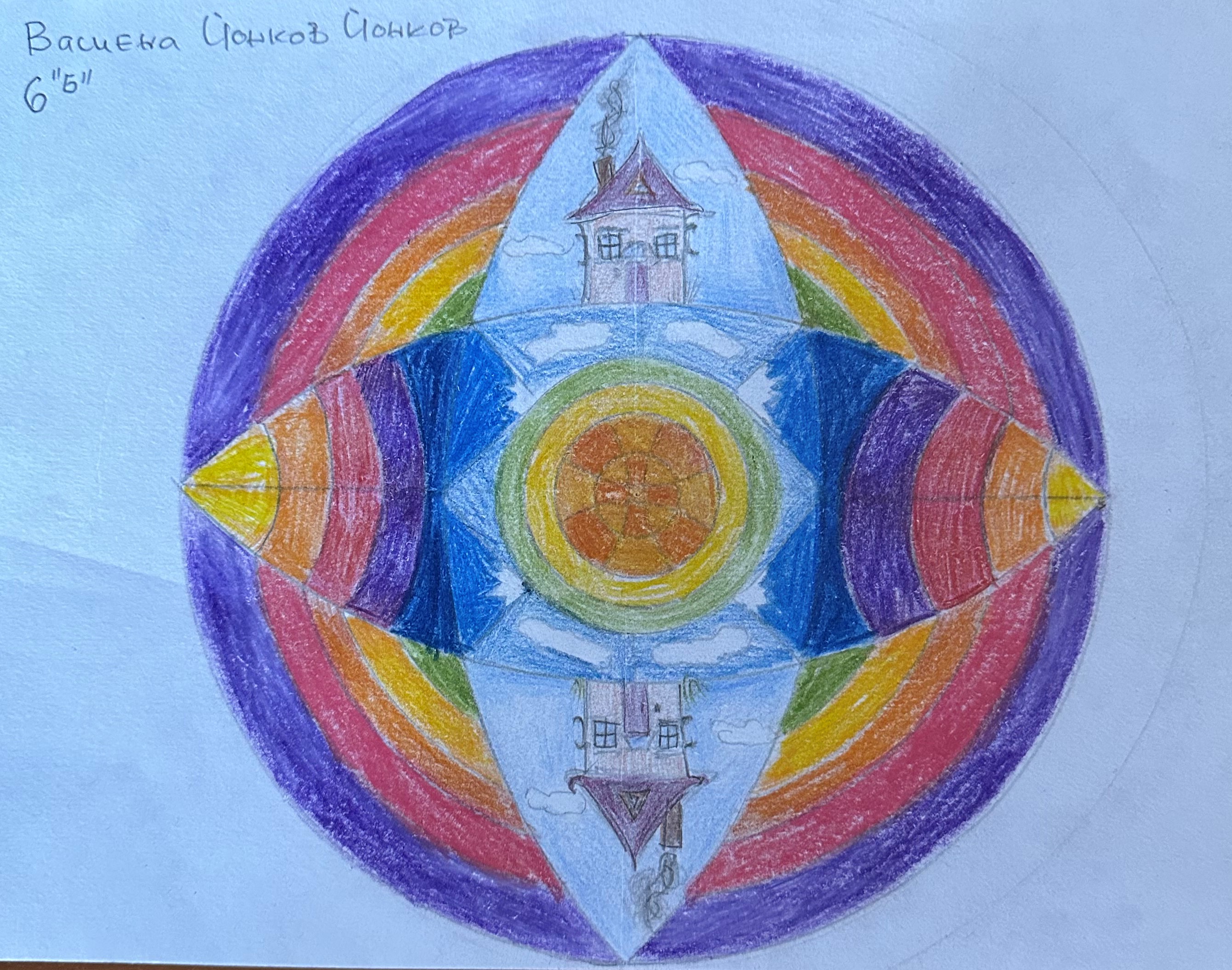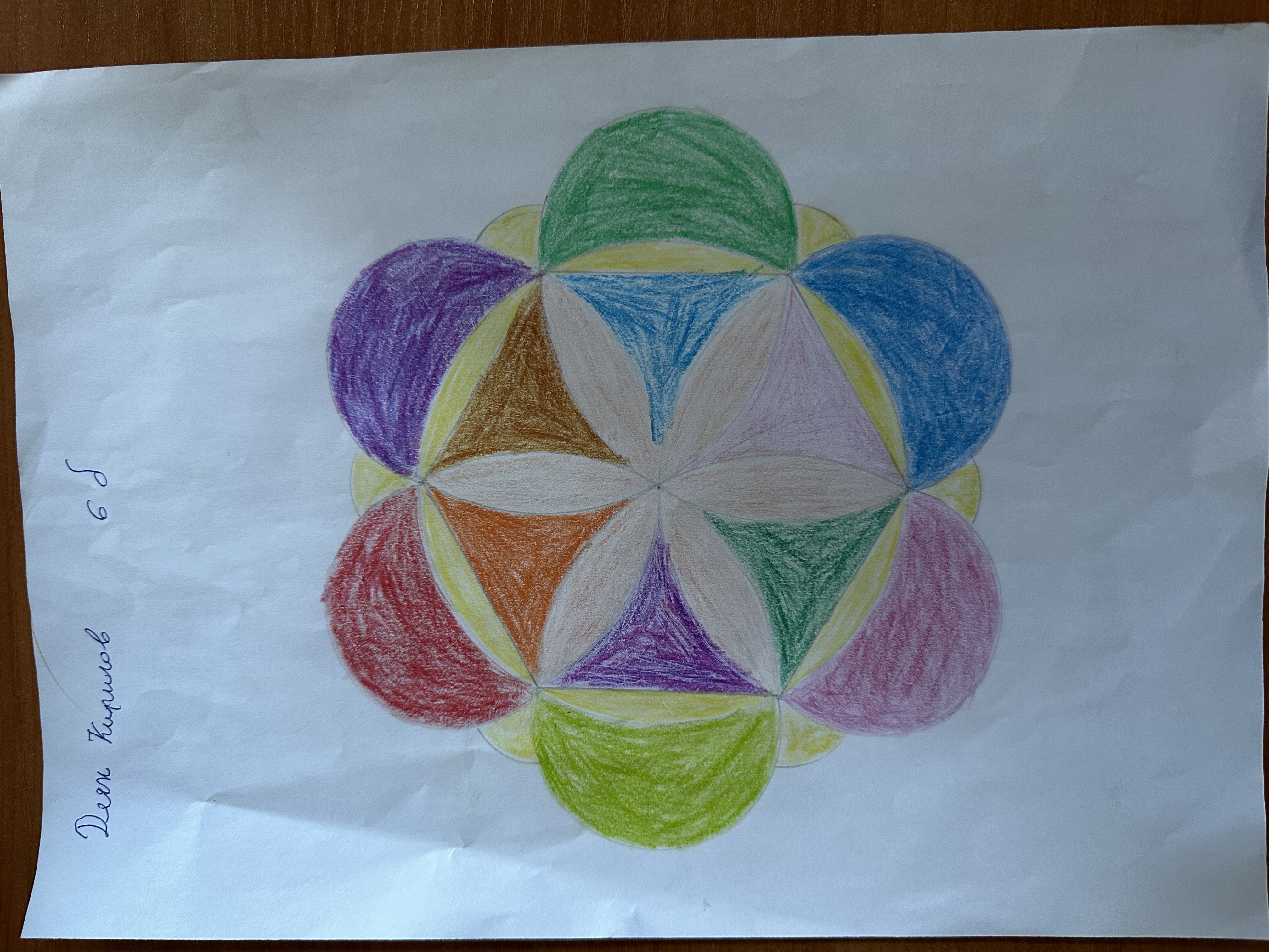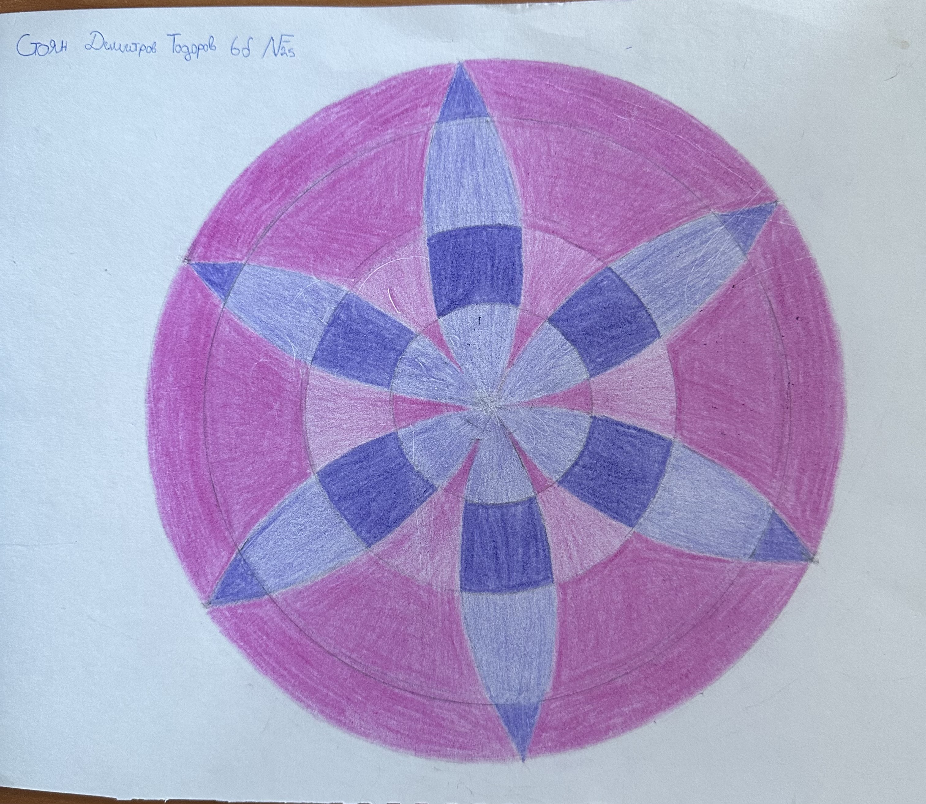 Учениците от 6 б клас в час по математика ИУЧ, приложиха на практика наученото по математика за чертане на правилен многоъгълник, сектор, централен ъгъл и направиха затворена композиция в кръг, използвайки и наученото в часовете по изобразително изкуство тази година за комбиниране на цветовете.