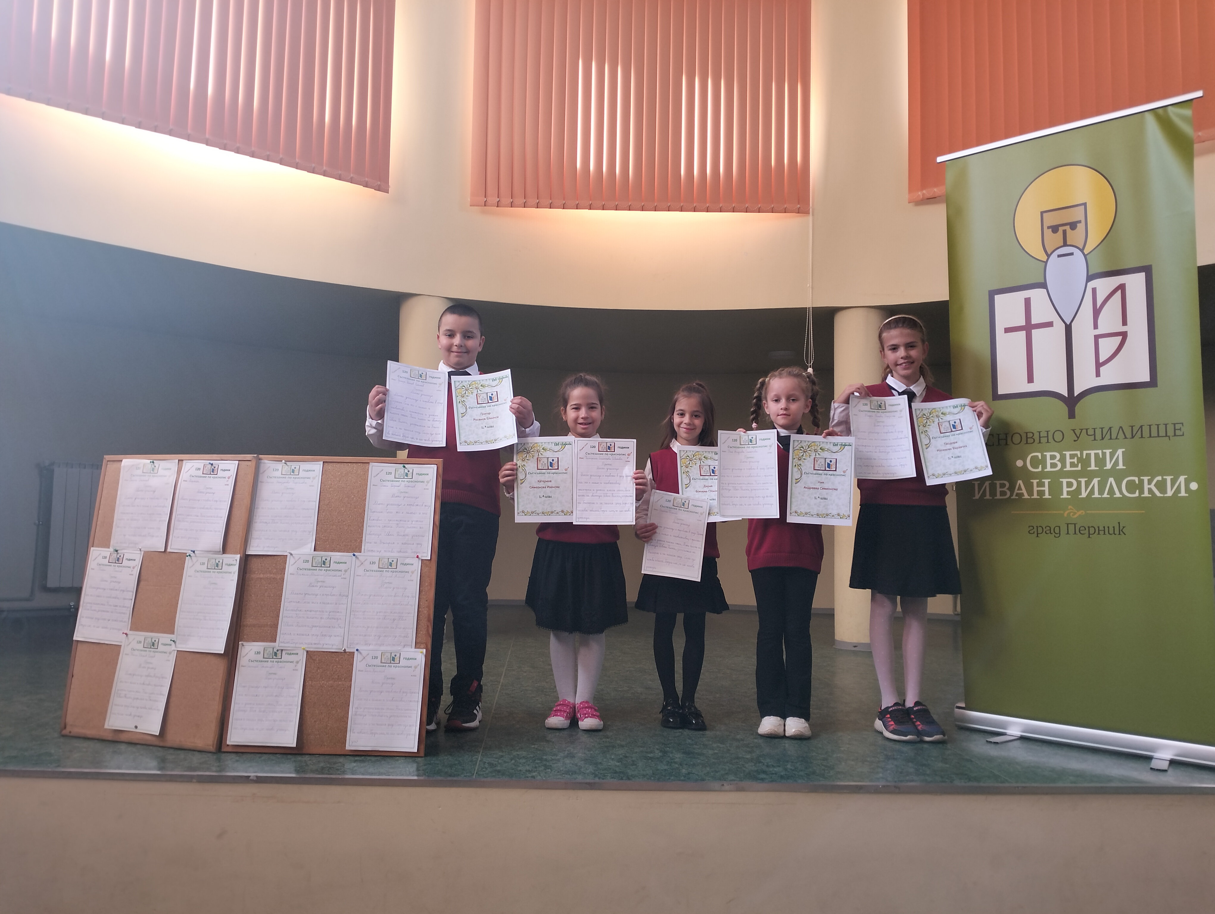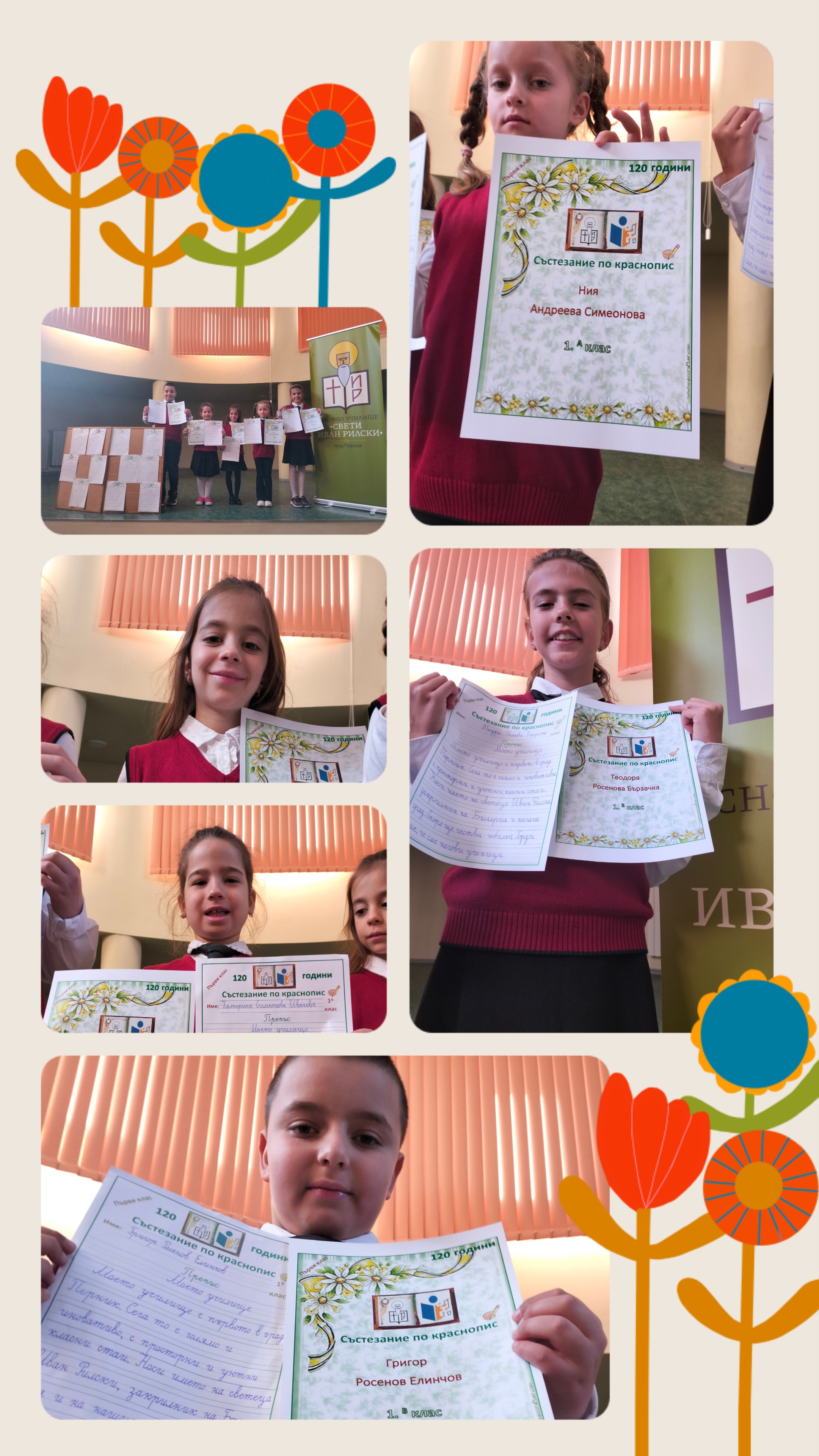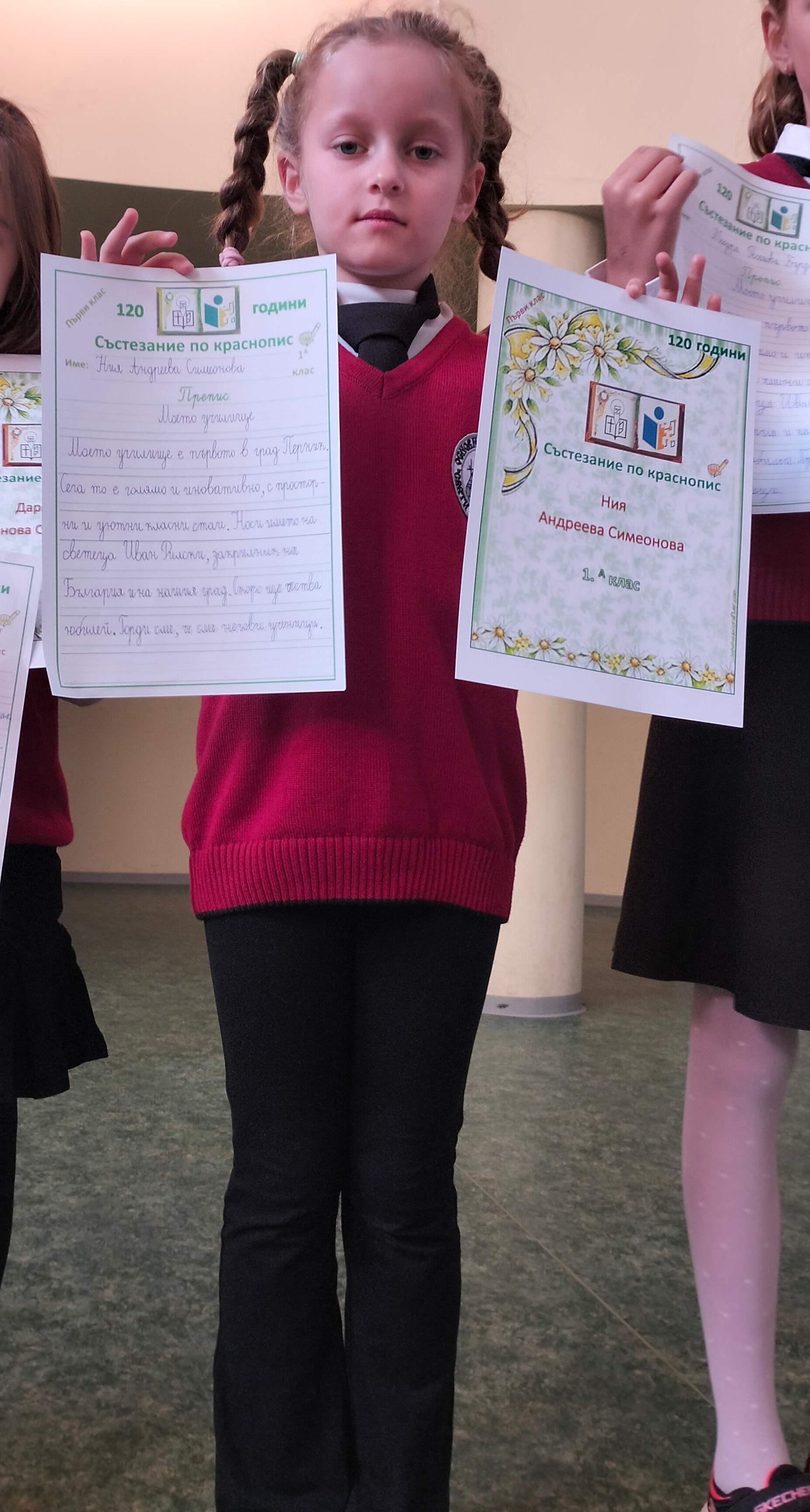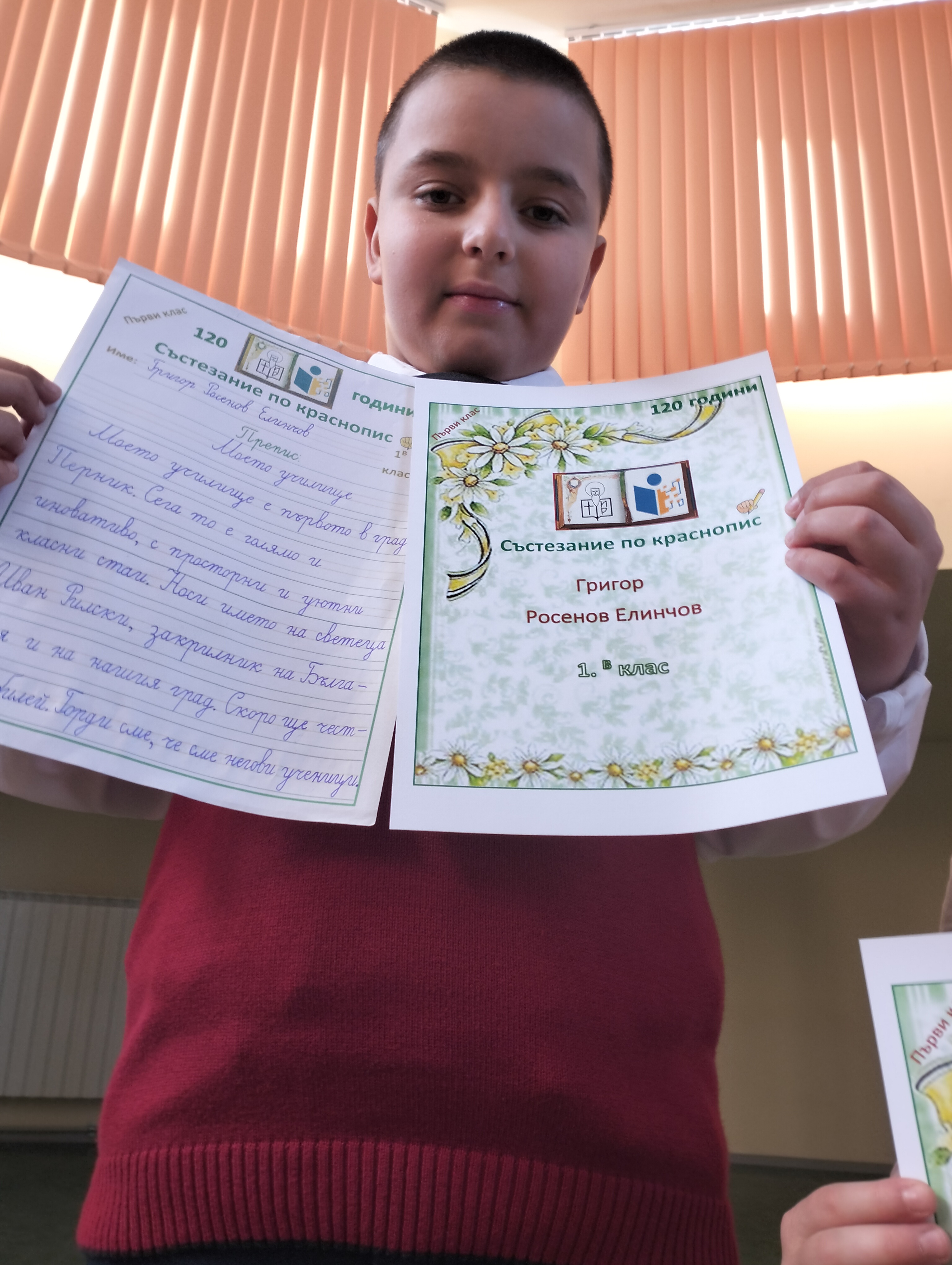 В чест на 120 - годишнината на училището първокласниците се състезаваха в красиво писане. Всички работеха с ентусиазъм.