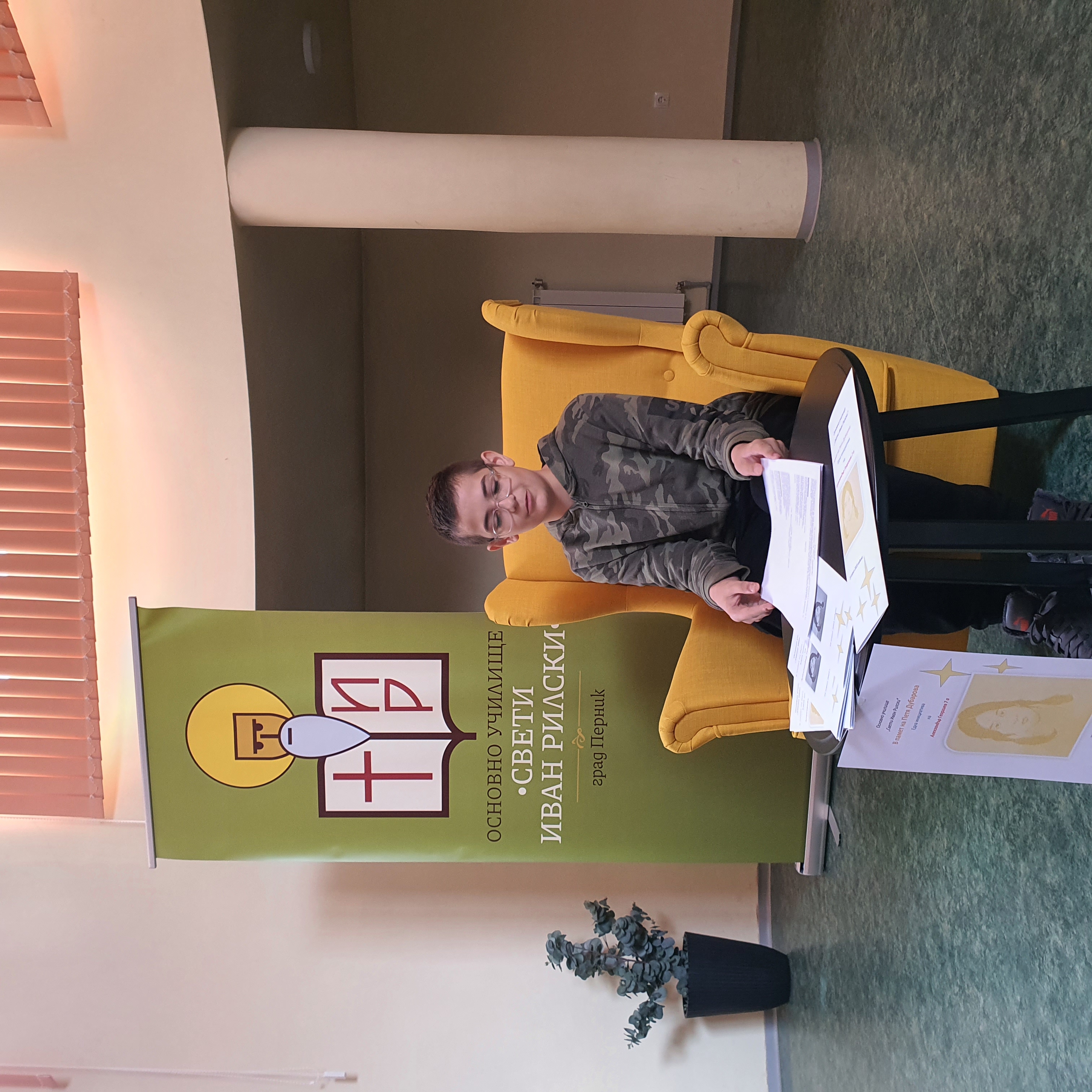 По инициатива на Алекзандър Георгиев от 7а клас в училище се състоя събитие, посветено на 61-та година от нейното рождение. Алекзандър, познат с множеството си таланти и с участията си в почти всички училищни инициативи, представи текста на своята приеса, посветена на момичето с незабравимите и силно въздействащи стихове. Със своя текст Алекзандър развълнува съуениците си и гостите на събитието и успя да създаде атмосфера, достойна за големия талант на българската поезия.