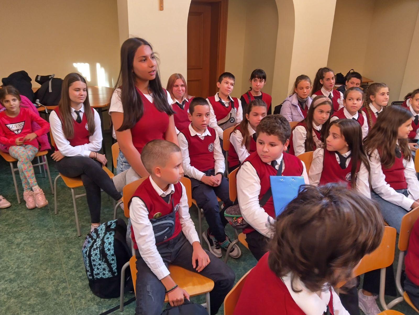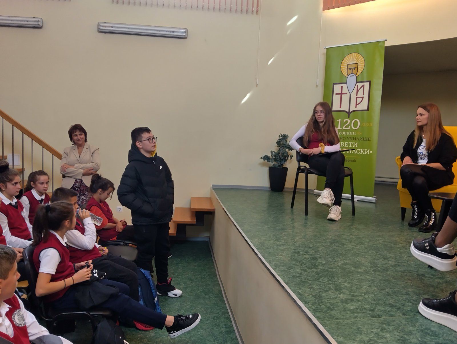 Новият сезон на инициативата „Лидери срещат лидери” стартира със среща на новия състав на Ученическия съвет с членовете на управителния съвет на Обществения съвет към училището. Двата съвета, определени в правилника на училището като органи на съуправление на училищното ръководство и на Педагогическия съвет, се запознаха, представяйки се един на друг със своите професии, интереси и любими дейности за изява. И защото от началото на учебната година в училище тече комуникационната кампания на Обществения съвет, с която на родителите се представя идеята за въвеждане на ежедневна ученическа униформа, тази тема беше дискутирана. Ученическият съвет даде своята единодушна подкрепа за инициативата. Учениците от своя страна споделиха своите идеи за инициативи и дейности, които планират да организират през годината. Тъй като подобна среща се организира за първи път, участниците споделиха удоволствието да се познават, обещаха си да поддържат връзка и да се срещнат отново.