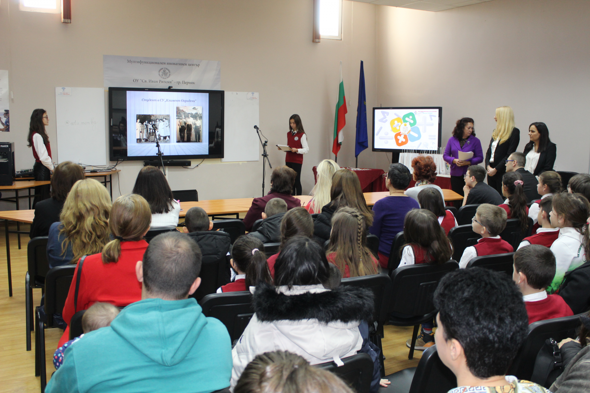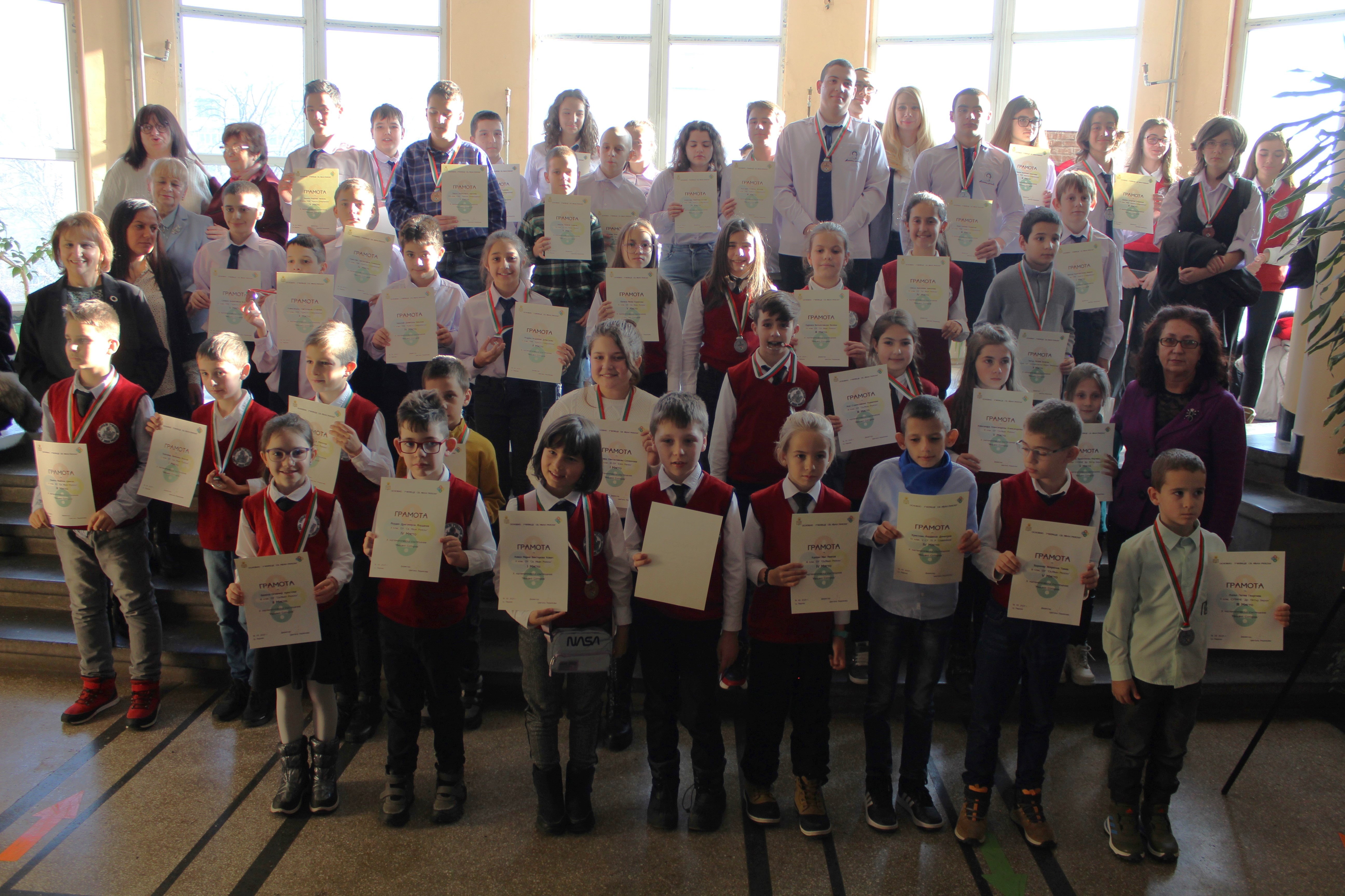Празникът на математиката завърши с обща снимка на наградените, гостите на събитието и неговите организатори – учителите по математика на ОУ „Св. Иван Рилски“.