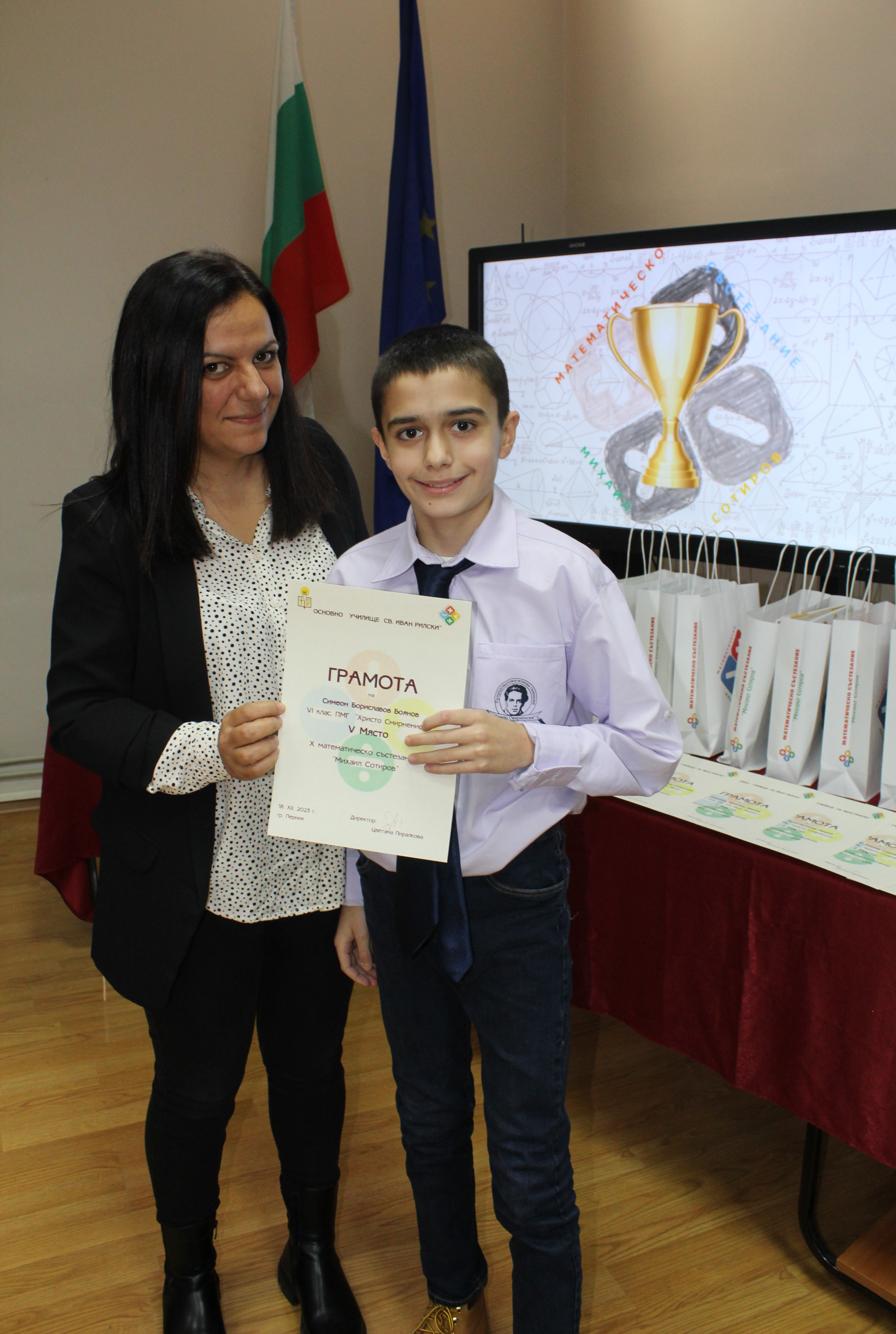 На 18.12.23 г. се проведе церемонията по награждаването на участници взели призови места в Х–то по ред състезание, посветено на математиката. Патронът на състезанието - Михаил Сотиров, е един от забележителните математици в съвременната история на България, живял и творил в Перник.
