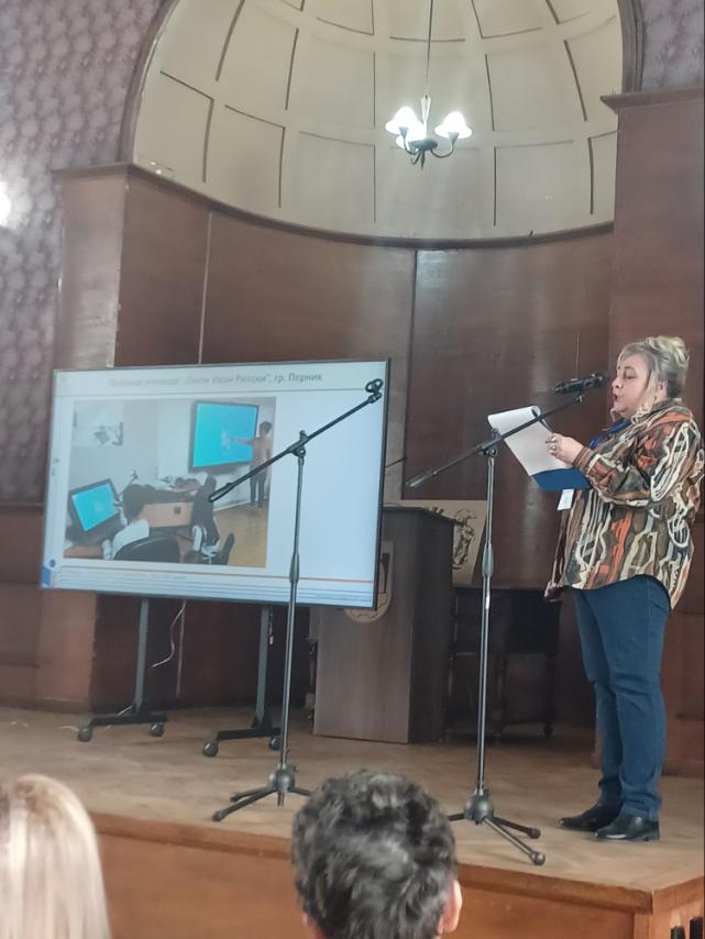 ОУ „ Свети Иван Рилски“ е първото в областта иновативно училище , получило статут през 2017 година с иновацията „ Дигиталните технологии – успешният път на знанието“, която надградихме през 2021 година с „ Обучение в друго измерение“. На форума споделихме иновативните педагогически практики и подходи, с които осъществяваме обучението в нашето училище, за да бъде то модерно, отговарящо на времето , в което живеем. Г- жа Светлана Велчева, начален учител , въвела технологиите в учебния процес още през 2011 година, за да може ученето да носи удовлетворение за всяко дете, да вярва в своите възможности и неусетно да надгражда знанията си и да повишава резултатите си, презентира постиженията ни като екип , работещ новаторски и синхронизирано за обезпечаване на качествен учебен процес. Вярваме, че само чрез споделяне и диалог ще продължат активните и ефективни промени в образованието.