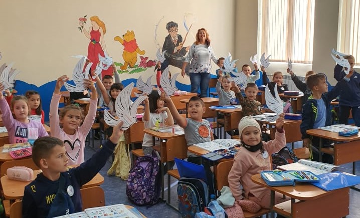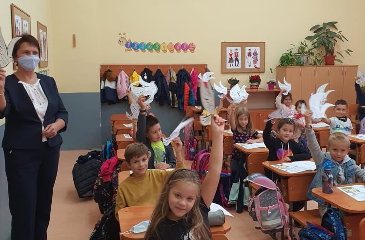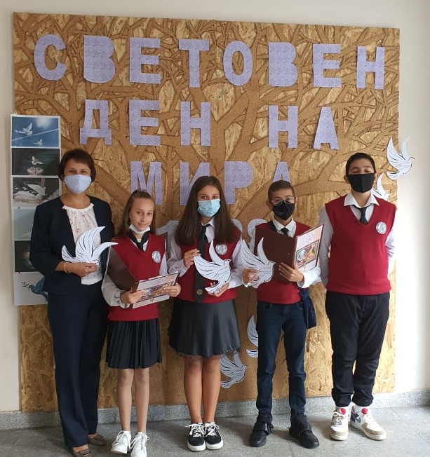 Ръководството на учебното заведение и шестокласниците от клуба поздравиха най-малките ученици в училището. Думичката мир прозвуча многократно от тържествените слова на водещите и стиховете на рецитаторите. Символът на мира-бялото гълъбче, достигна до 250 протегнатите детски ръчички. Напускайки класната си стая, учениците ни с гордост понесоха своите гълъбчета към домовете си.