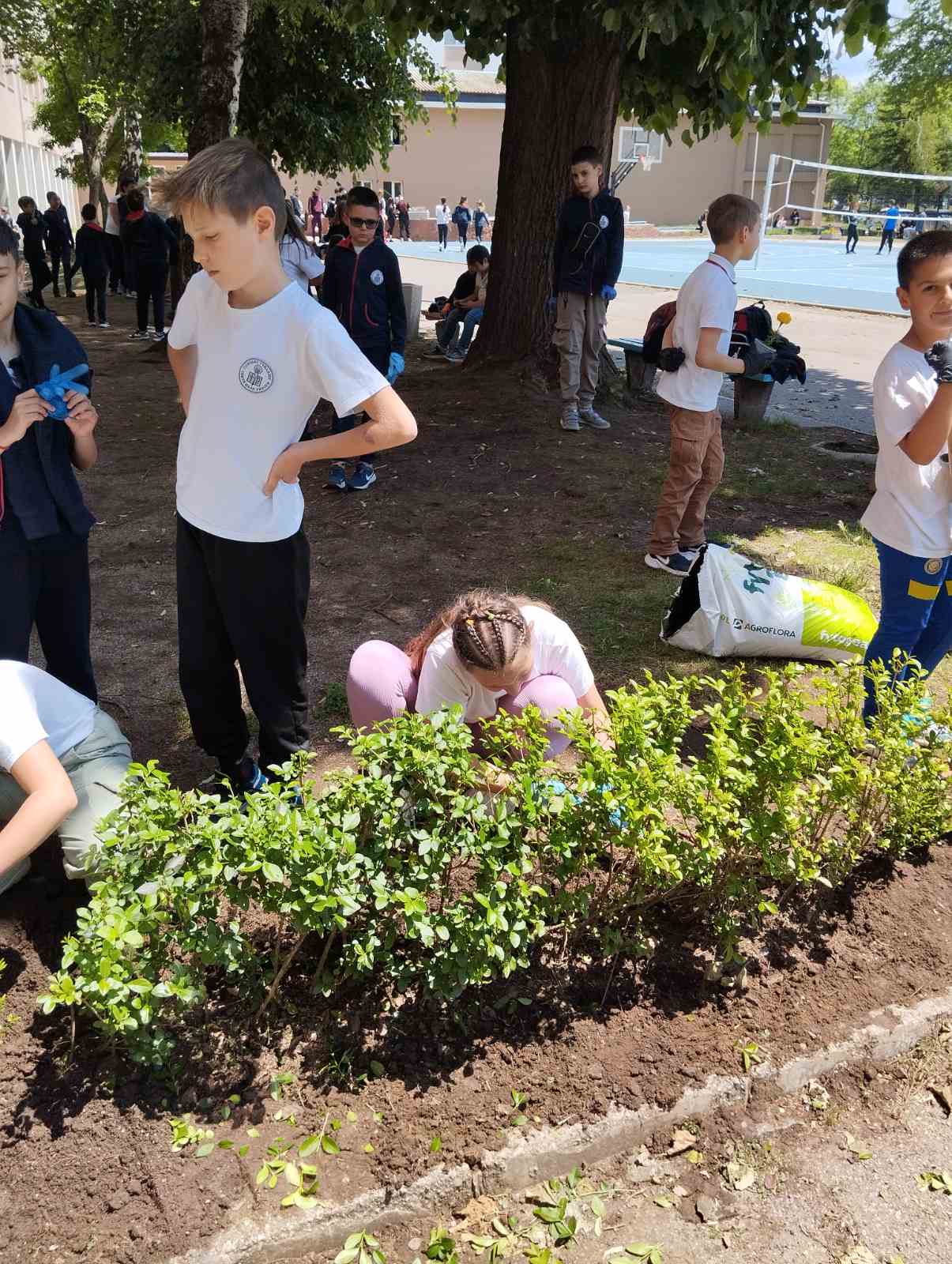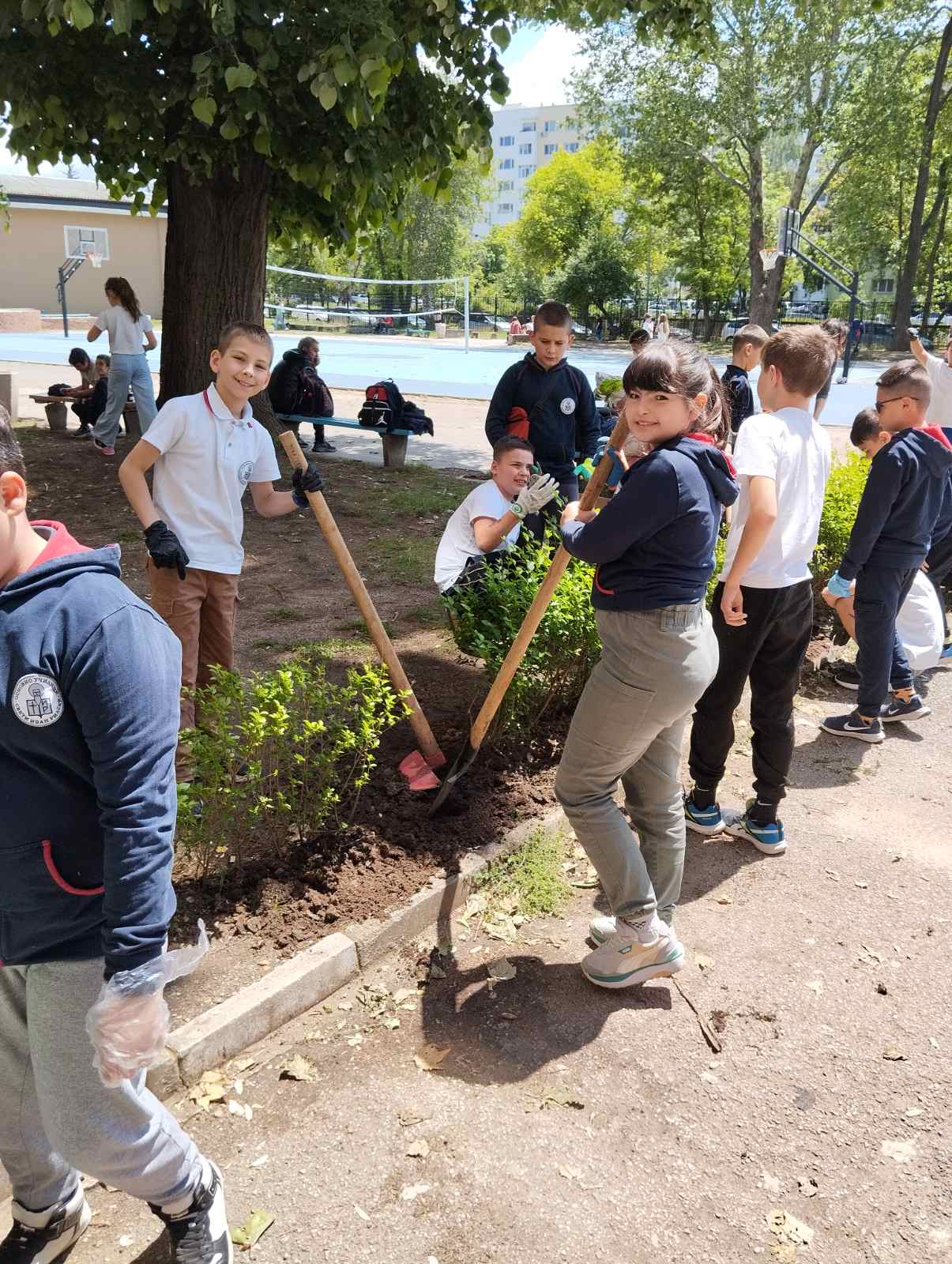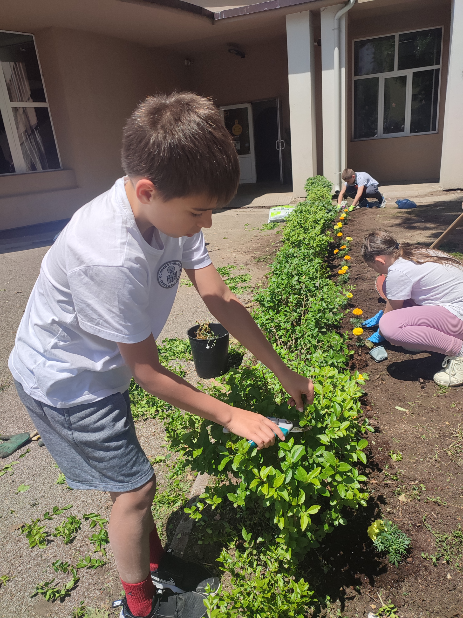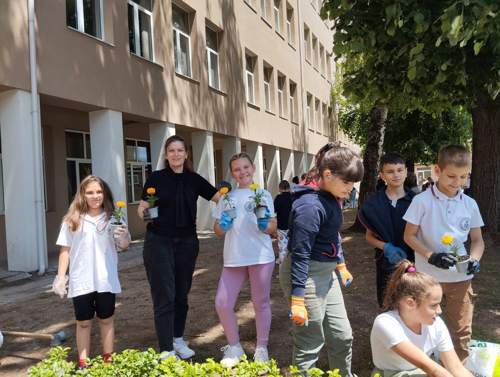 С много ентусиазъм, усмивки и старание, третокласниците превърнаха училищната градинка в пъстро и уютно кътче, изпълнено с цветове и живот.