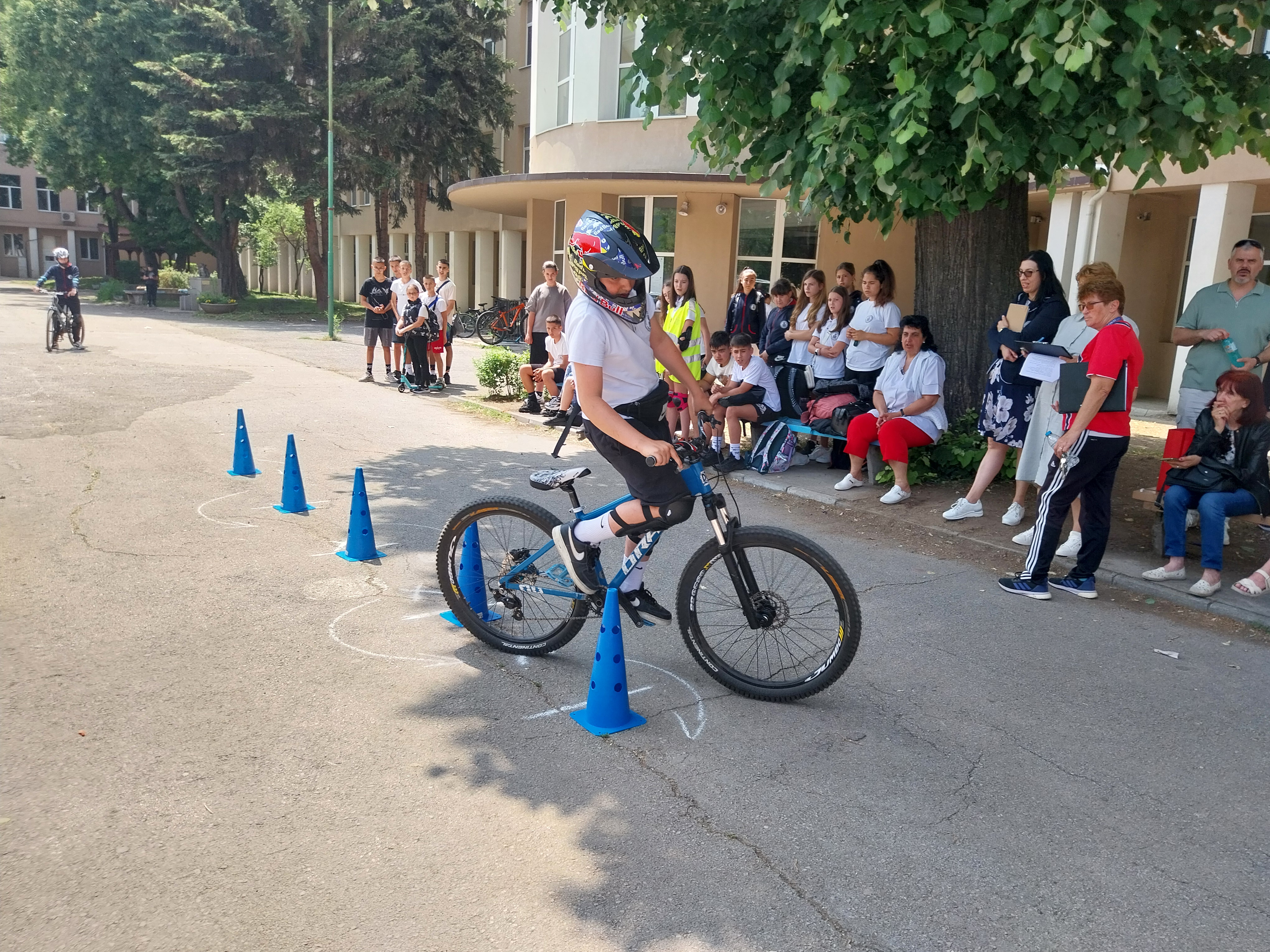Състезанието премина в две части – писмен тест и практически тест. Учениците от отборите премериха сили в писмен тест с 15 въпроси от учебното съдържание по БДП и в практически тест за управление на велосипед и тротинетка при изпълнение на зададени елементи за ловкост и креативно изпълнение с различни препятствия.