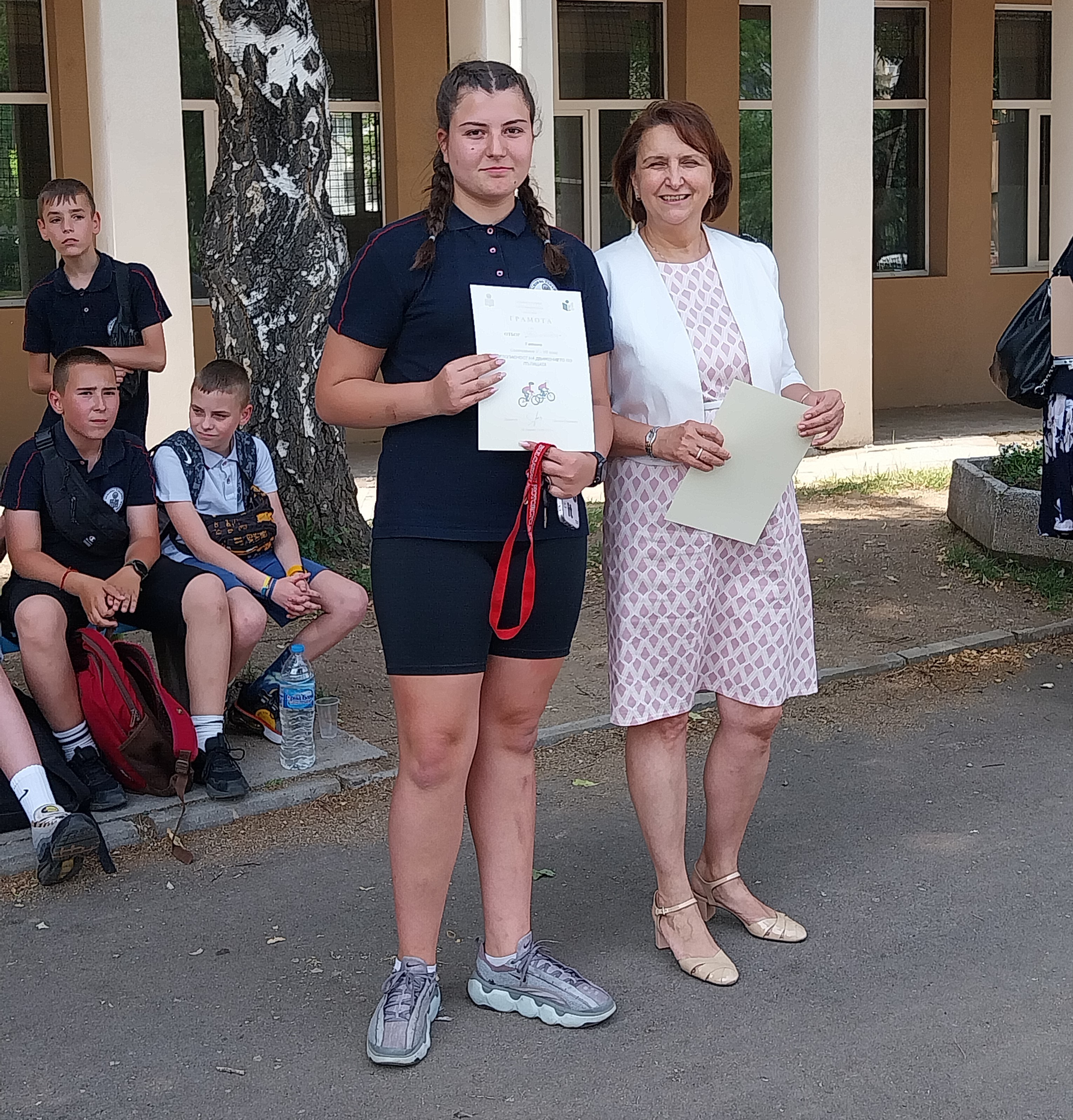 Първото място бе спечелено от отбор „Зебра“ с капитан Александър Димитров Венев от VI „г“ клас, второто място бе за отбор „Пешеходец“ с капитан на отбора - Радея Петрова Петрова от VI „в“ клас и на трето място се класира отбор „Велосипед“ с капитан - Валери Зашев от VII „б“ клас. Директорът на училището г-жа Цветана Пиралкова награди всички екипи с грамоти за показаните знания и майсторство в управлението на велосипеди и тротинетки.