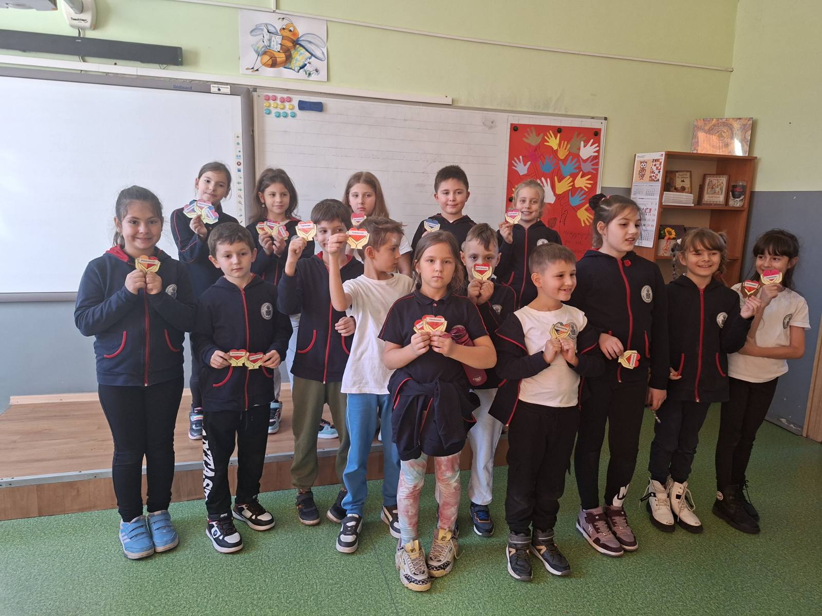Учениците от ЦОУД – 2 клас днес подариха табелки на учениците от ЦОУД – 1 клас, за да им напомним, че доброто започва с една усмивка и с уважение към другите.