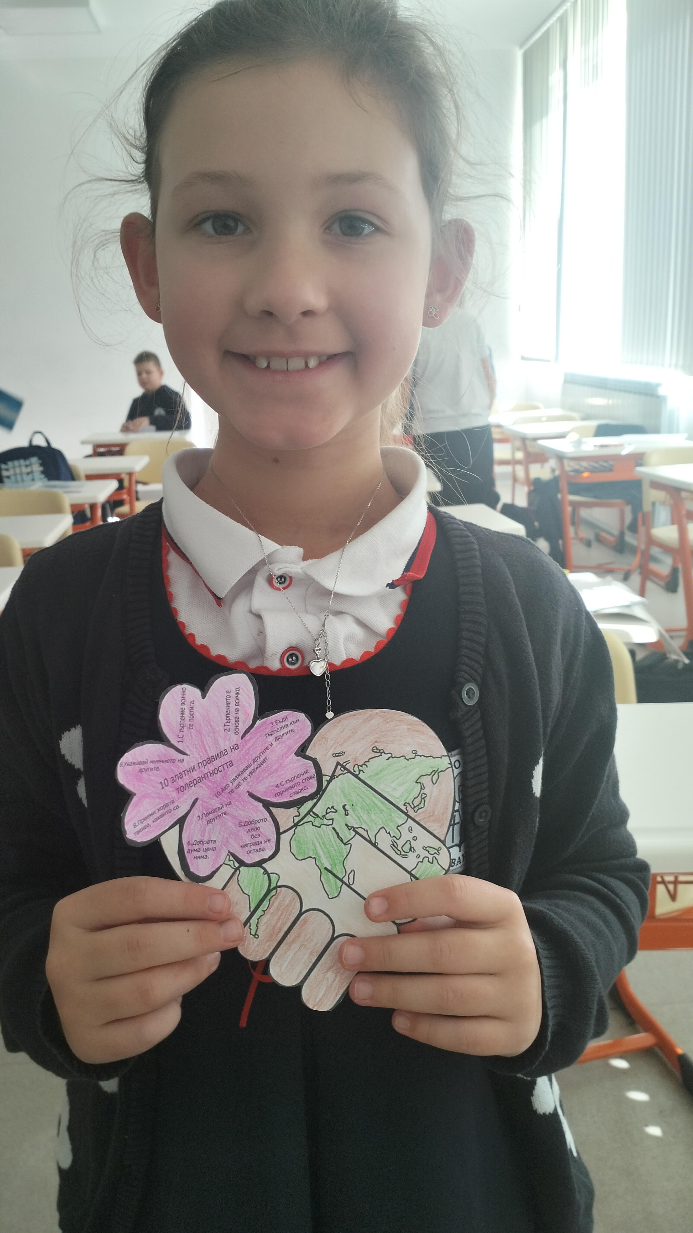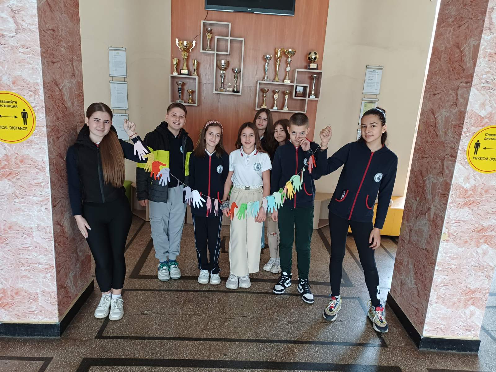 Учениците от пети, шести и седми клас след обсъждане избраха своята дума за толерантност и я записаха на цветни листове под формата на ръце, за да покажат, че различието не е слабост, а сила.