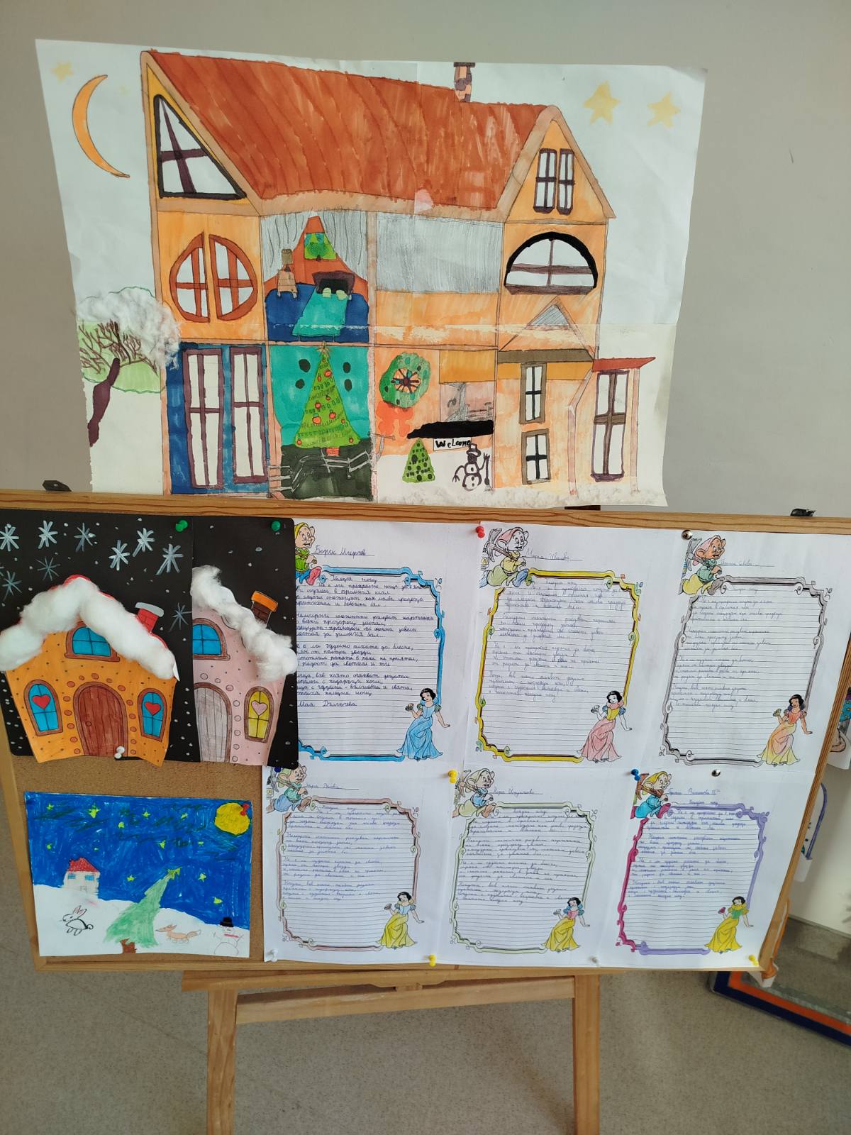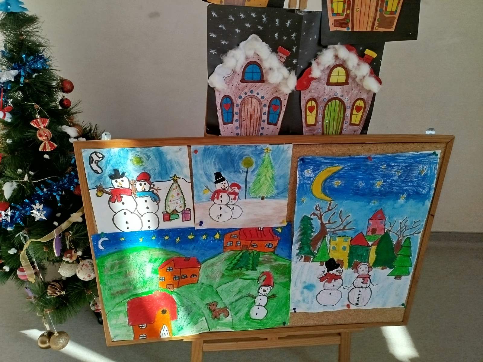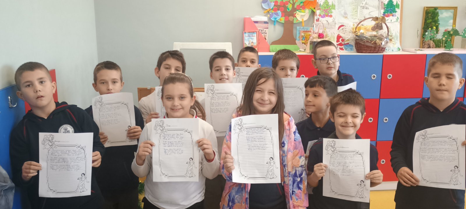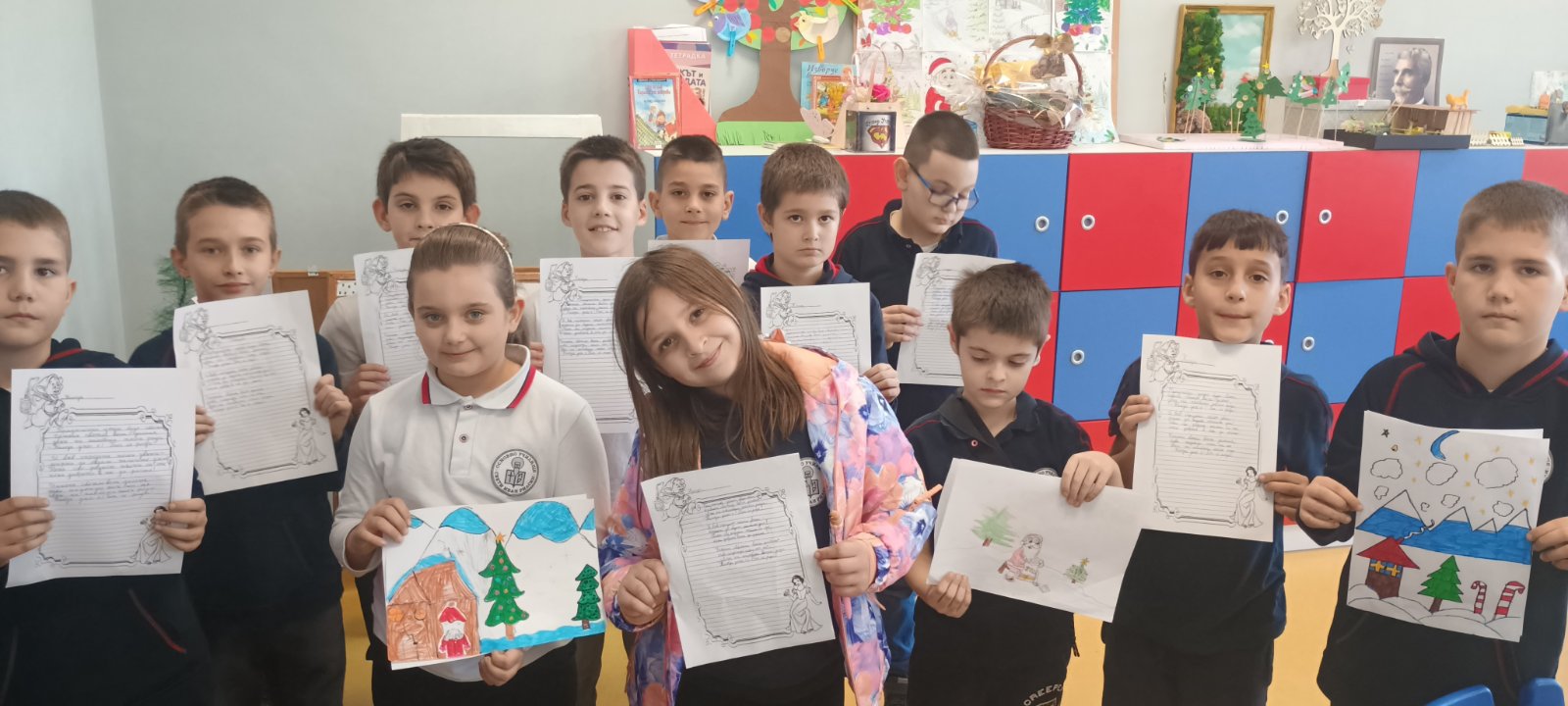 С изработените материали бе организирана изложба, чрез която третокласниците отправят своите благопожелания за здраве, щастие и доброта към всички за коледните и новогодишните празници.